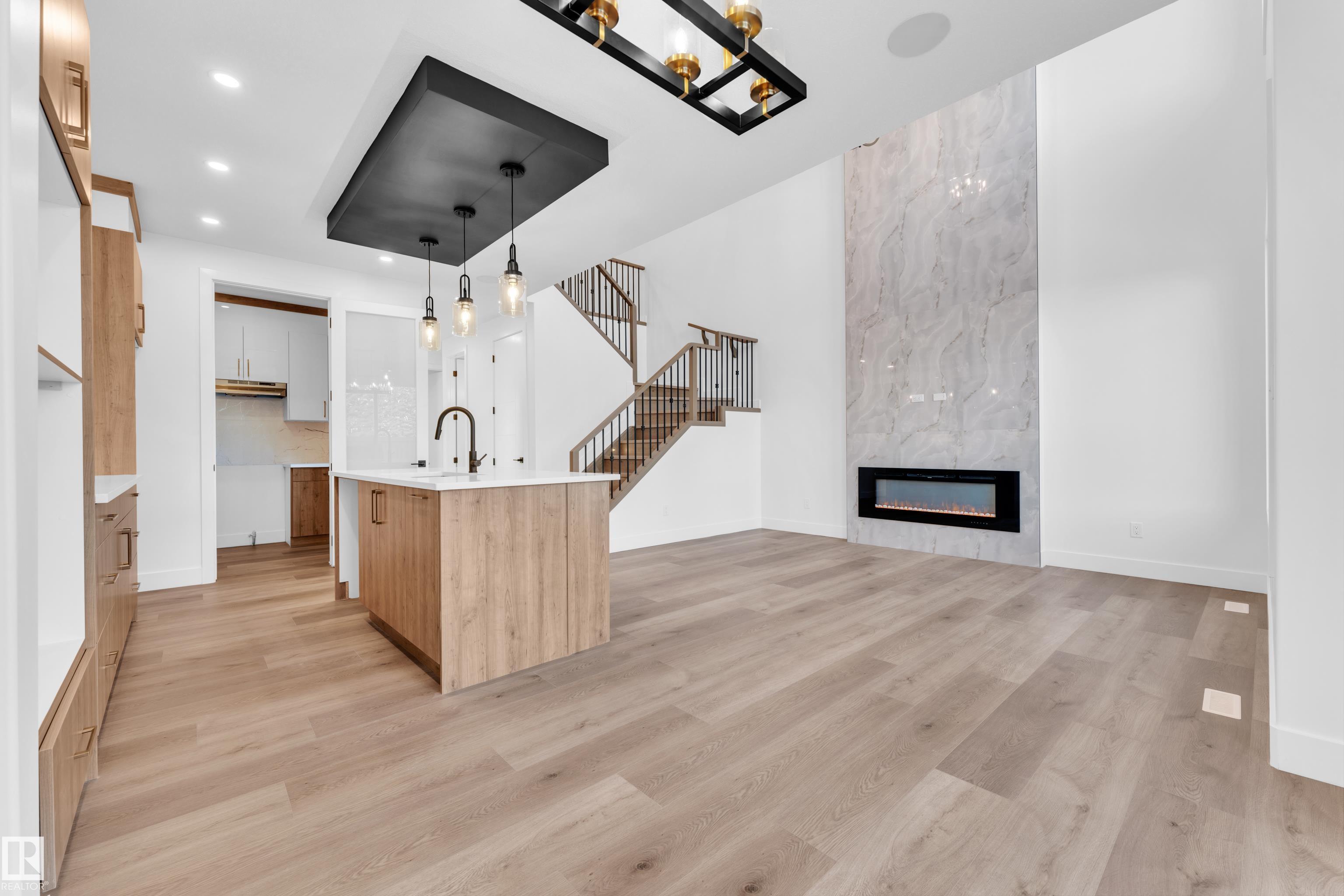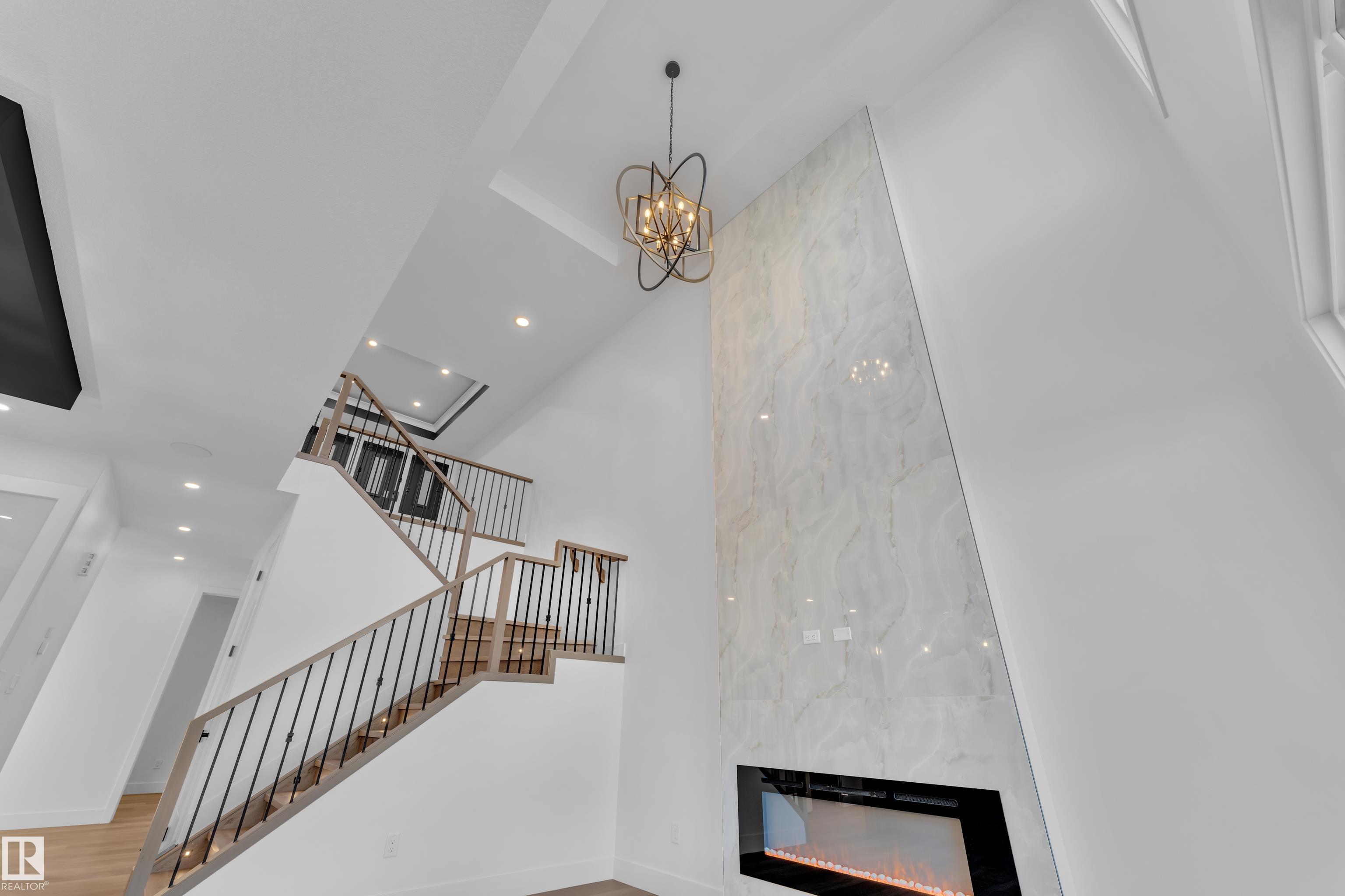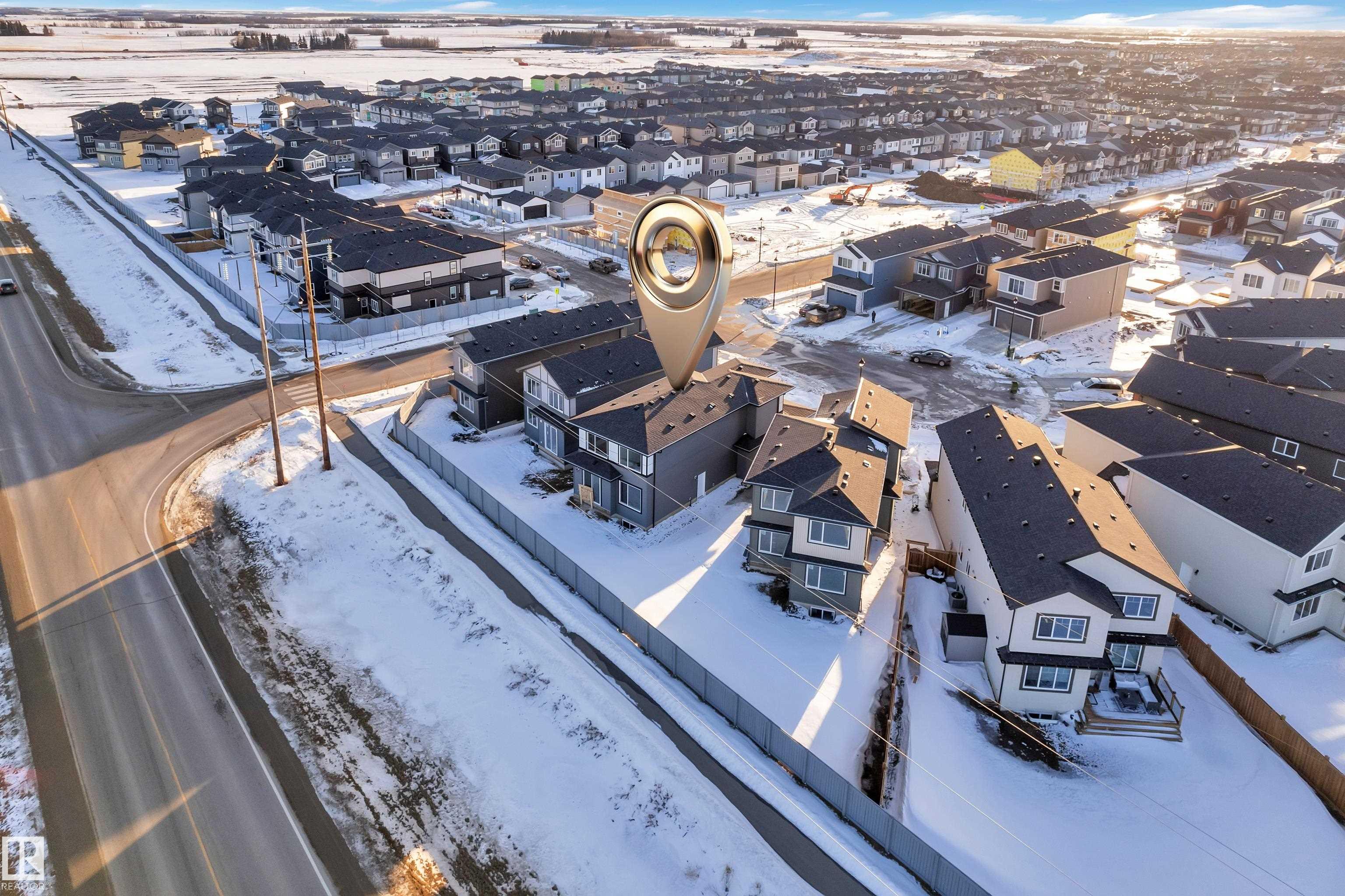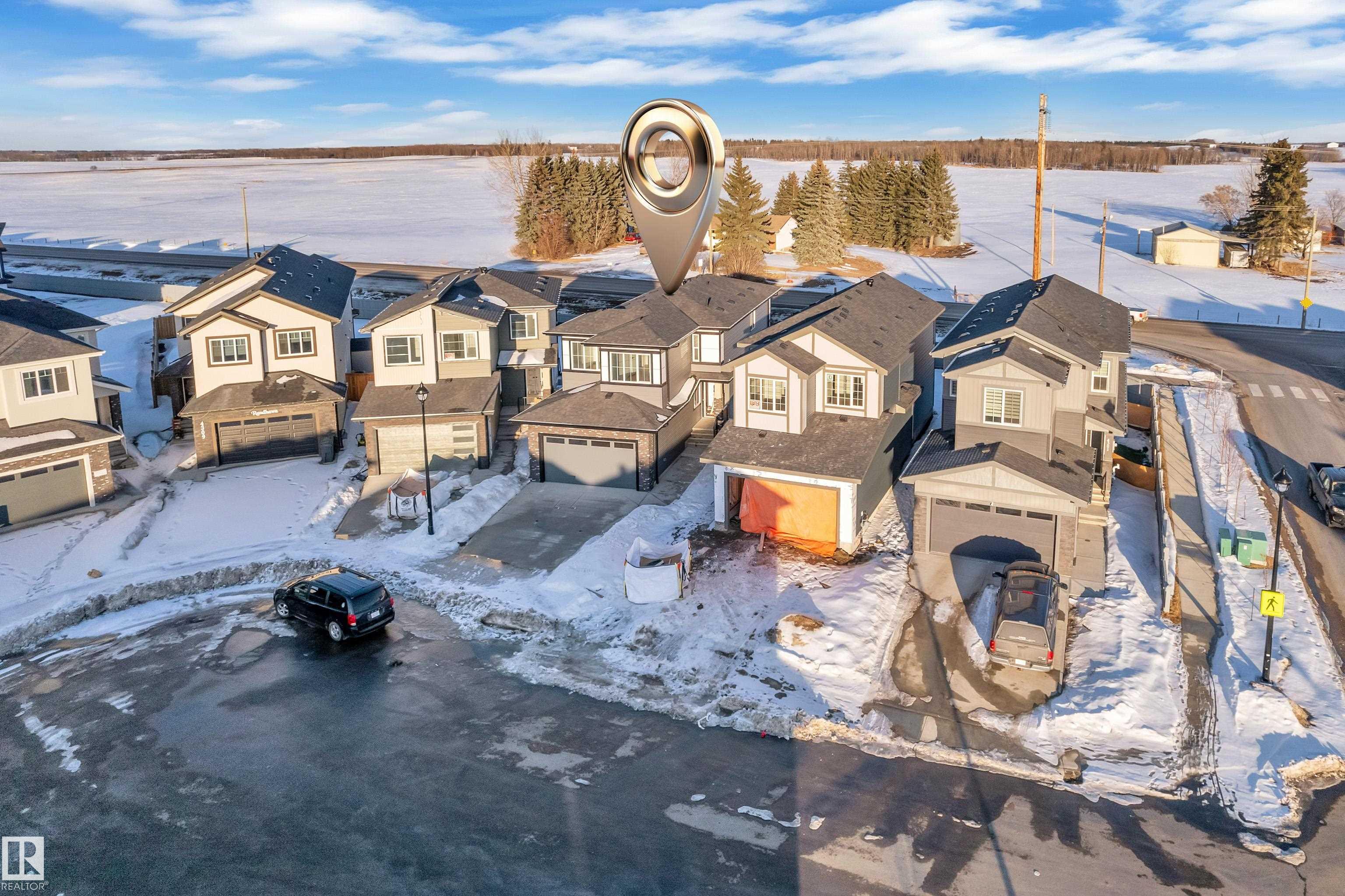 Welcome to this beautifully designed home located in a quiet cul-de-sac in the desirable community of Triomphe, Beaumont, featuring a rare lot with no neighbours at the back, offering exceptional privacy and open views. The home showcases a bright and impressive open-to-above living area that fills the space with natural light. The main floor includes a full bedroom and full bathroom, perfect for guests or extended family, along with a modern kitchen complemented by a spice kitchen for added convenience. Upstairs offers a spacious bonus room, additional well-sized bedrooms, and a luxurious primary suite with a 5-piece ensuite designed for comfort and relaxation. Beautiful feature walls in the living area, bonus room, and primary bedroom add a stylish and elegant touch throughout the home. Located in a family-friendly neighborhood close to parks, schools, and future amenities, this home offers the perfect combination of privacy, modern design, and functional living.