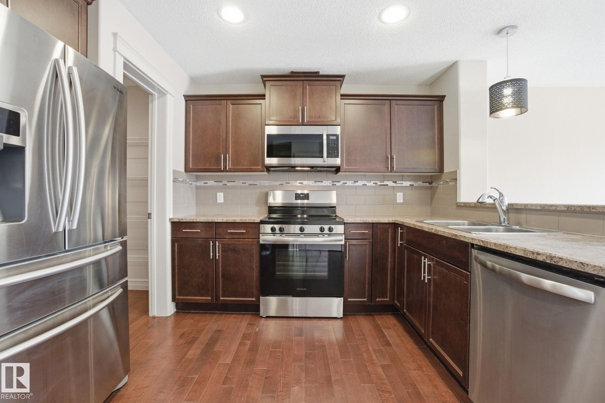 Fantastically located half duplex! The main floor features beautiful hardwood flooring and an open-concept layout connecting the kitchen, dining, and family room?perfect for everyday living and entertaining. The kitchen offers stainless steel appliances and plenty of storage with a large pantry and functional workspace. Upstairs you?ll find laundry, three spacious bedrooms and two full bathrooms, including a comfortable primary suite with an ensuite and walk-in closest. The fully finished basement adds even more living space with an additional bedroom, flex area, and full bathroom?ideal for guests, a home office, or recreation space. Enjoy summer evenings on the large deck, plus the convenience of a single attached garage. A great opportunity for first-time home buyers or investors!