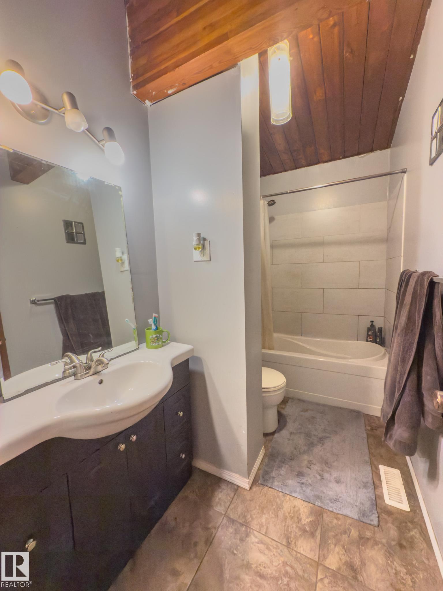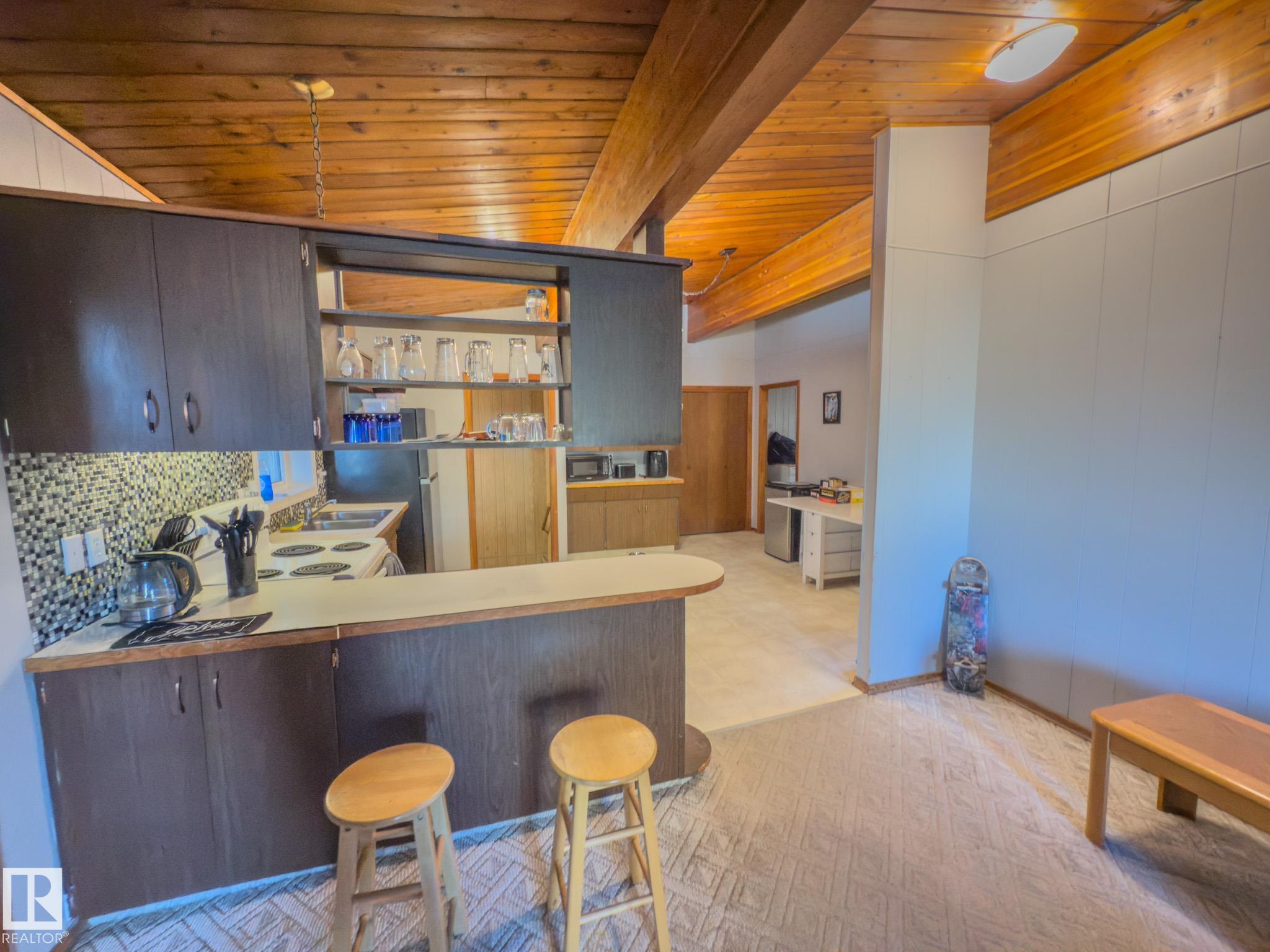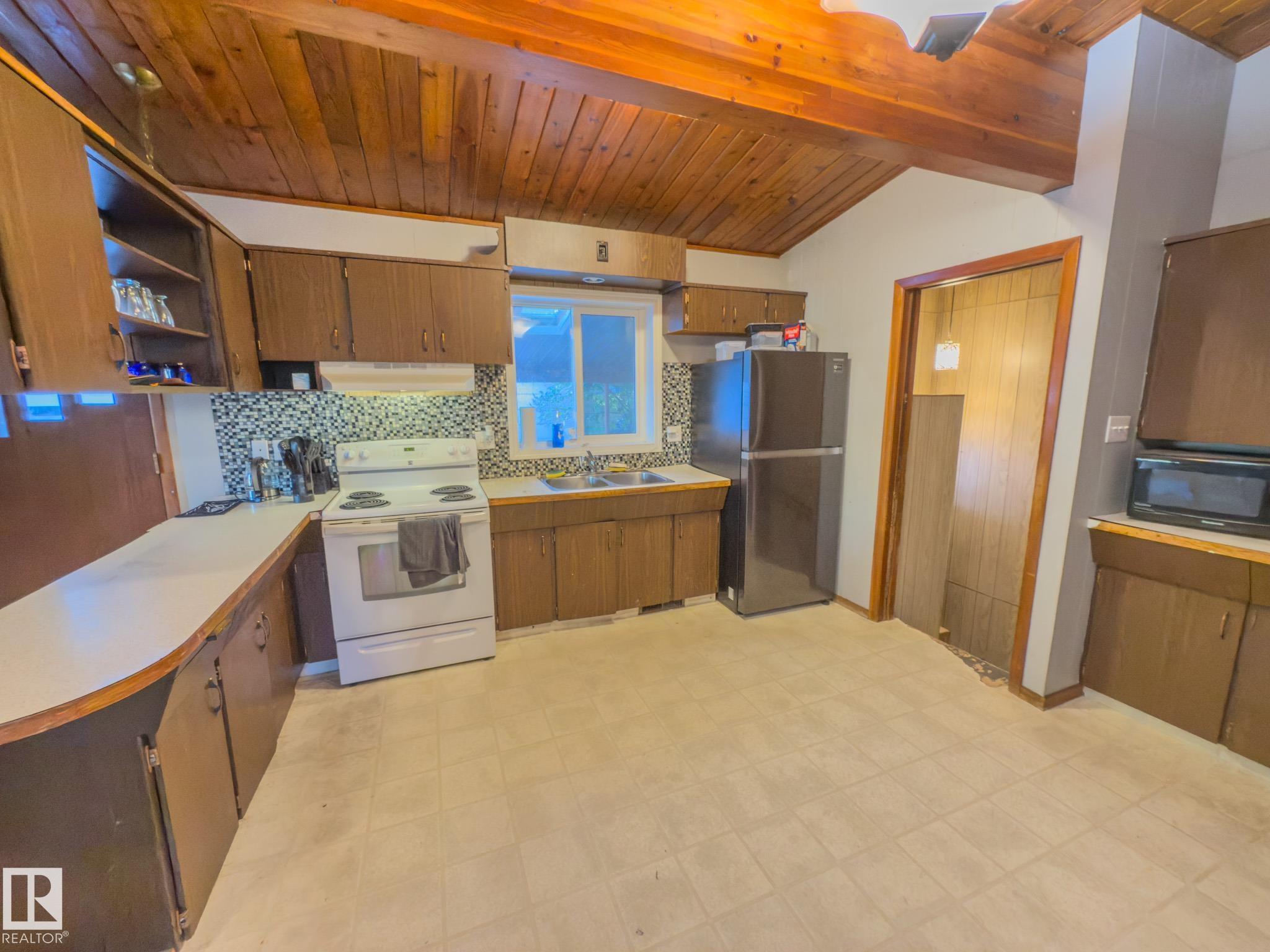 Welcome to this unique home built in 1972, full of character and potential. Featuring vaulted ceilings with exposed beams, this property offers warmth and charm the moment you step inside. The main floor includes a bright living area, functional kitchen, convenient main-floor laundry, 2 comfortable bedrooms and a 4-piece bathroom, Downstairs, you?ll find 2 additional bedrooms, a half bath, and plenty of space for Rec room or a family room. Outside, the home offers a double detached garage, a carport, and ample parking for vehicles or recreational toys. With solid bones and timeless design elements, this property is perfect for anyone looking to add their personal touch and create their dream home