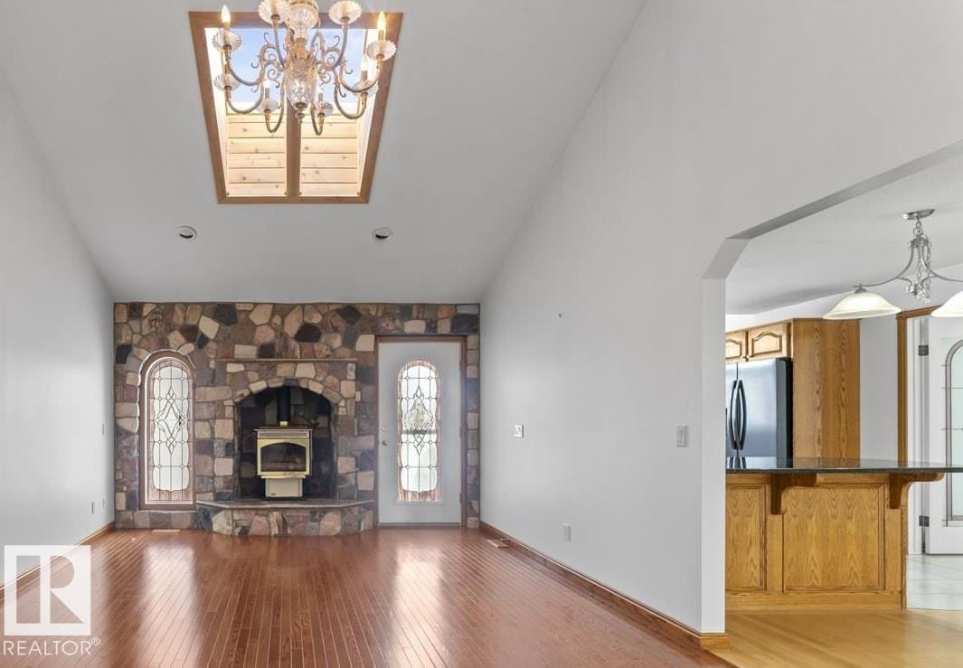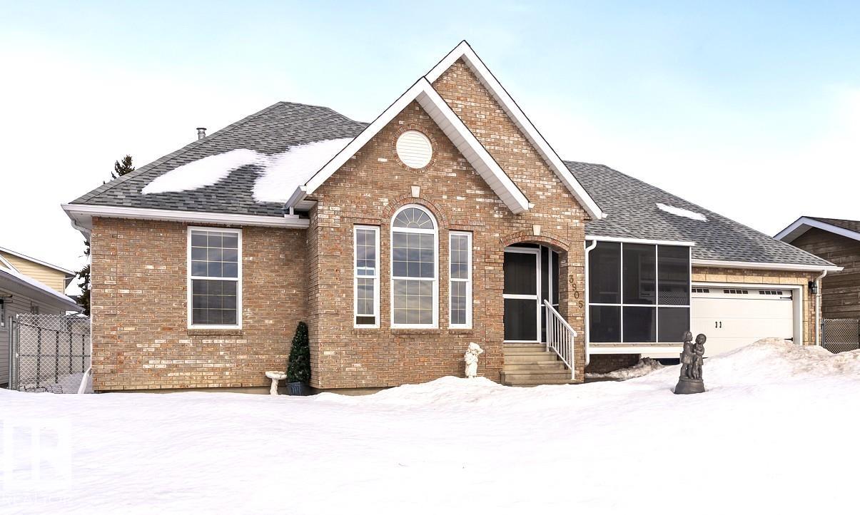 Quality finishings custom built raised bungalow with minimal wear. Appx 3800 sq ft of living space on Lakeshore Drive across from splash park. Solid oak cabinets, pot drawers, quartz counters, hardwood & white tile, hand picked rock mantel, quality vinyl windows, brick facing, screened in porch, HE furnace & air conditioning. Open concept from front door to massive kitchen with stool counter and adjacent formal family room with fire stove makes for large gatherings. Huge master bedroom & ensuite and other two facing south with sooo much natural light, one could make a great office. Lower level has infloor heat, 2 bdrms with W/I closets, 1 full bath, 2 large storage rooms, and a open rec space that could a handle a bowling alley. Back entry is to the laundry, 2 pc wash, and attached garage (infloor heat & H/C faucet). Oversized wide lot, fenced in yard with paved RV / Parking pad. These gems do not come along very often. Make your next move to sunny Lakeshore Drive.