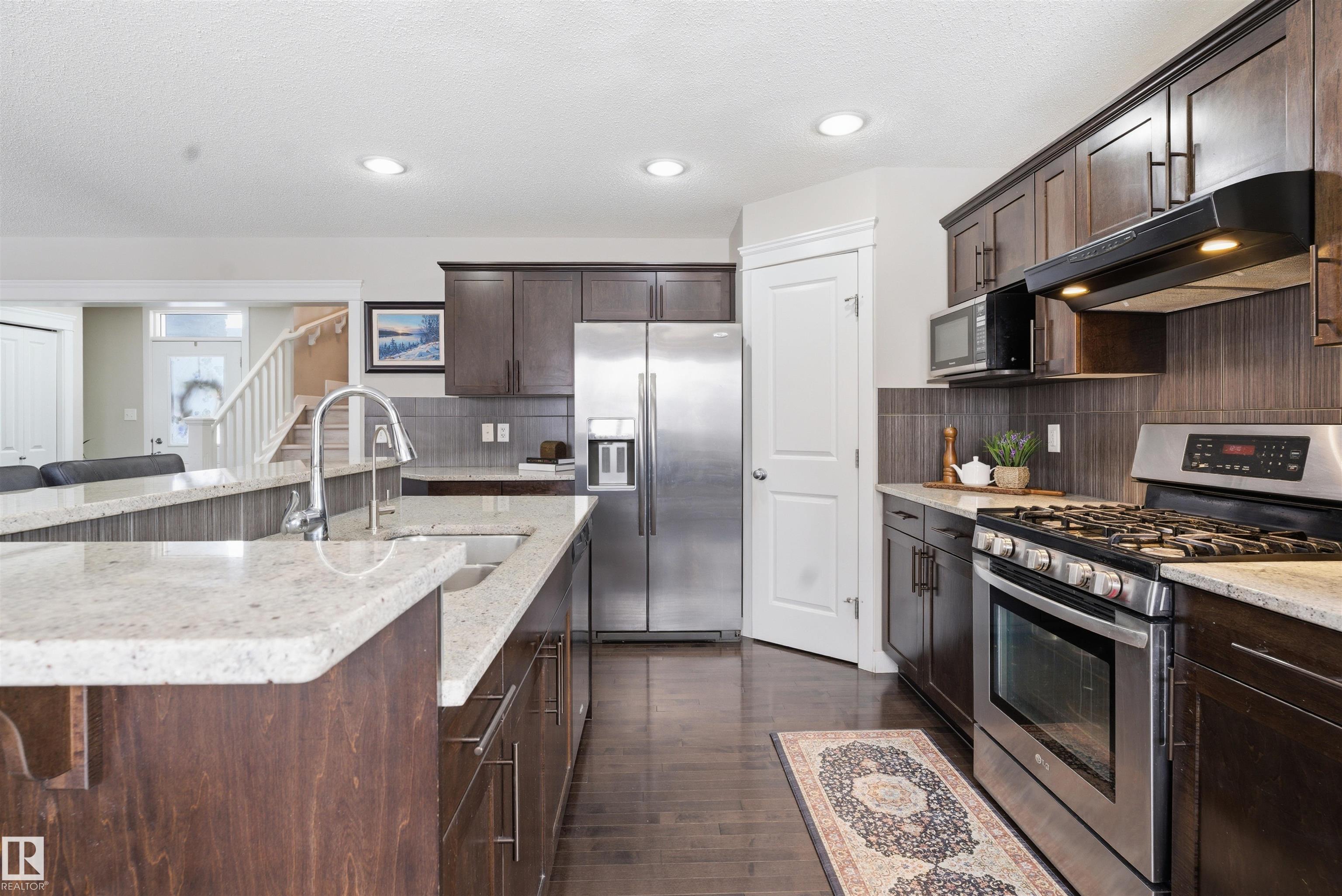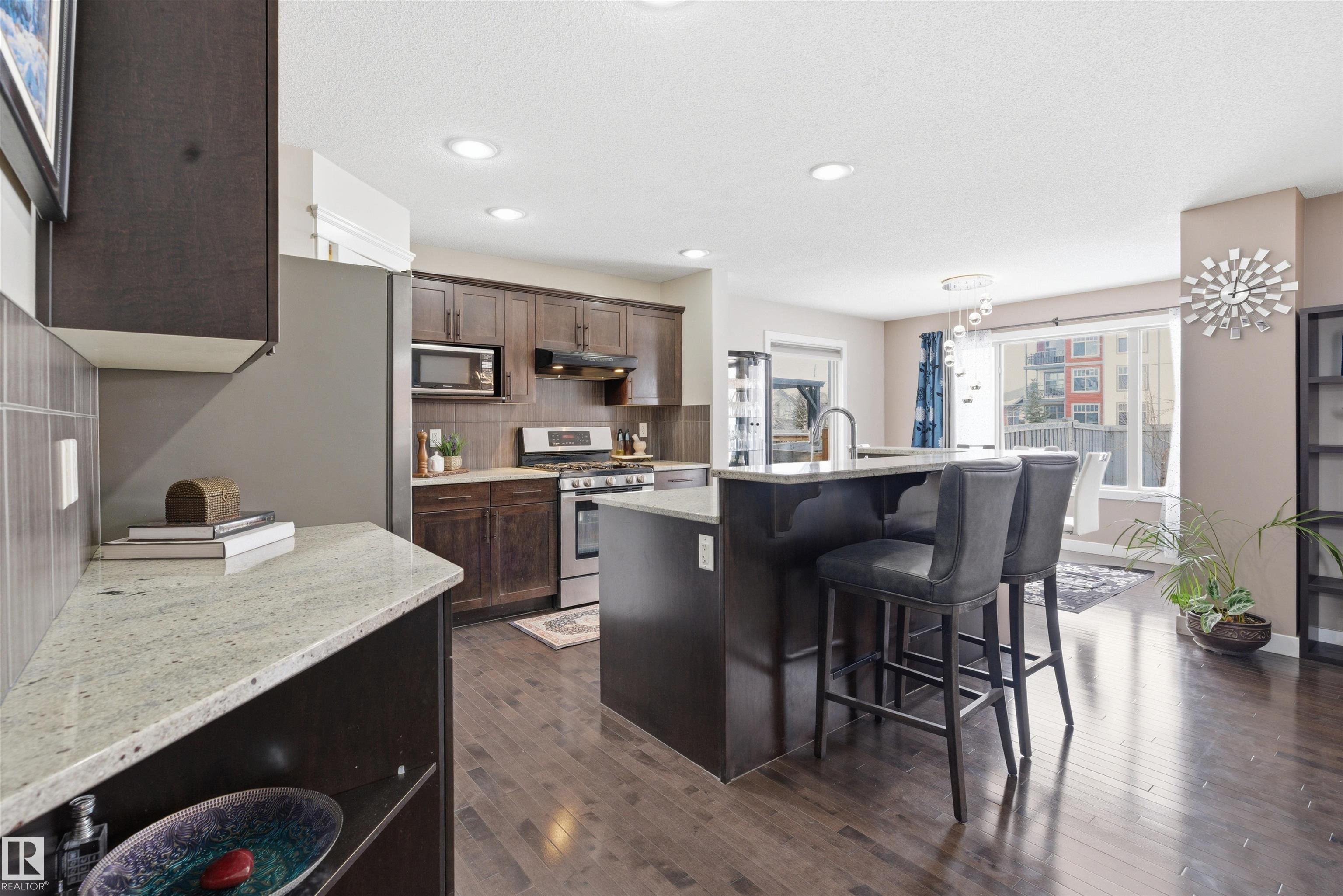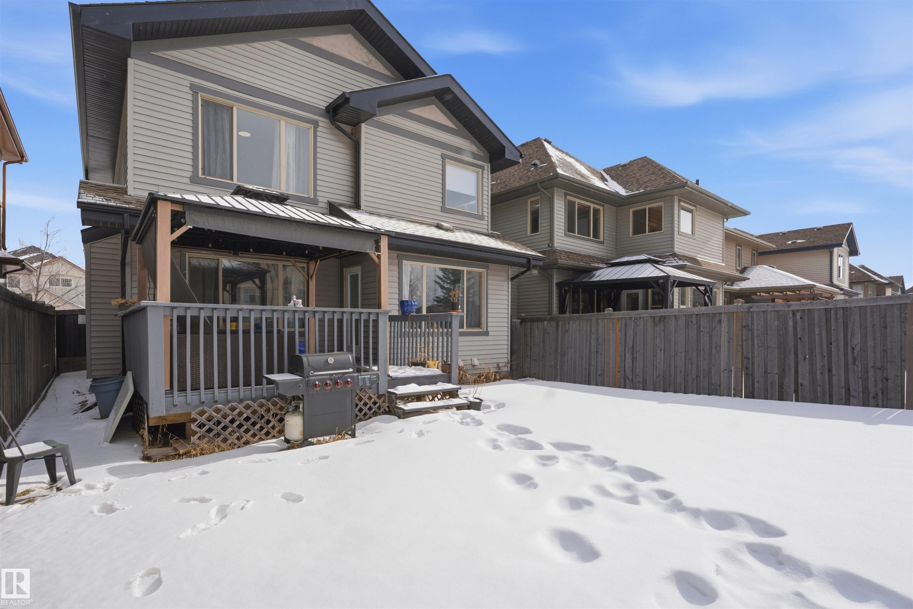 4 Bed/4 Bath Exquisitely Renovated Home in Desirable Ambleside, Windermere-Offering FULLY FINISHED RENOVATED BASEMENT WITH SECOND KITCHEN AND SEPARATE ENTRANCE built on a 26 Pkt. Regular Lot with approx. 2700 sq ft total living space. NO Rear Neighbour, this home provides exceptional tranquility while being just steps from Major Schools, Walking distance to the Currents of Windermere, 2 Minutes to Anthony Henday Drive. E.V Charger and Gas Fireplace. CARPET FREE HOME featuring Elegant Hardwood and NEW LVP Flooring throughout, The Main Level has a Stylish kitchen with GRANITE Countertops, Rich Maple Shaker Cabinetry, and a bright, comfortable layout perfect for family living. Fully Finished Basement offers great potential for living and hosting private events for your guests. NEW BLINDS, NEW PENDANT LIGHTS, NEW LED FLASH LIGHTS, NEW LVP FLOORING, NEW PAINT, NEW 2nd KITCHEN. Yard has a Low-Maintenance Backyard with Gazebo, creating the ideal space to unwind. Some pictures are virtually staged. SHOWS 10/10