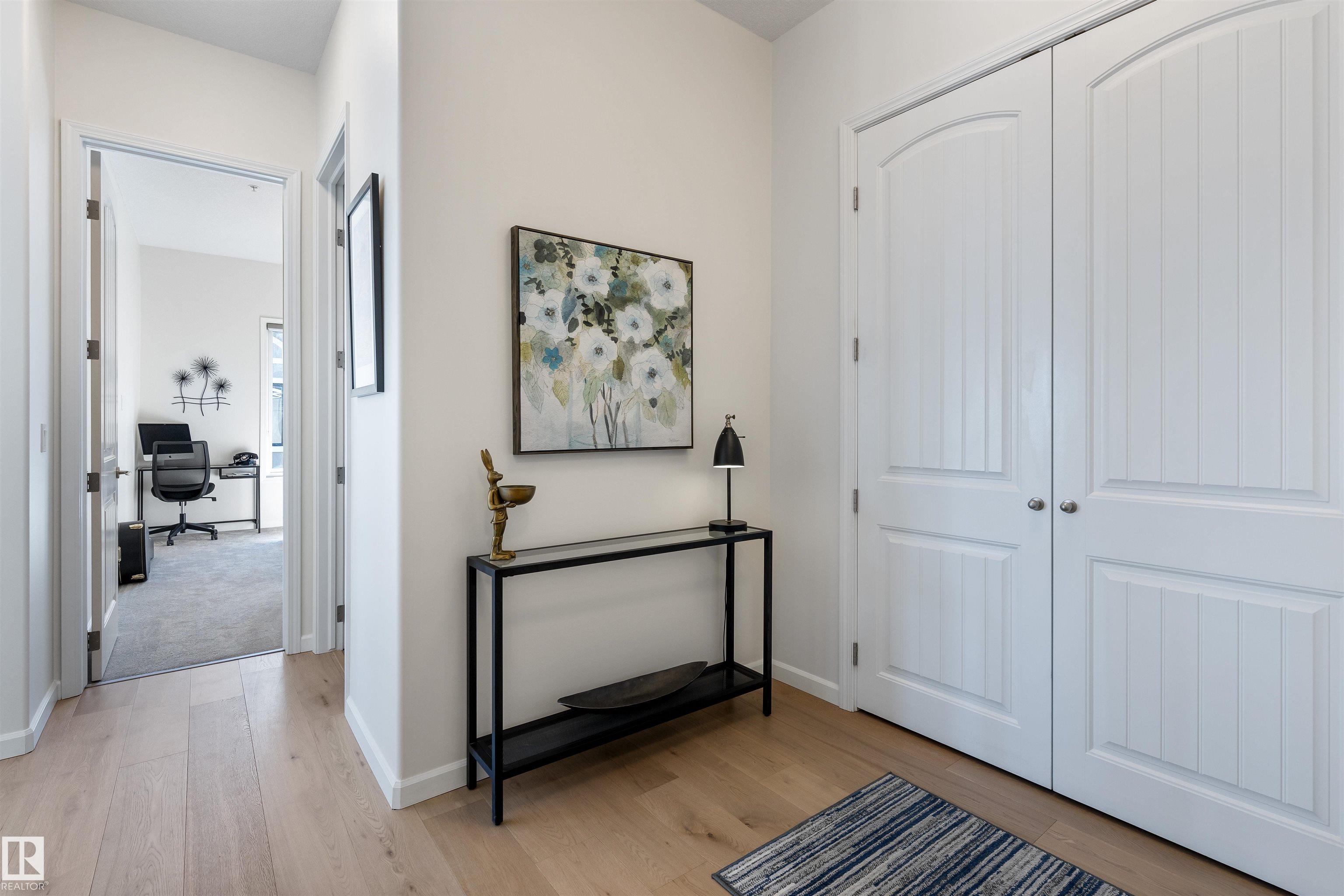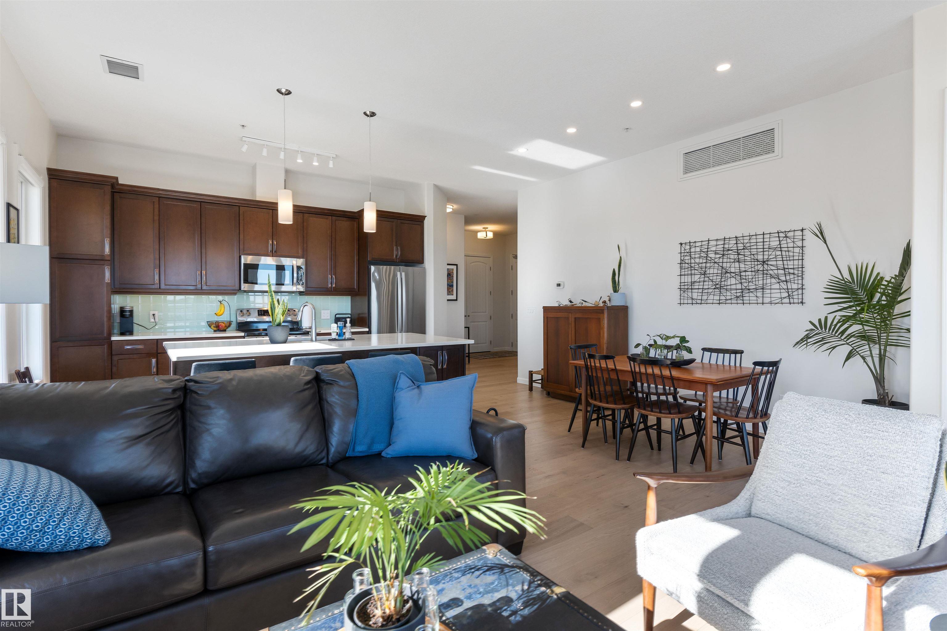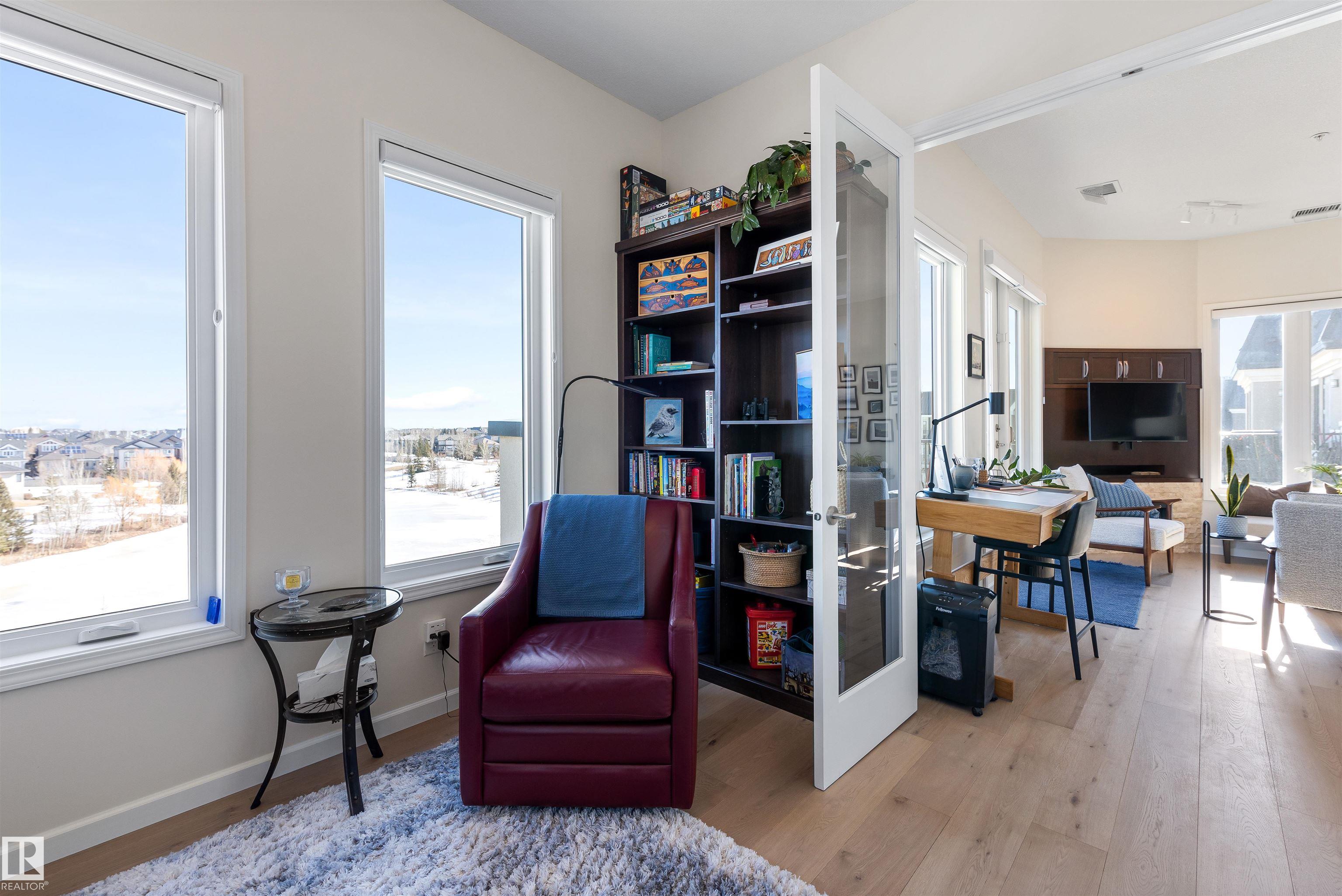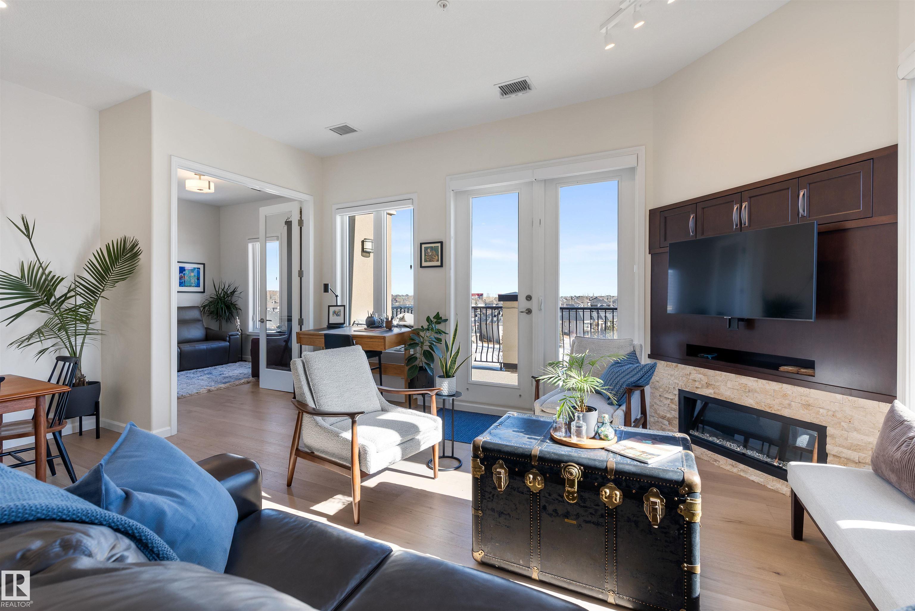 In the beautiful Waterstone complex, discover this SUN-SOAKED, TOP FLOOR, CORNER UNIT w/ incredible LAKE VIEWS, 2 UNDERGROUND PARKING STALLS & a main-floor STORAGE CAGE. Overlook green space, a serene pond & walking trail from the comfort of your home or step outside to the large balcony, perfect for morning coffee or evening wine w/ a view. This updated suite has a warm & welcoming open-concept layout, featuring a cozy corner electric f/p & expansive windows. The kitchen features an abundance of cabinetry, massive eating bar island, QUARTZ counters, pot/pan drawers, s/s appliances, under cabinet lighting & a pantry. The dining area can accommodate large entertaining. Double French doors lead into the den space w/ stunning lake views. The spacious primary bedroom is a true retreat featuring a walk-in closet, California Custom closet organizers & a luxurious 5pce ensuite w/ a custom shower. A large 2nd bedroom, 4pce bath, insuite laundry, A/C & 10' ceilings all add to the magnificence of this unit!
