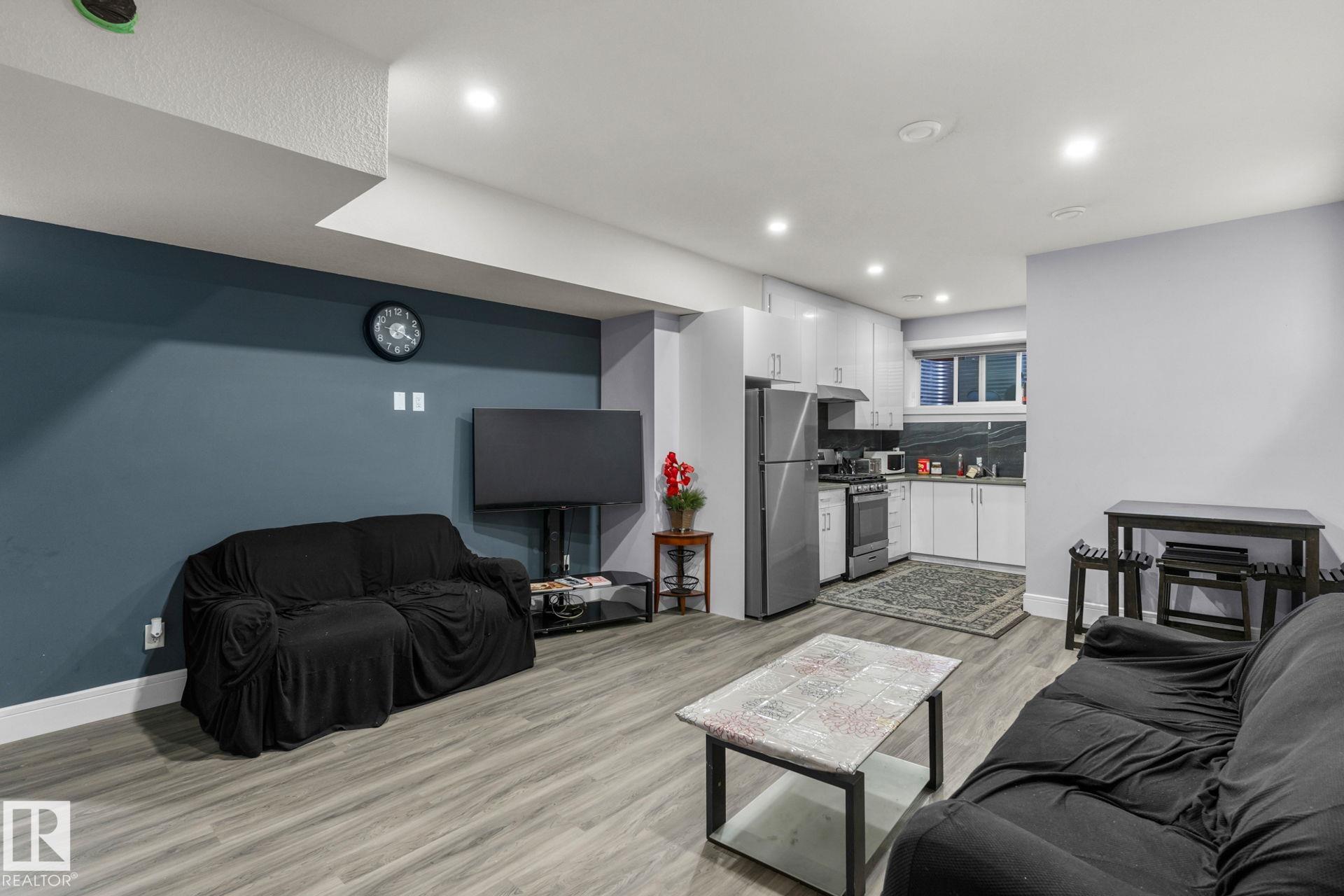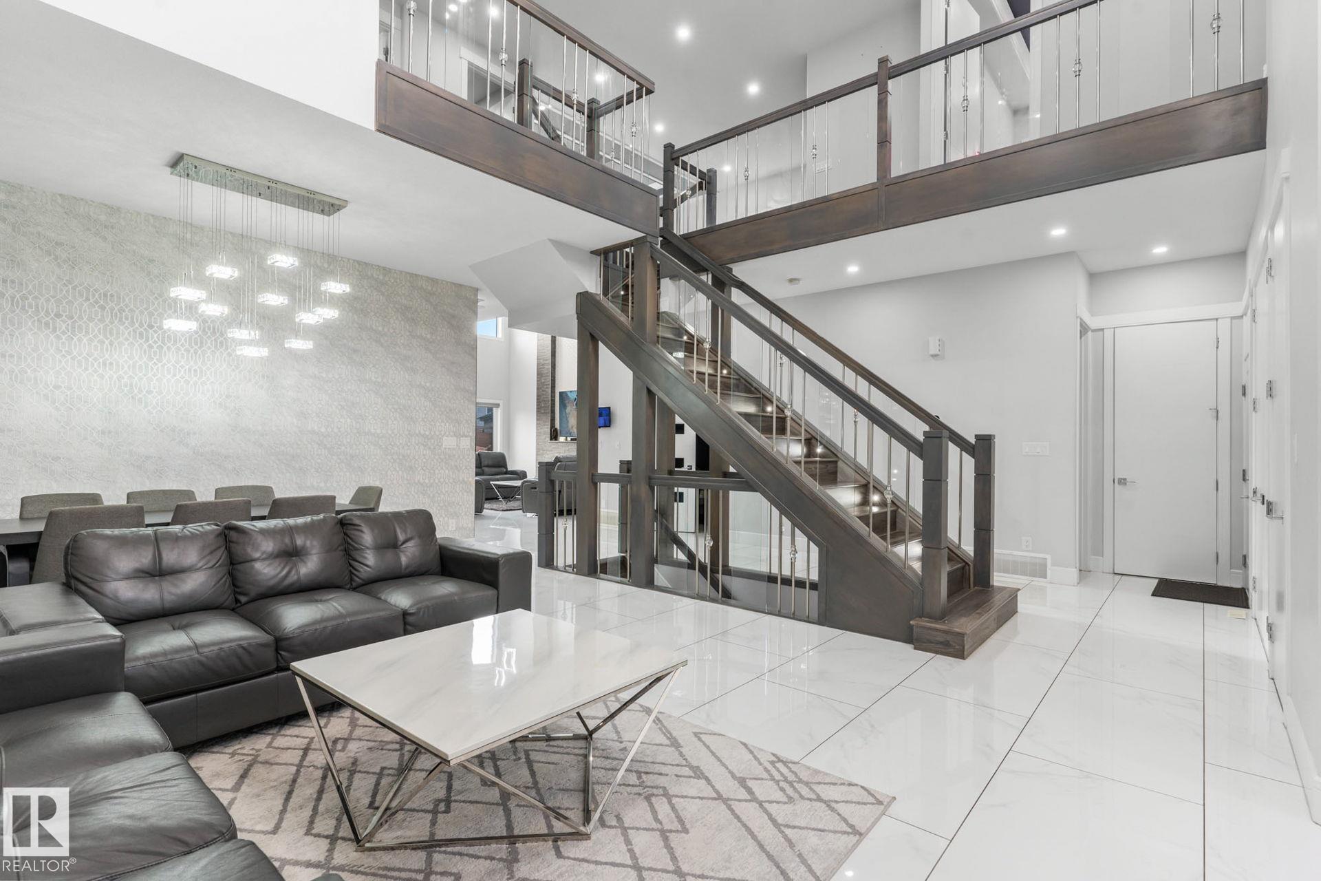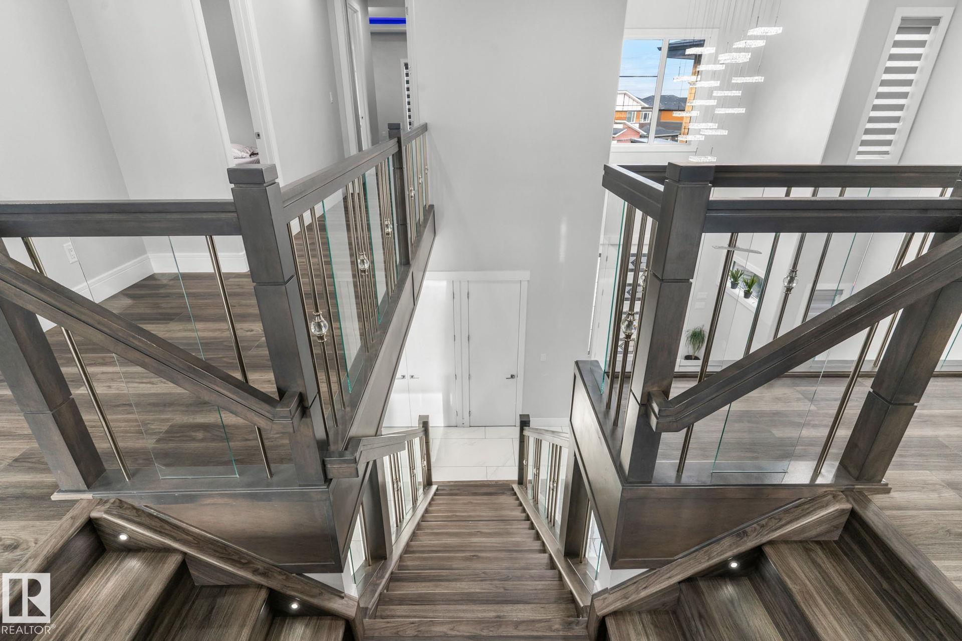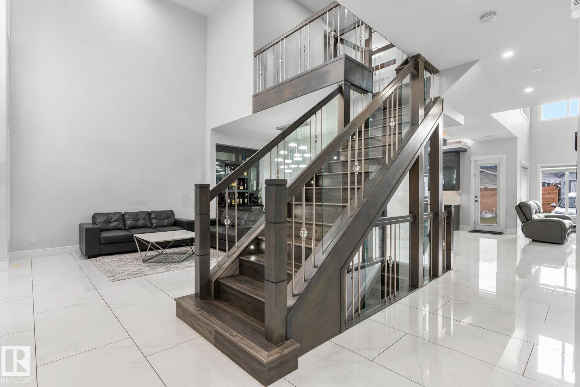 8 Bedrooms & 7 1/2 bathrooms the exquist residence has it all: spice Kitchen, main floor bedroom & ensuite, four beds on the upper level, a legal 2-bed basement suite, & a third separate basement living area. The main floor showcases two huge valuted areas withpremium tile, finishings and lighting. The chef?s kitchen is elegant & expansive. All three kitchens are outfitted with stainless steel appliances, quartz countertops & gas ranges. A glass staircase leads to the upper level comprised of four spacious bedrooms, each equipped with an ensuite bathroom, walk-in closet, built-in storage & coffered ceilings with ambient lighting. The primary bathroom is a luxurious retreat, featuring a Jacuzzi, steam shower, fireplace & an expansive walk-in closet. A bonus room & laundry area complete the second floor. The residence is fully wired for security & entertainment. The oversized double garage is heated & includes a sump & hot water. The fenced yard inc. a shed, fruit trees, & parking pad.