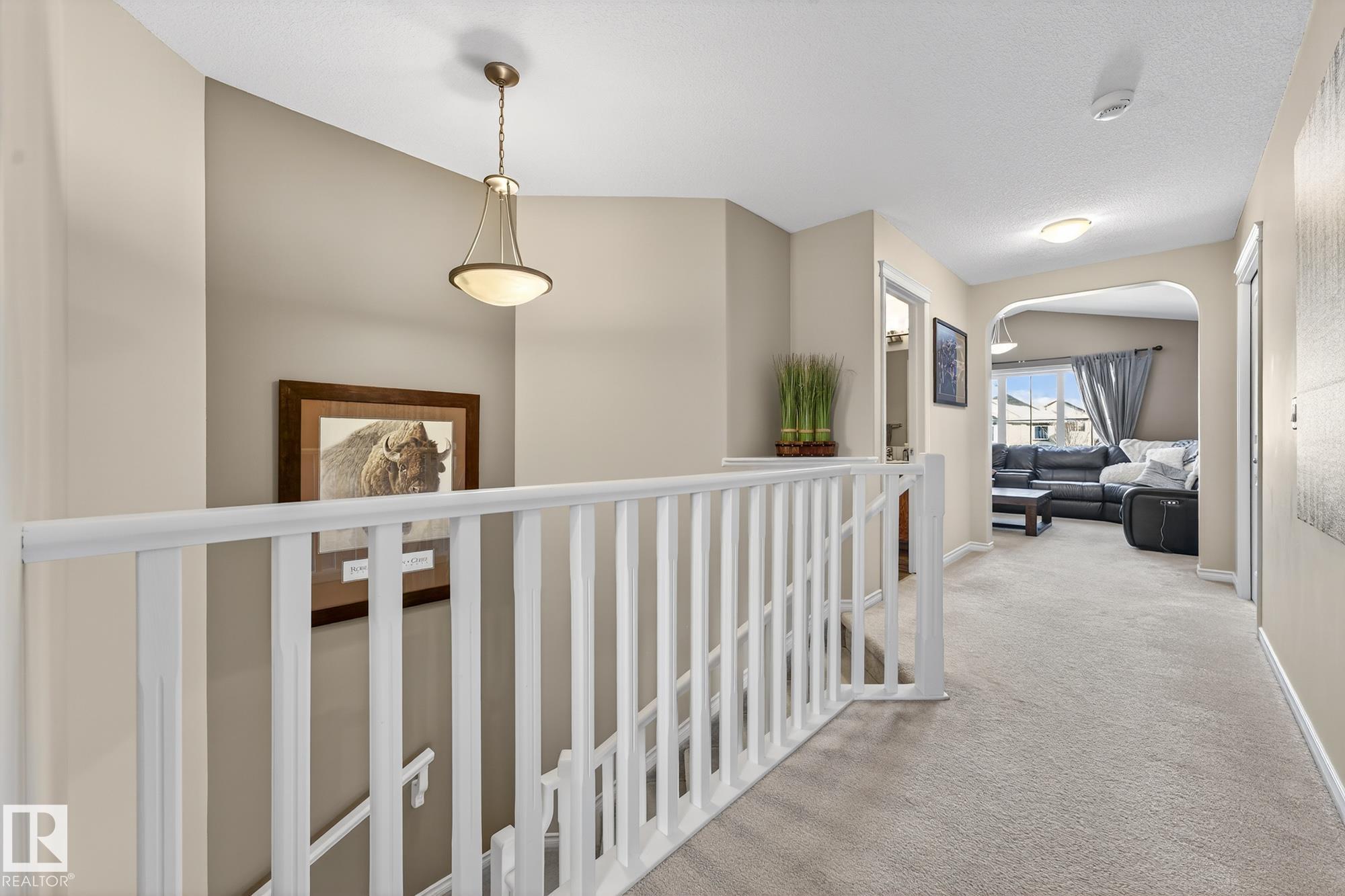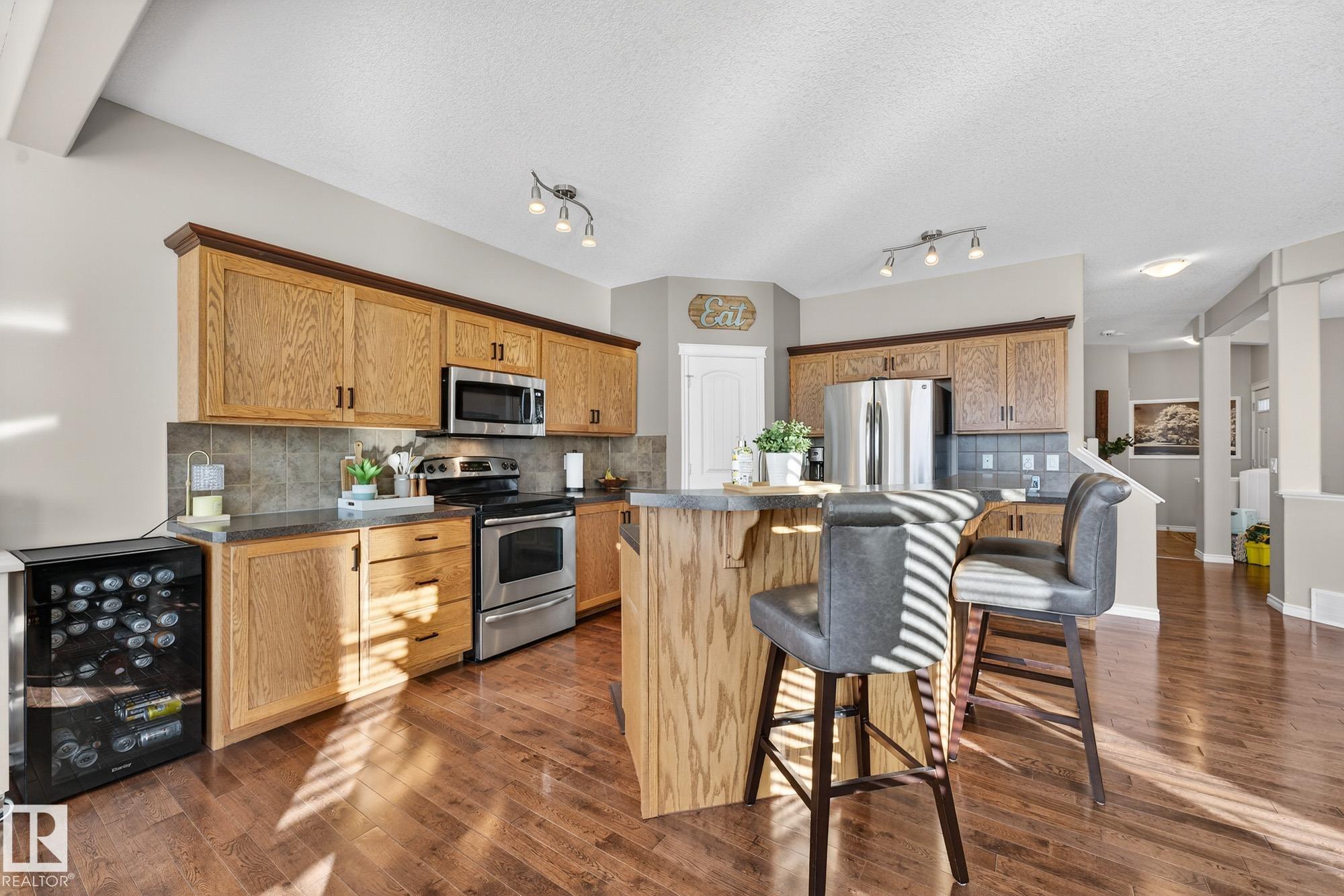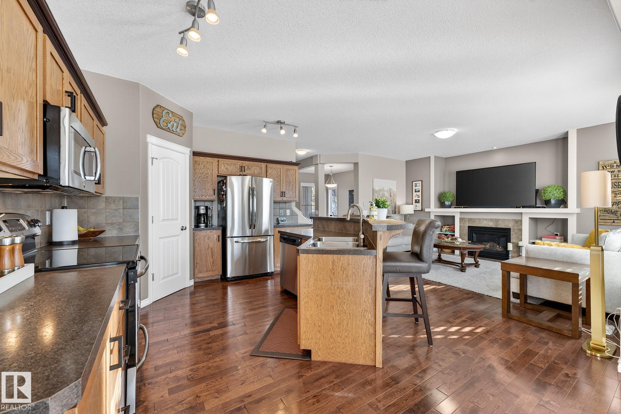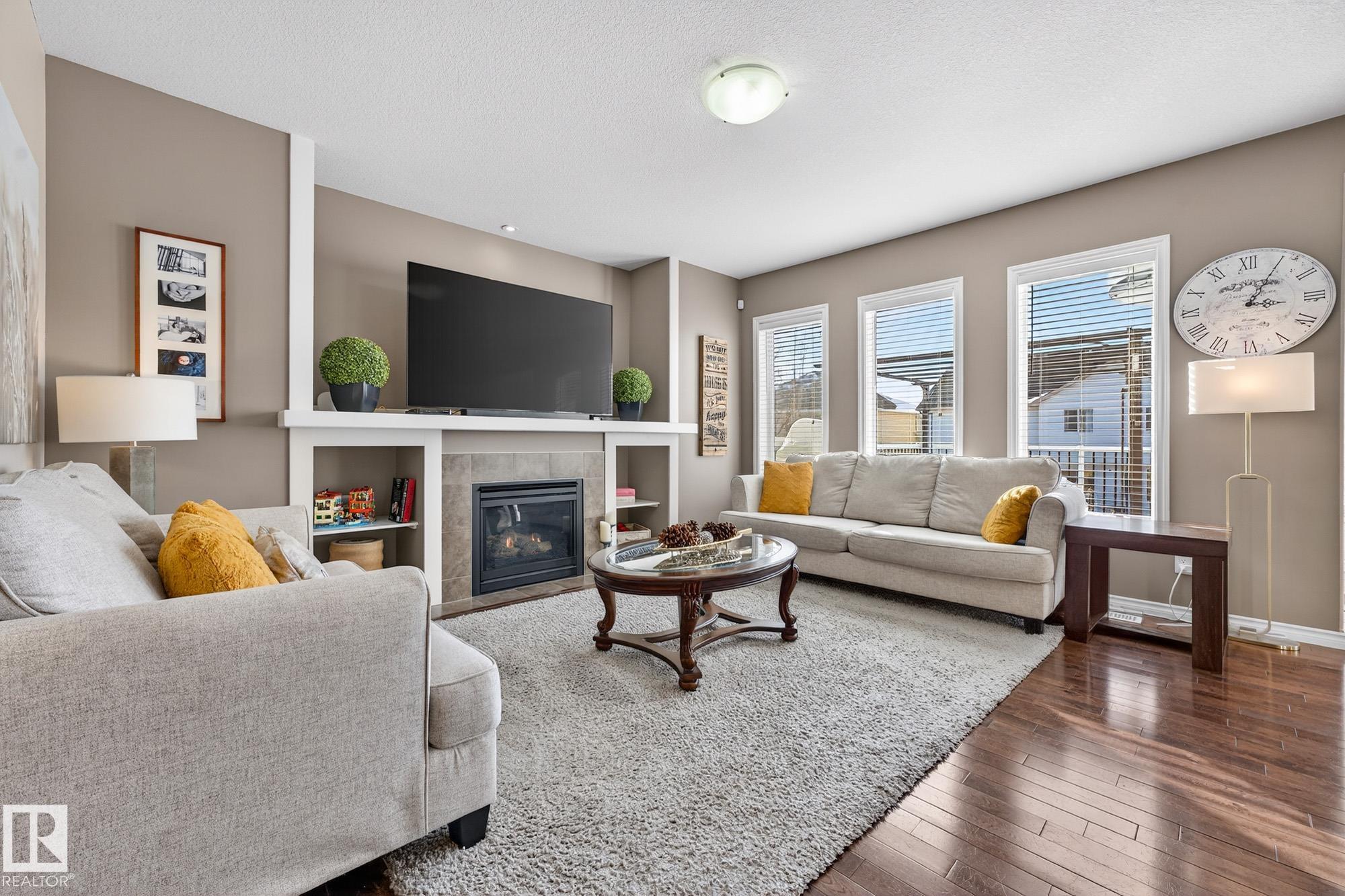 Welcome to this beautifully maintained 2,233 sq ft two-storey home with a double attached garage, located in the highly sought-after community of Walker. The main floor features rich hardwood flooring, 9' Ceiling and large west-facing windows that fill the home with natural light. The elegant family room is highlighted by a cozy gas fireplace, creating the perfect space to relax. Off the main entrance, you?ll find a versatile den or formal dining room. The spacious kitchen offers warm wood cabinetry, a large island, stainless steel appliances, and a convenient walkthrough pantry. Central air conditioning and a 2-piece powder room complete the main level. Upstairs, enjoy a generous bonus room with vaulted ceilings, three well-sized bedrooms, 4 piece bathroom and a stunning second 5-piece primary ensuite designed for comfort and functionality.The expansive west-facing backyard is perfect for entertaining, featuring a composite deck and gazebo ideal for enjoying long summer evenings.