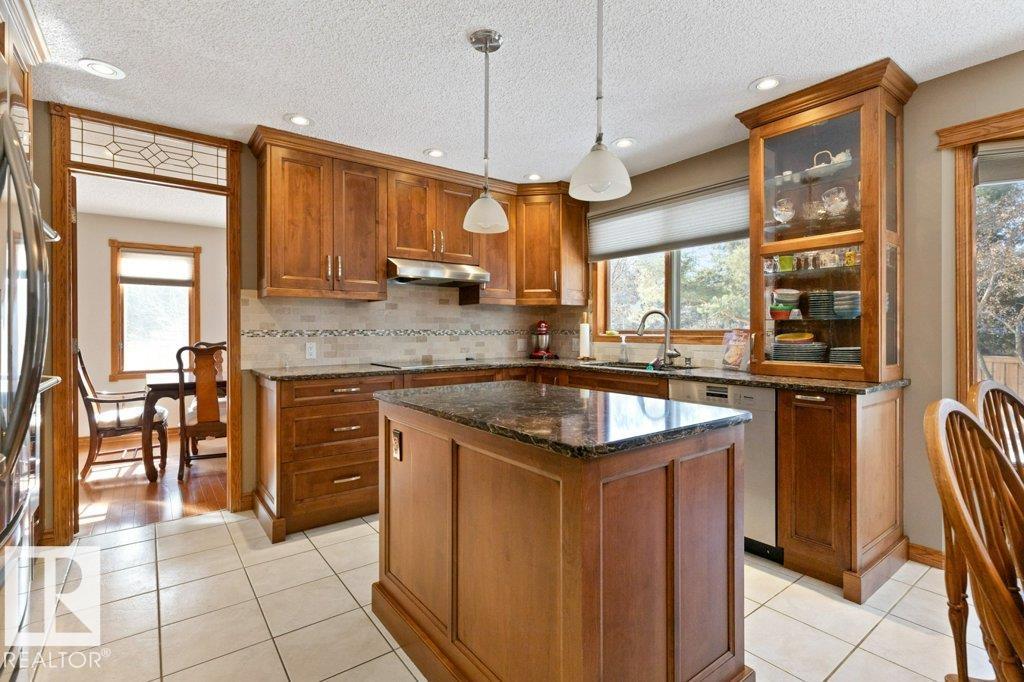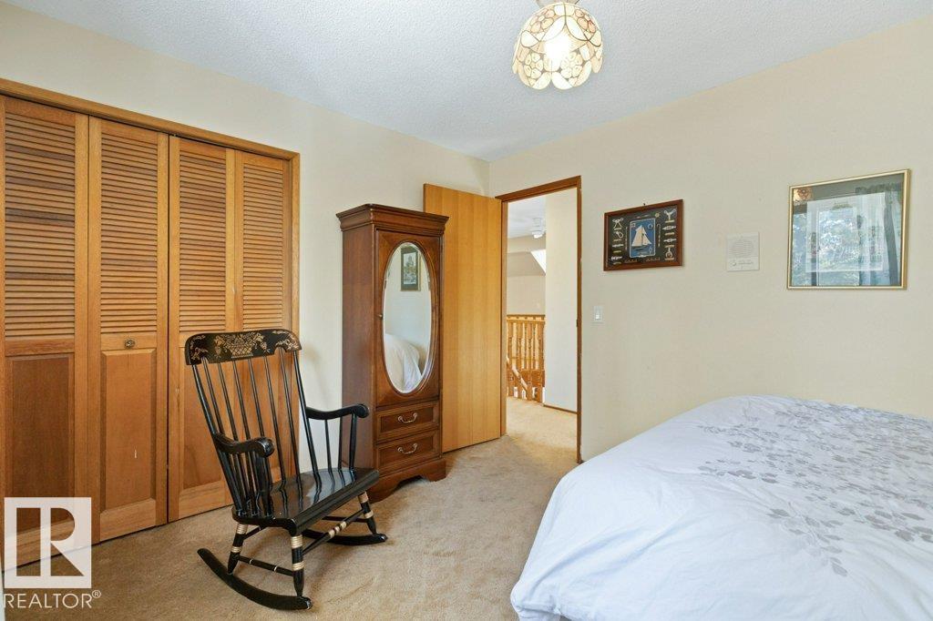 Welcome to this beautifully maintained original owner family home tucked away on a quiet cul-de-sac in desirable Lacombe Park. Set on a large pie lot surrounded by mature trees, this property offers privacy while remaining close to schools, parks, trails, shopping, & amenities. The traditional layout is ideal for family living with formal living & dining rooms, plus a spacious eat-in kitchen fully renovated in 2013 that opens to a warm family room featuring a distinctive wood-burning fireplace with fossilized sandstone surround. Main floor laundry and upgraded hardwood and tile flooring add everyday convenience. Upstairs offers four generous bedrooms, while the fully finished basement expands the living space with a large rec room with gas fireplace, two additional bedrooms, a 3-piece bath, & ample storage. Bathrooms have been updated and shingles replaced in 2019. The professionally landscaped yard (2020) features a stone patio & composite deck for entertaining. Includes 0versized double attached garage