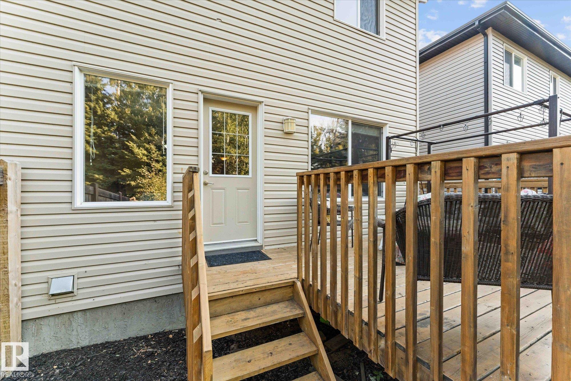 Welcome to the perfect family home in Harvest Ridge! This bright and inviting half duplex is complete with 3 bedrooms and 3.5 baths. The main floor offers an open-concept layout where the living, dining, and kitchen spaces flow seamlessly together, enhanced by large windows that fill the home with natural light. The kitchen features beautiful wood cabinetry and ample storage, making it as functional as it is stylish. Upstairs, you?ll find three generously sized bedrooms, including a comfortable primary that features a large ensuite and walk-in closet. The lower level offers extra living space with a full bathroom, perfect for a family room, home office, or guest area. Step outside to enjoy a private back deck and fully fenced backyard, backing trees, ideal for relaxing or entertaining. One of the many highlights of this home is the proximity to playgrounds, the Tri-Leisure, shopping and many more amenities. A perfect blend of comfort and convenience, this home is move-in ready and waiting for you!