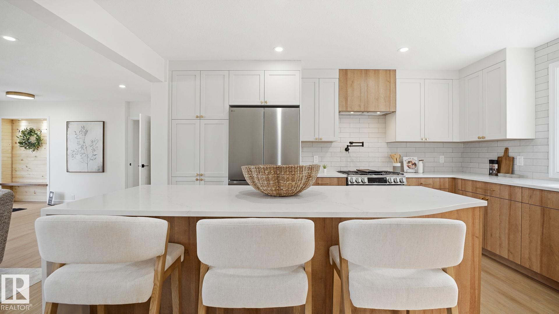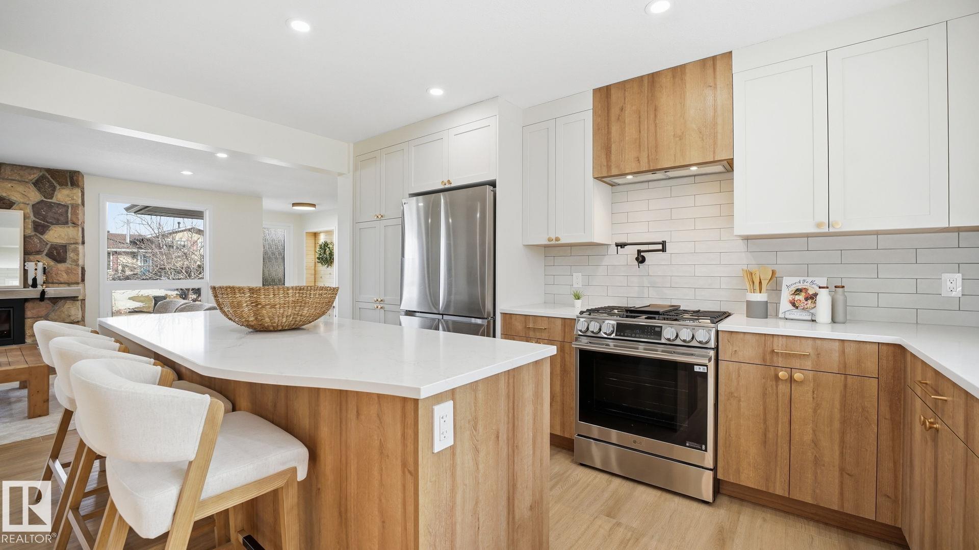 Get ready! Here is a one-of-a-kind polished gem in the heart of Sherwood Park, Glen Allan. This beauty has recently undergone an incredible whole home renovation with too many upgrades to list here. The fully permitted transformation starts on the outside with a brand new exterior, high quality vinyl siding, new soffit, fascia and eaves. As you enter the home, relax and warm up by the fireplace. The soft colour tones and high quality finishes throughout feel like a warm embrace. This layout has been completely revamped with you in mind eliminating barriers and leaving only a stunning view of your new DREAM KITCHEN from Archetype Kitchens. Two tone custom cabinetry with rolling shelves, soft close hardware, brand new stainless appliances including a beautiful gas range all positioned around a stunning island with quartz waterfall countertops. Main bathroom with HEATED TILE FLOORING.Finished basement includes a family room, reading nook and WET BAR. Outside a massive HEATED, OVERSIZED 25x30 GARAGE WORKSHOP!