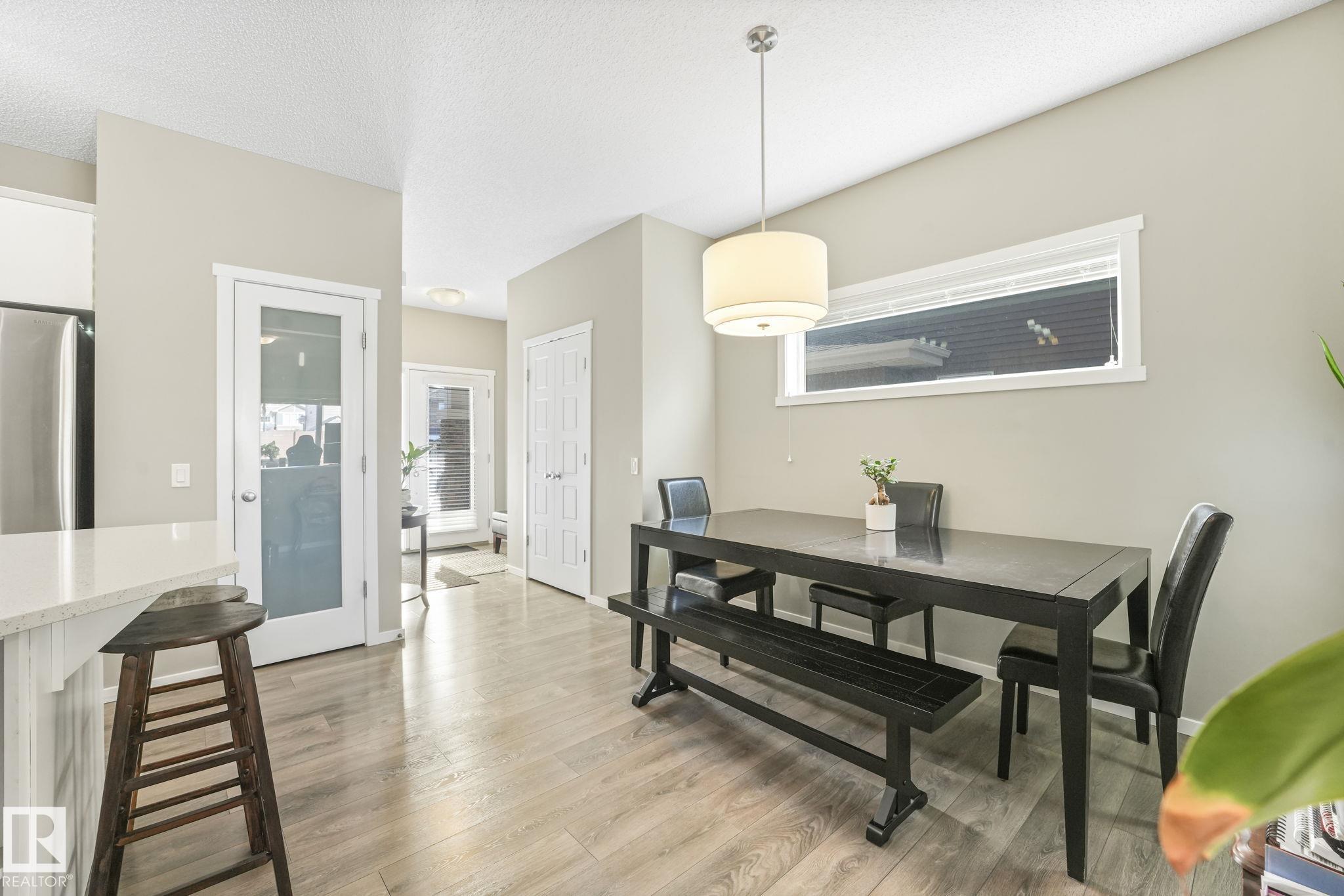 This beautifully maintained Daytona Homes half duplex offers +2100sqft of stylish living space in St. Albert?s premier beach community. The bright, open main floor features a modern kitchen with ample cabinetry, pantry, and generous counter space flowing into the dining area and bright living room. A convenient half bath and rear entry with backyard access complete the main level. Upstairs offers 3 comfortable bedrooms, including a spacious primary retreat with walk-in closet and 3-piece ensuite, plus a full bathroom and convenient upper-floor laundry. The fully finished basement adds great flexibility with a 4th bedroom, another full bathroom, and two additional living spaces, perfect for relaxing or a home office. Outside, the yard is fully landscaped and fenced with a deck to enjoy summer evenings. Jensen Lakes amenities include a park, private beach with winter skating &ice fishing, BBQ area, new tennis courts coming this year, plus plenty of community events that make it easy to enjoy the outdoors!