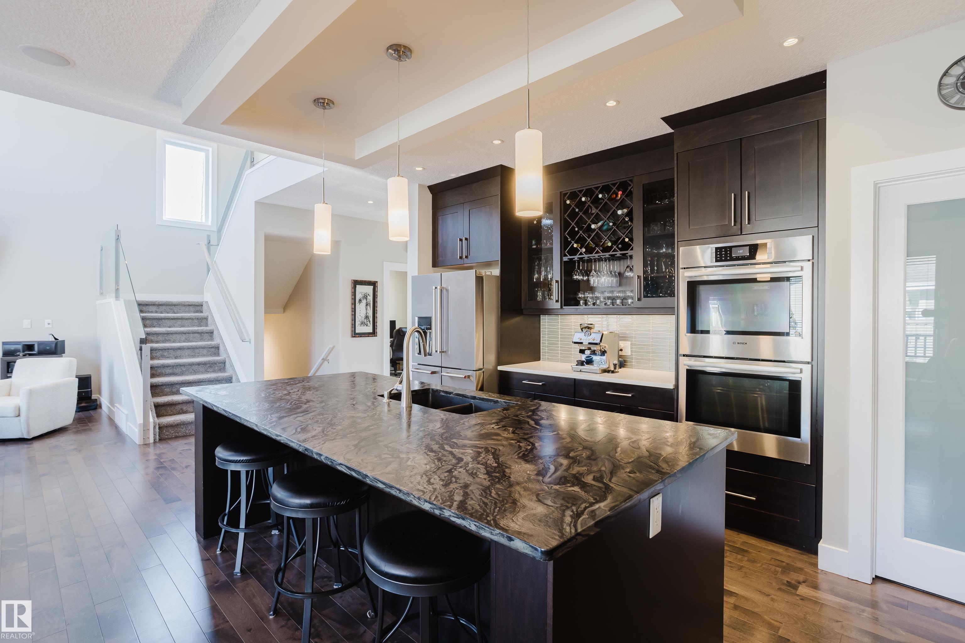 Located in the prestigious community of Copperwood in The Hamptons, this exceptional two-storey home offers west exposure, peaceful tree views, and immediate access to nearby parks and pathways. With 4,069 sq.ft. of professionally designed living space. Features 4 bedrooms, 2 dens, and 5 bathrooms, a dramatic vaulted great room, functional walk-through pantry, mudroom, upper-floor laundry and bonus room. The fully developed basement provides additional recreation and entertaining space, complete with bathroom, ample storage and rough in for wet-bar so you can put your finishing touches on it. Outside, enjoy your private backyard. Convenience of an attached triple garage with floor drain and an impressive 60+ ft. driveway, ideal for guest parking or accommodating larger recreational vehicles.