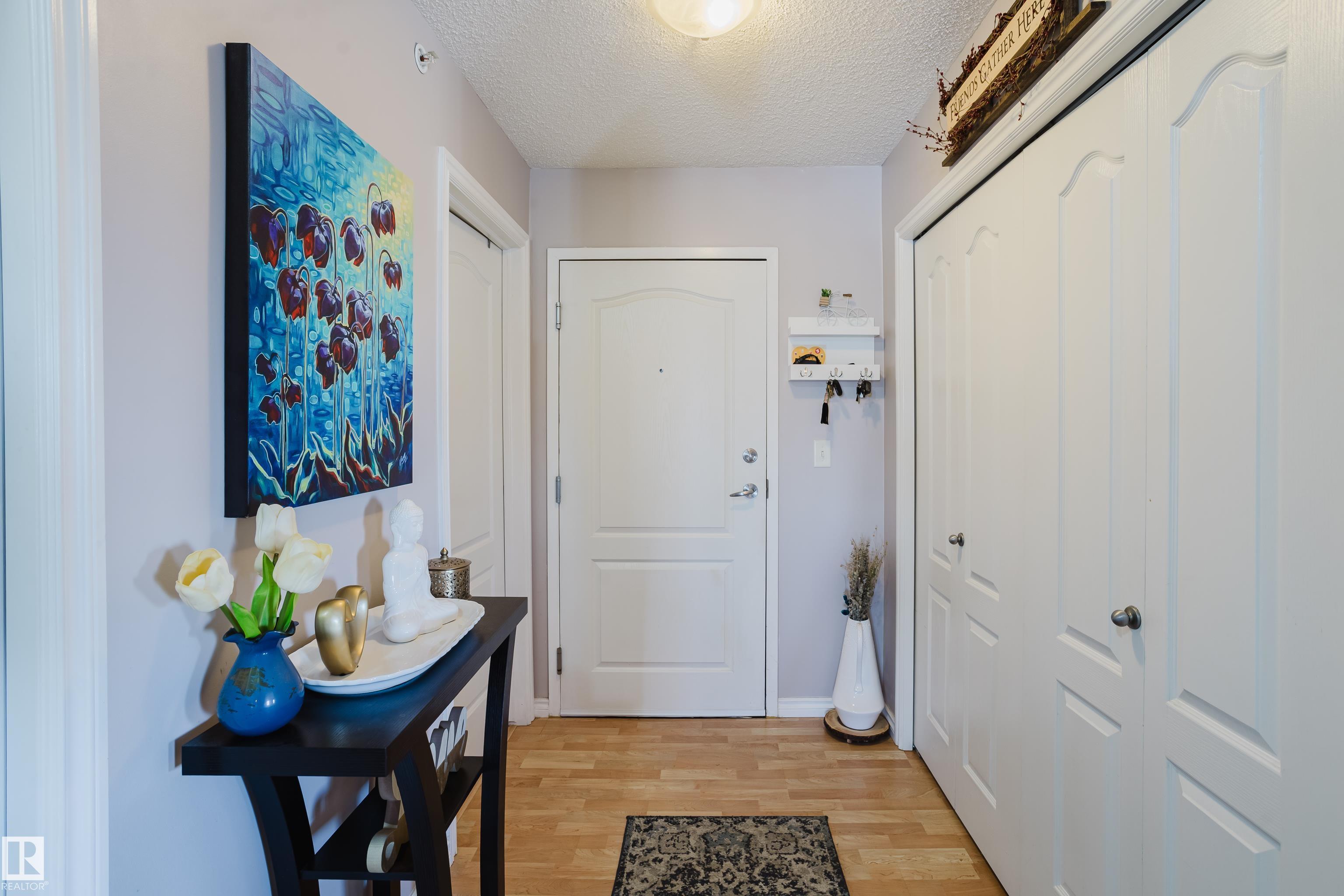 Top-floor living with ravine views! Tucked away in the quiet community of Blackburn, this well-maintained building offers peaceful living surrounded by nature. This bright and inviting unit features west-facing windows overlooking the ravine, providing beautiful views and plenty of natural light. Enjoy walking trails just steps from your door, or relax on the covered west-facing balcony with no rear neighbors. Offering 987 sq ft, this thoughtfully designed layout includes 2 bedrooms positioned on opposite sides of the unit for added privacy and 2 full bathrooms, including a primary ensuite with tub/shower. The home also features in-suite laundry and a warm, welcoming living space with vaulted ceilings perfect for everyday living or entertaining. Additional highlights include a heated underground parking stall and a location just minutes from shopping, public transit, and major commuter routes. A fantastic opportunity for first-time buyers, downsizers, or investors?this home shows beautifully.
