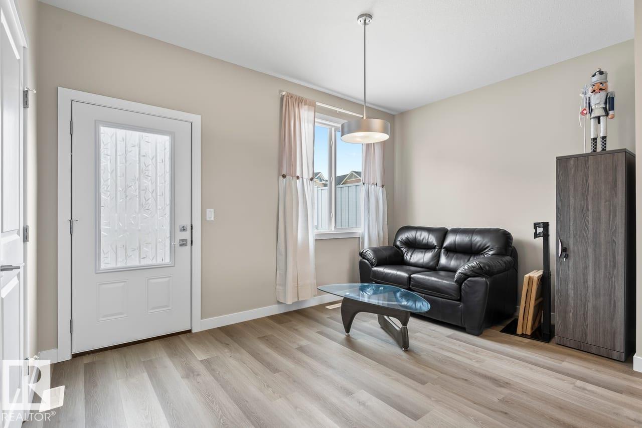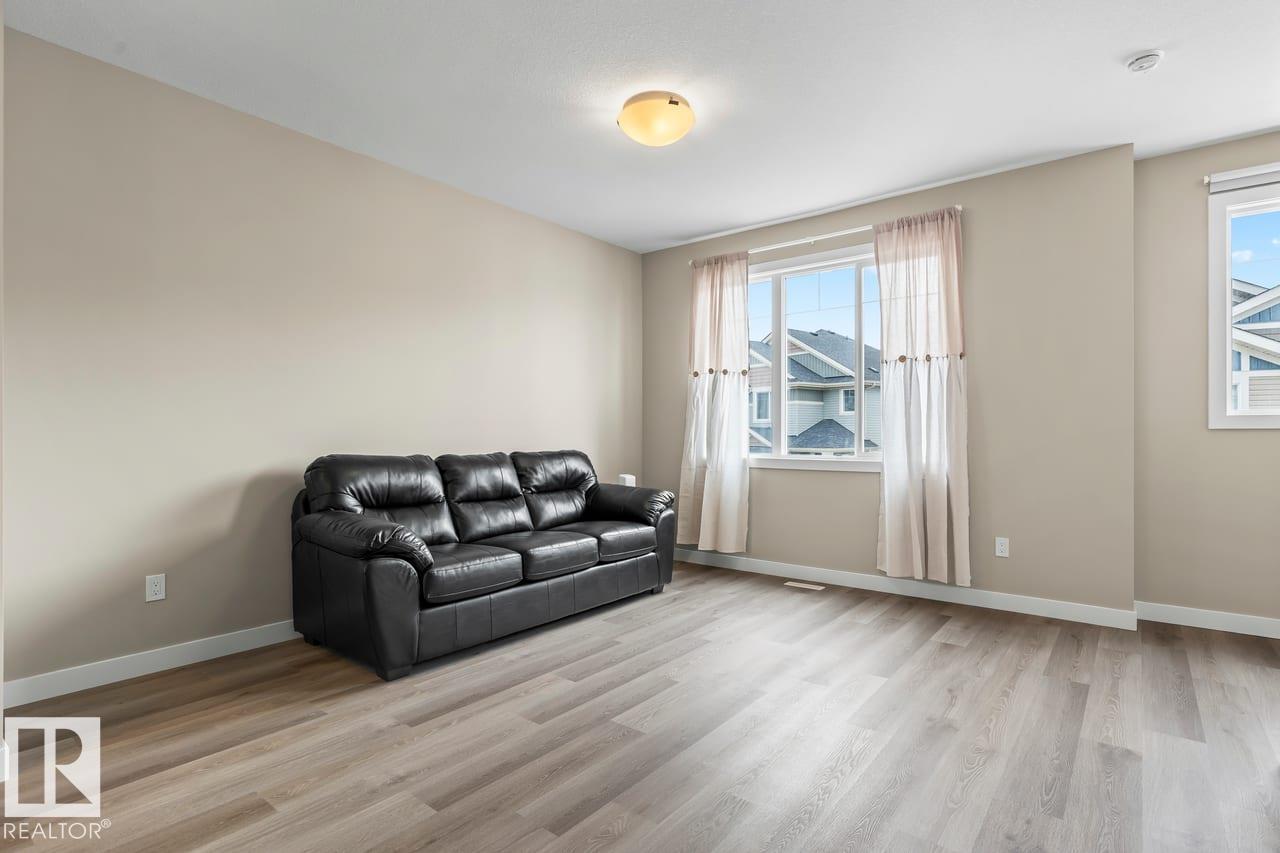 Welcome to Unit 62 at Skylark 87 in the nature-inspired community of Trumpeter at Big Lake, just minutes from St. Albert and northwest Edmonton. Surrounded by wetlands, walking trails & over 300 acres of preserved green space, this community offers a peaceful setting with convenient city access. This modern three-storey townhome features stylish finishes including quartz countertops, vinyl plank flooring, ceramic tile backsplash, and stainless steel appliances. Main floor is the entrance, mudroom and parking. The open-concept second floor includes a spacious kitchen with a large island overlooking the dining area and living room, perfect for everyday living and entertaining. Upstairs offers a primary bedroom with walk-in closet and 4-piece ensuite, plus two additional bedrooms, a full bath, and upper-floor laundry. The home also includes a tandem attached garage for two vehicles and a private rear deck.