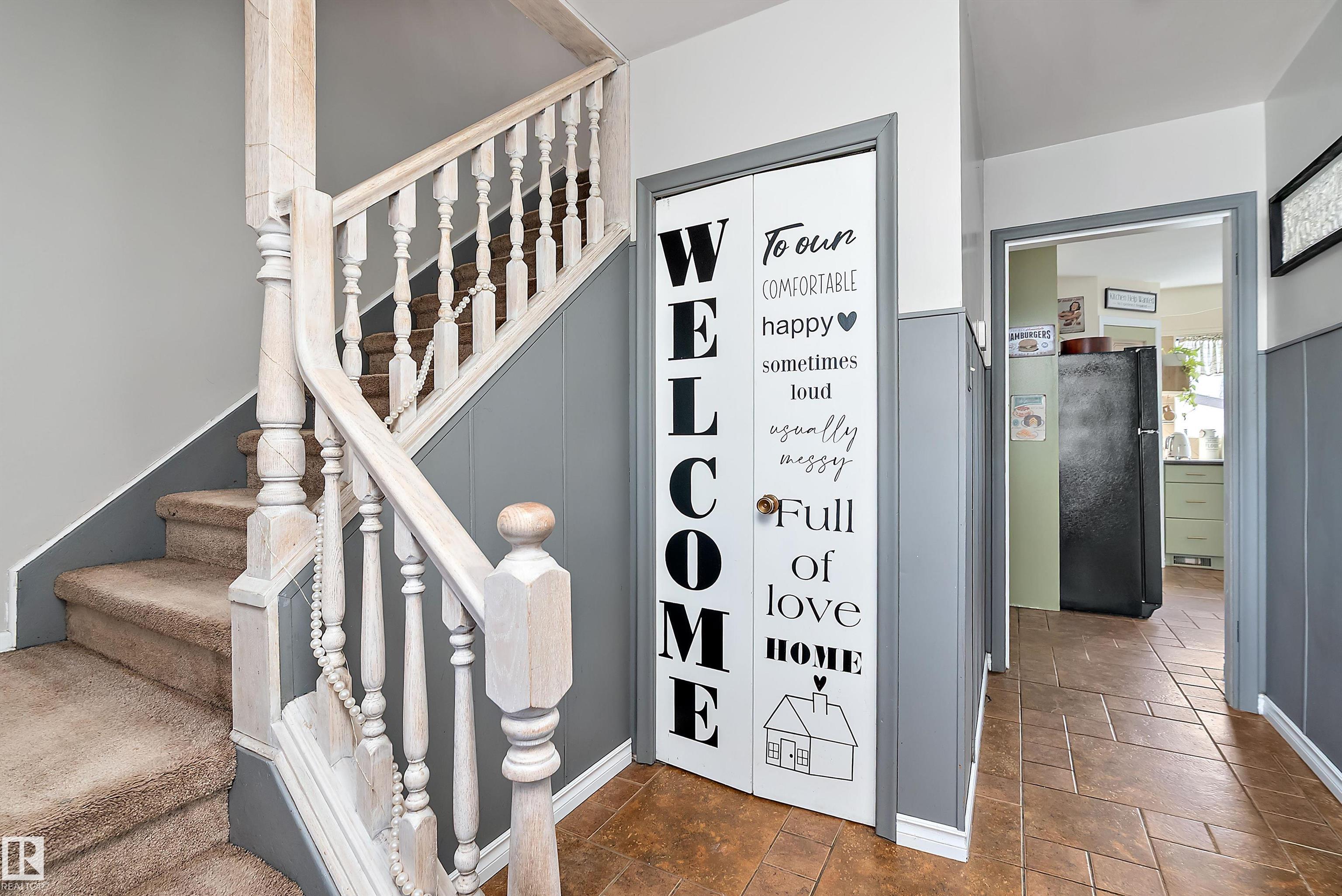 From the minute you drive up, you will fall in love with this charming 2 story family home! This is a rarity with 4 bedrooms up, a 5th in the basement and an easy additional 6th - there's room for the whole family here. Through the covered front step you'll be welcomed into what immediately feels like home! Off the tiled front entry is the living room with brick-facing wood fireplace & built-in feature wall. The beautiful, renovated kitchen offers room for a full dining table & has patio doors leading to the back deck in fenced yard. Upstairs offers 4 generous bedrooms each with large closets and a 4 piece bath, tastefully updated. The basement provides a cozy second living area with built-in bar, a 5th bedroom, 3 piece bath and AMPLE storage. Recent upgrades include the roof, kitchen, paint, HWT, and the furnace in 2010 with yearly service. A double garage at the rear completes this idyllic property. If you're looking for a beautiful well-cared for home with character & room for everyone - welcome home!