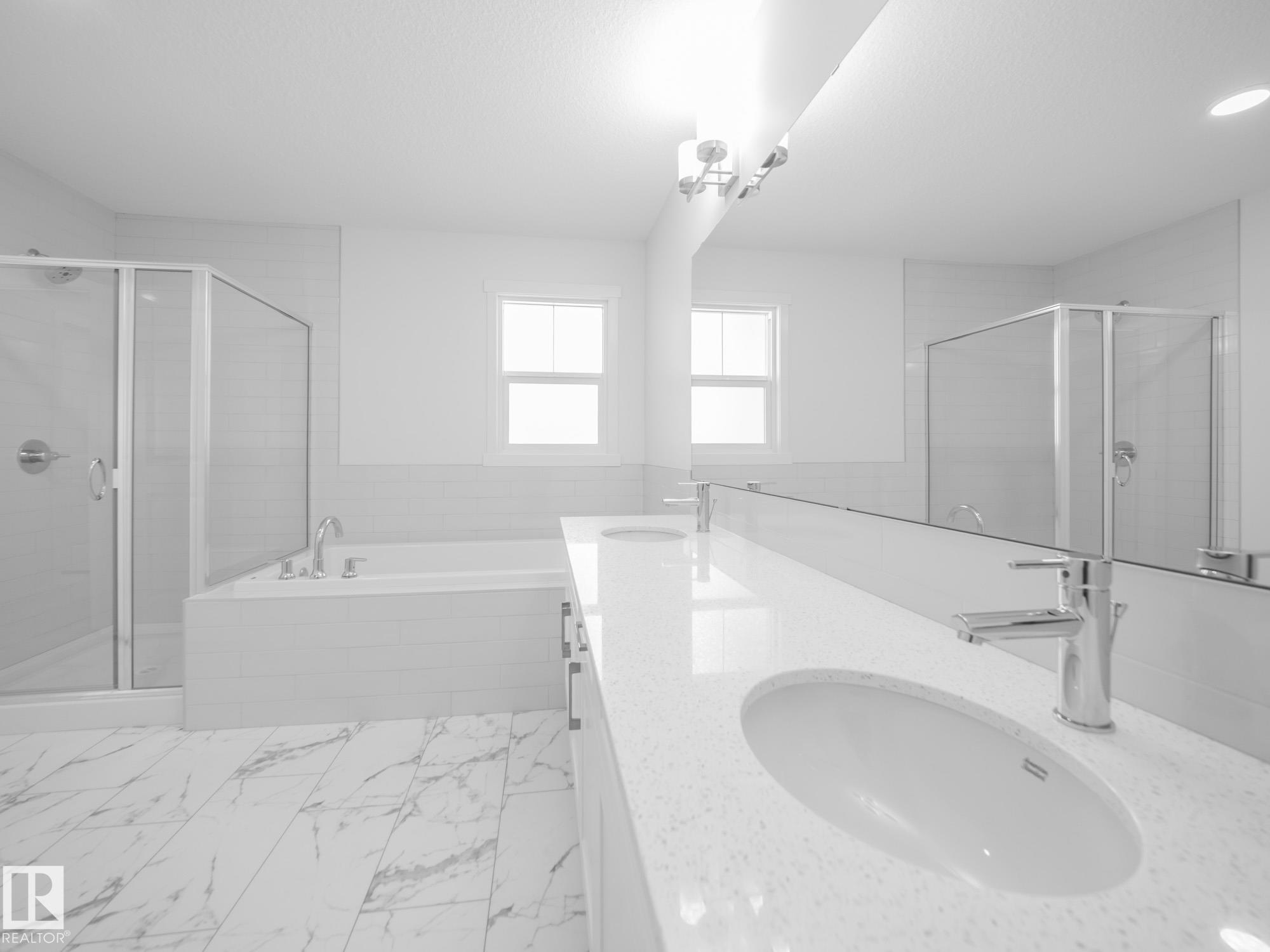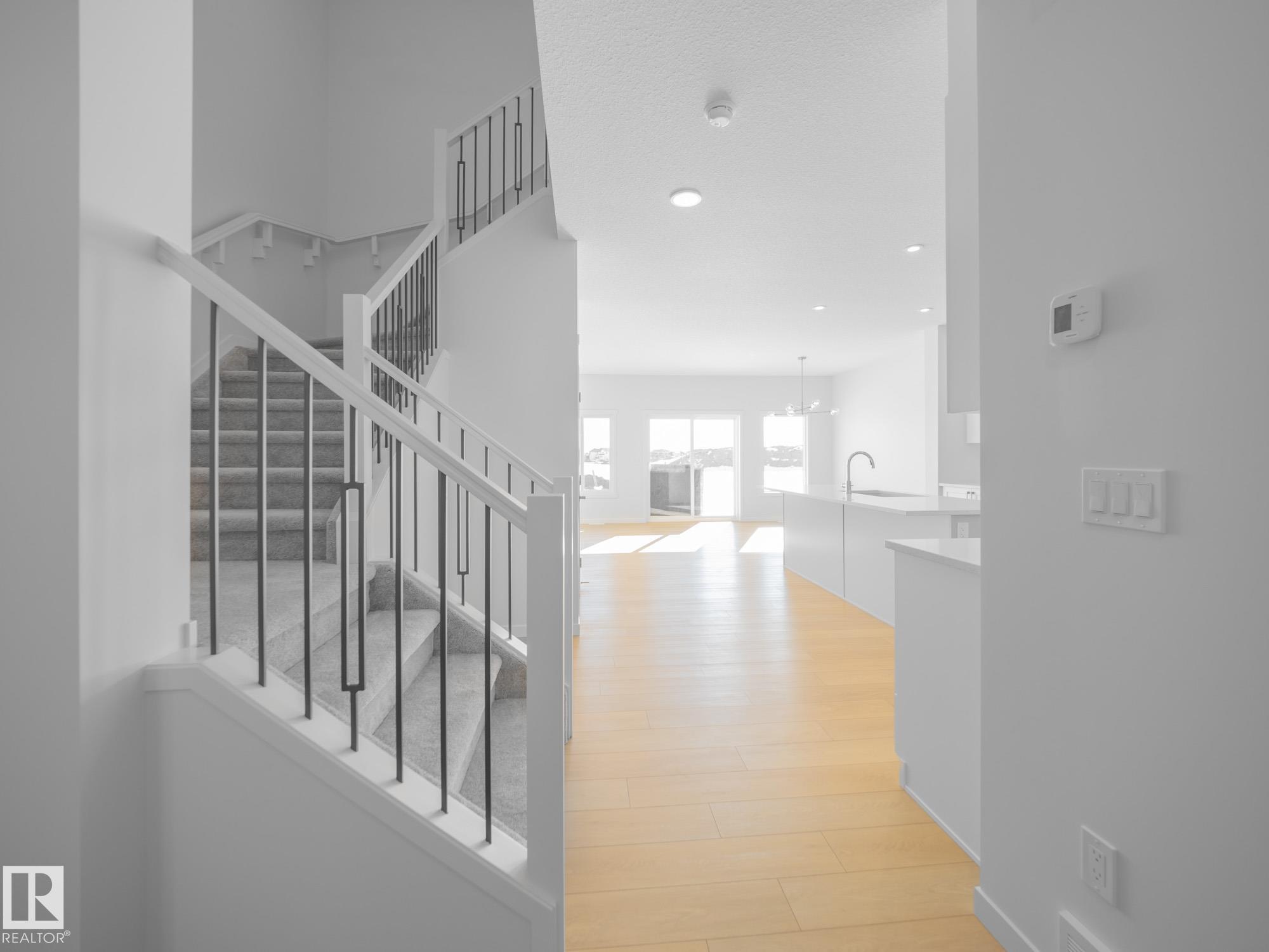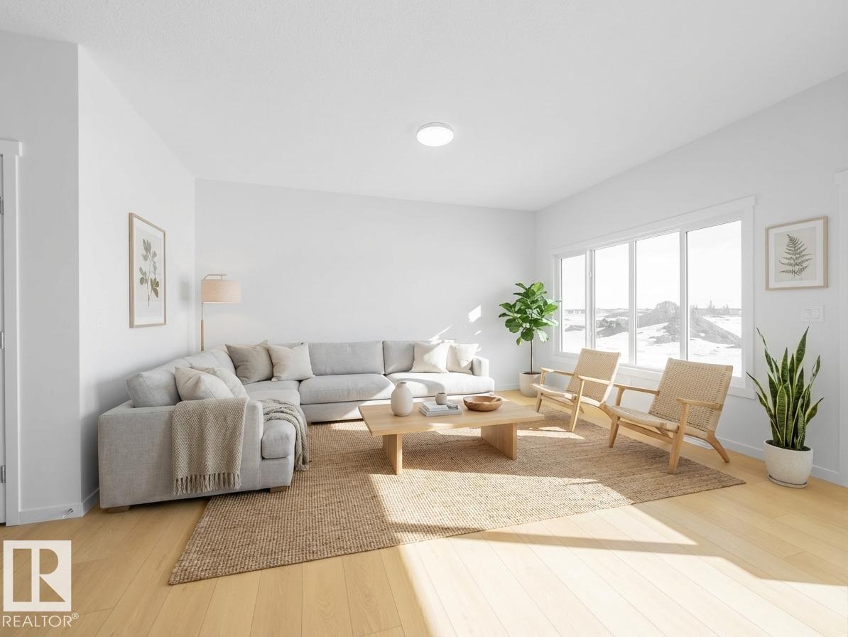 Welcome to a beautifully crafted Coventry Home designed for the way life is meant to be lived. 9' ceilings on the main floor and basement create a bright, open atmosphere that instantly feels welcoming. The open-concept kitchen blends style and function with stainless steel appliances, quartz countertops, upgraded cabinetry, and a pantry, making it a natural gathering place for everyday moments and shared meals. The Great Room flows effortlessly into the dining area, creating the perfect space for entertaining or quiet evenings at home, while a mudroom and half bath add everyday convenience. Upstairs, the primary suite offers a peaceful retreat with a spa-inspired 5-piece ensuite featuring dual sinks, a relaxing soaker tub, stand-up shower, and walk-in closet. Two additional bedrooms, a full bath, a versatile bonus room, and upstairs laundry provide comfort and flexibility for daily life. Built with care and backed by the Alberta New Home Warranty Program. Some photos virtually staged.