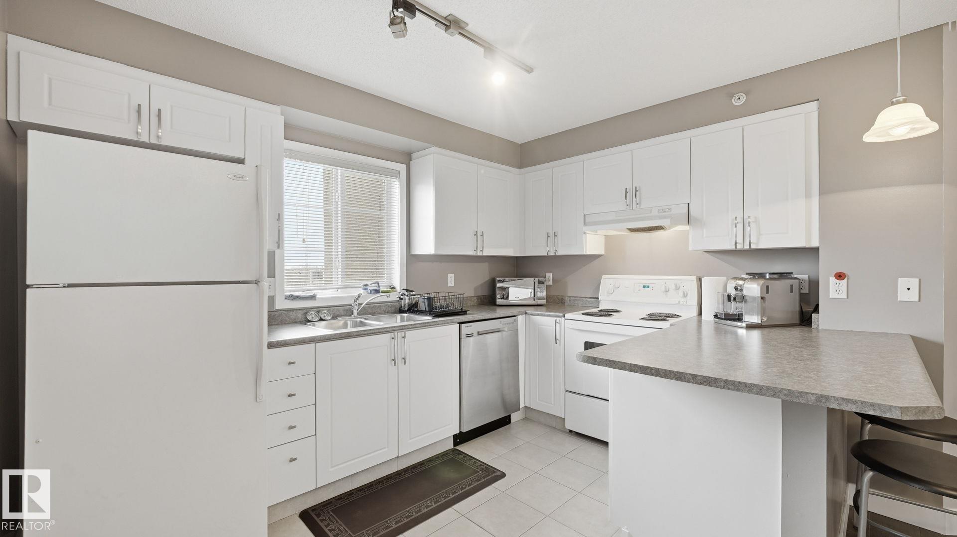 Convenient top floor end unit in the desirable community of MacEwan Village! This bright and spacious 2 bedroom, 2 bathroom condo offers an open concept layout perfect for comfortable living and entertaining. The kitchen flows seamlessly into the dining and living areas, creating a welcoming space filled with natural light. The primary bedroom features a walk-through closet leading to a 4 piece ensuite, while the second bedroom and full bathroom provide flexibility for guests, or a home office. Step outside to your large south facing balcony with a BBQ gas line. Additional highlights include in-suite laundry, extra storage, and a heated underground parking stall. This unit has been updated and very well maintained, making it truly move-in ready. Ideally located with quick access to Anthony Henday, shopping, parks, and amenities. Best of all, condo fees include all utilities (heat, water, electricity) offering excellent value and convenience.