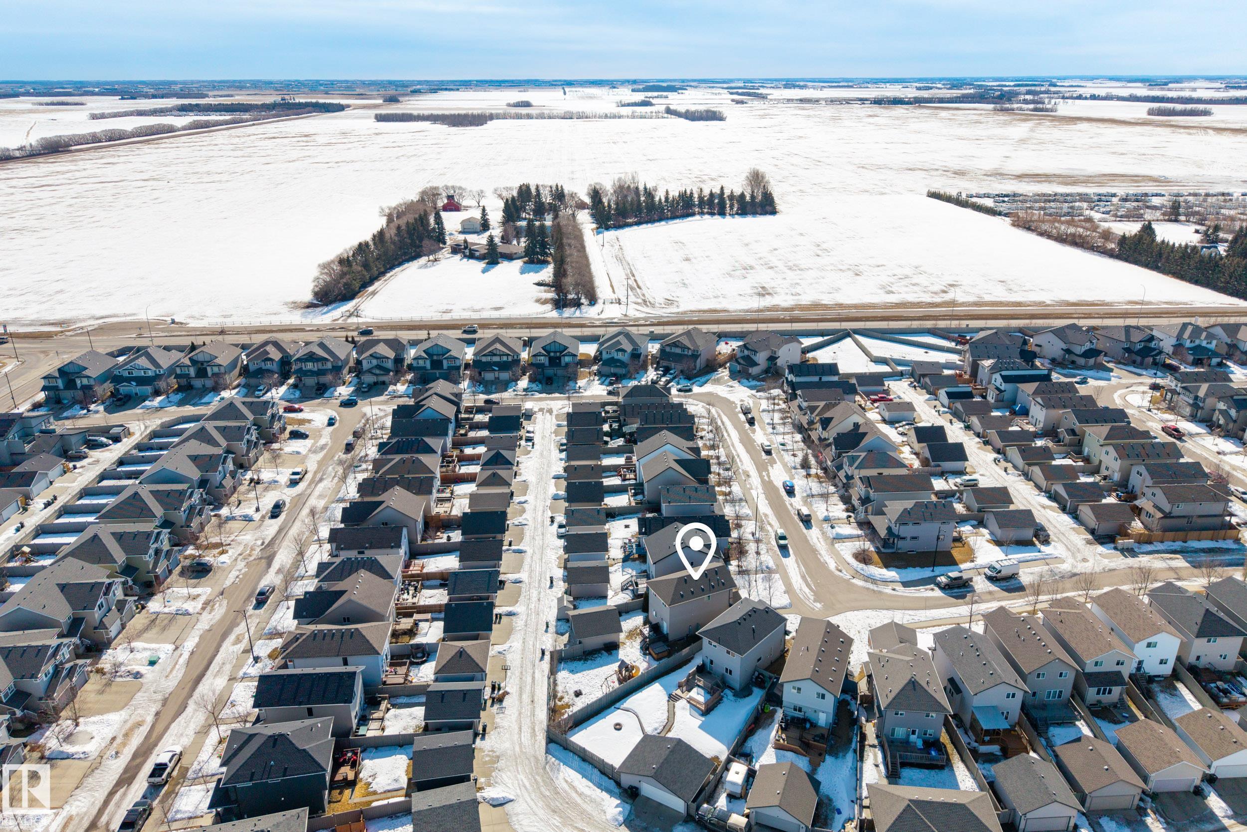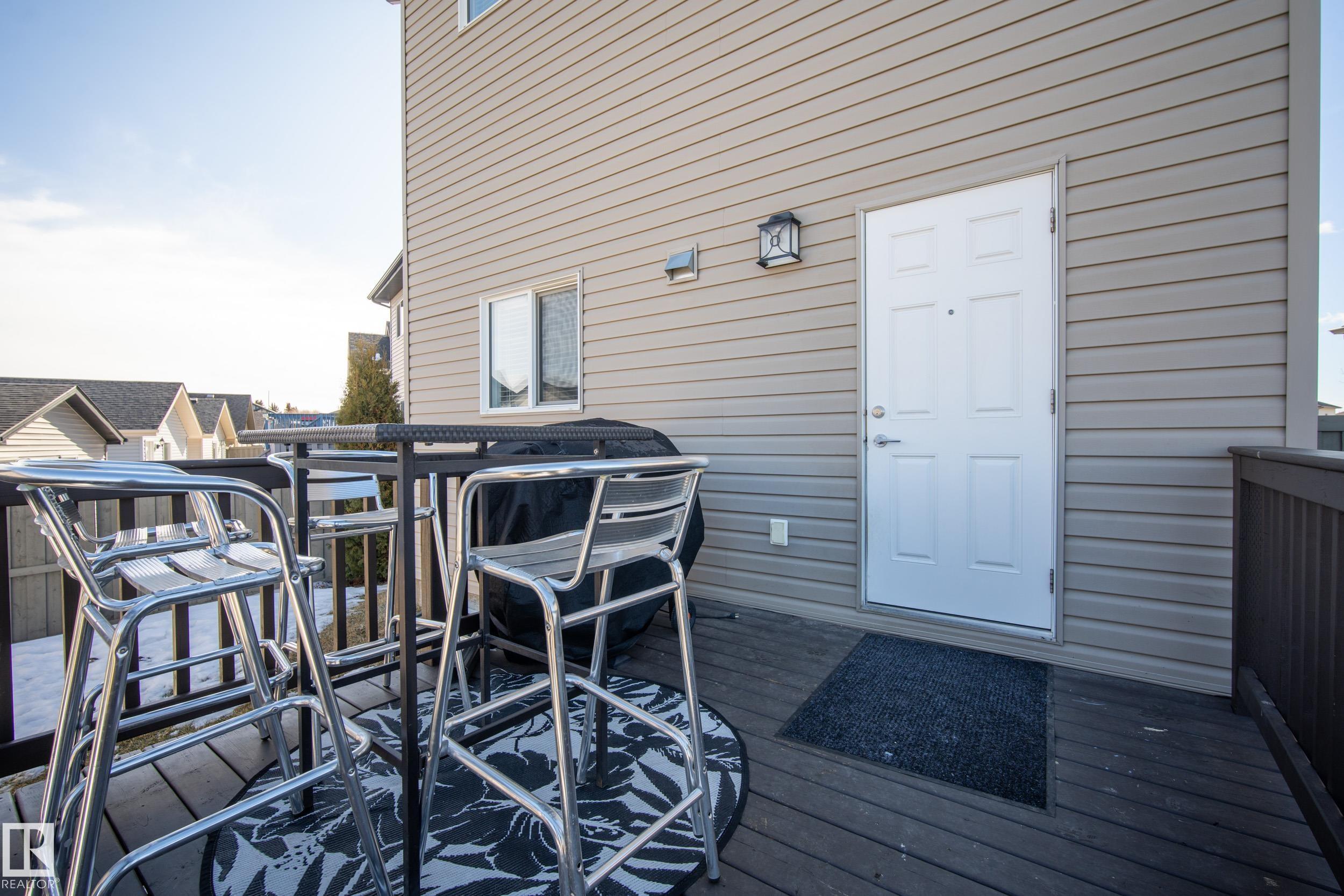 Welcome to Chappelle! This Beautifully well kept Two-Storey Home sits an a MASSIVE PIE LOT on a quiet street. A perfect Open Concept 1431sqft layout with a Dream Backyard that is hard to find. Entering the home you'll find beautiful hardwood flooring, and a custom fireplace surround in the living room. Spacious dining room area and a modern island kitchen with a window overlooking the backyard. A 2pc bathroom and a rear mudroom for all the boots. Upstairs features 3-bedrooms. A large Primary bedroom with a 4pc Ensuite, as well as two additional bedrooms and a 4pc bathroom. The basement is unfinished and a perfect place for storage or a kids play area, ready to be finished if needed. Back to the yard, this oversized lot has a beautiful deck overlooking a Double Detached Garage. The rear property line is over 72ft wide! Plenty of room for RV storage, gardening or garage additions. These lots aren't available often, don't miss this amazing opportunity. Close to all Chappelle Amenities!