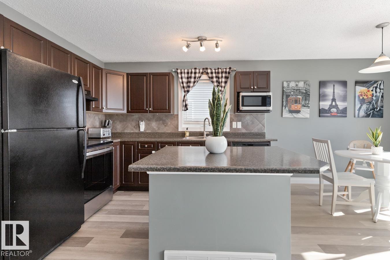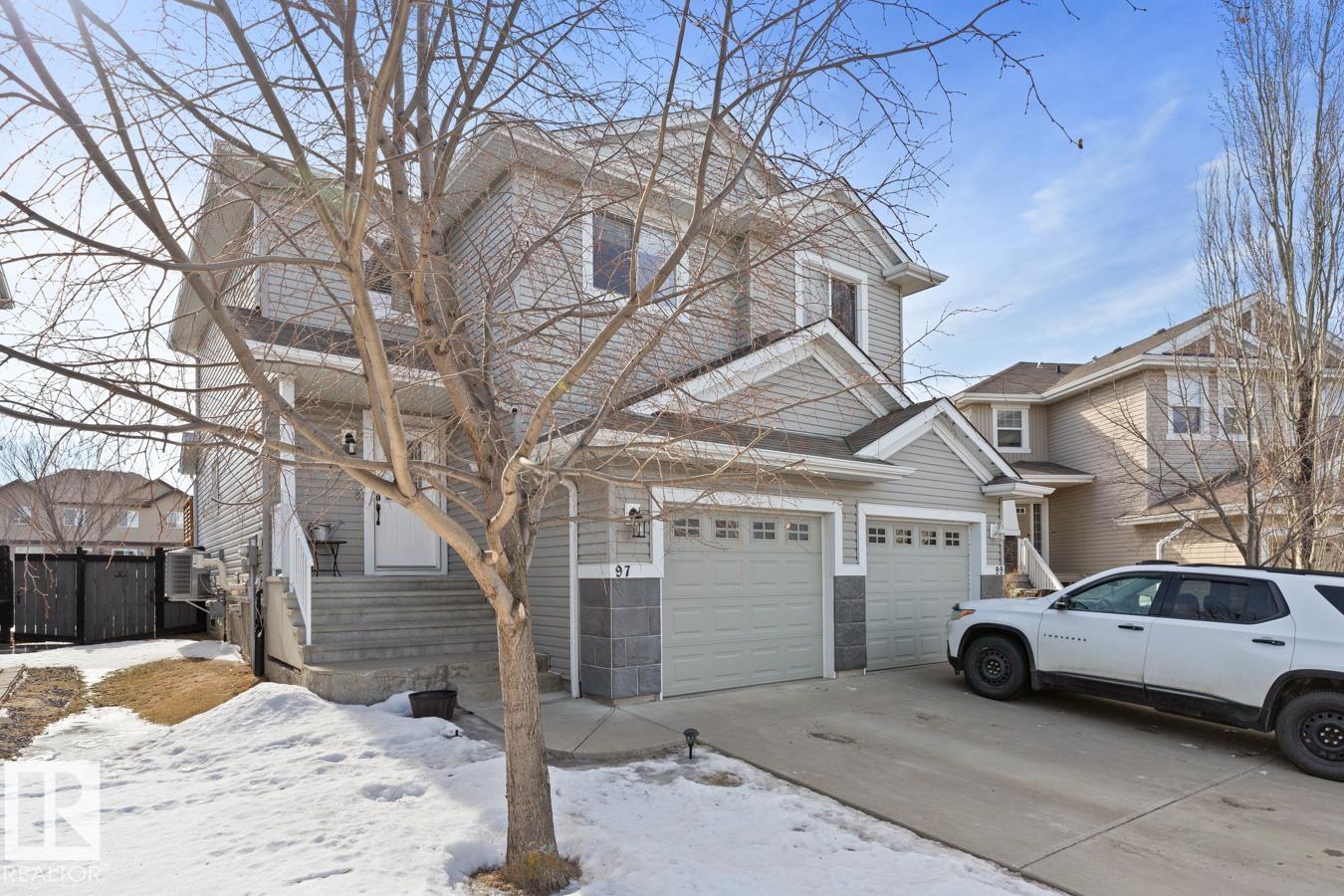Welcome to this inviting 2-storey 1/2 duplex in West Haven, ready for a family to call home. The bright main floor features new LVP flooring and fresh paint. The kitchen offers a large island, newer stove, and plenty of prep space, opening to the living and dining areas for easy everyday living. Upstairs you?ll find 3 bedrooms, including a primary suite with a 3 pc ensuite, plus a 4 pc main bath. The basement is partially finished, providing a comfortable family room & ample storage space. Step outside to enjoy the nicely landscaped, fully fenced yard w/ a 2-tiered deck w/ new boards, perfect for relaxing or entertaining. Front attached garage provides secure parking, and shelter from the elements. Additional highlights include A/C & newer stacked washer/dryer. Great location near schools, parks, shopping, & golf, w/ quick access to 50 Ave, Hwy 2, & Hwy 2A for an easy commute.
