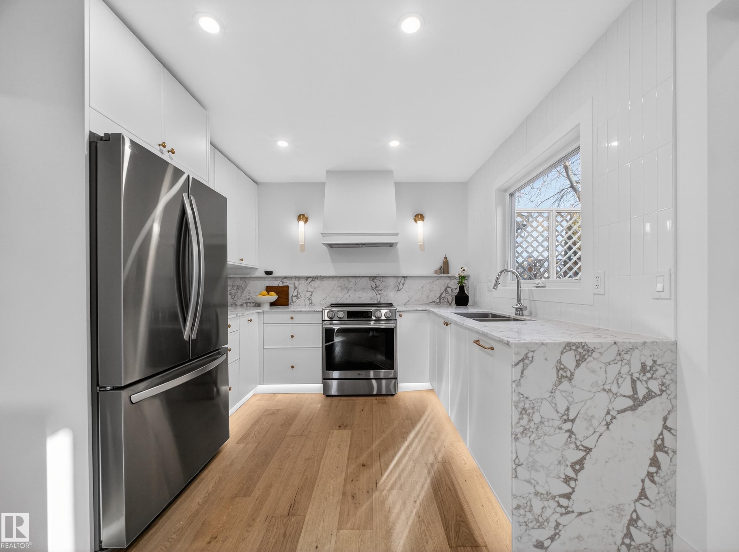 COMPLETELY RENOVATED FROM TOP TO BOTTOM, this stunning home blends modern luxury with thoughtful design. Featuring 4 SPACIOUS BEDROOMS UP, it?s perfect for families seeking both comfort and style. The home showcases HIGH-END FINISHES THROUGHOUT, including ENGINEERED HARDWOOD FLOORING, QUARTZ AND MARBLE COUNTERTOPS, and a beautifully designed KITCHEN with ALL NEW APPLIANCES, including an INDUCTION RANGE. Enjoy cozy evenings by the WOOD-BURNING FIREPLACE, while NEW WINDOWS AND DOORS THROUGHOUT enhance both efficiency and aesthetics. The fully finished basement offers additional living space complete with a STYLISH WET BAR and ROXUL SAFE n SOUND INSULATION in the ceiling, creating a quiet and comfortable environment. Practical upgrades include a FURNACE, 50-GALLON HOT WATER TANK, BACK-FLOW PREVENTER, NEW PEX WATER LINES and a HEATED GARAGE for year-round convenience. A striking CUSTOM RAILING adds architectural character and completes the home's polished look.