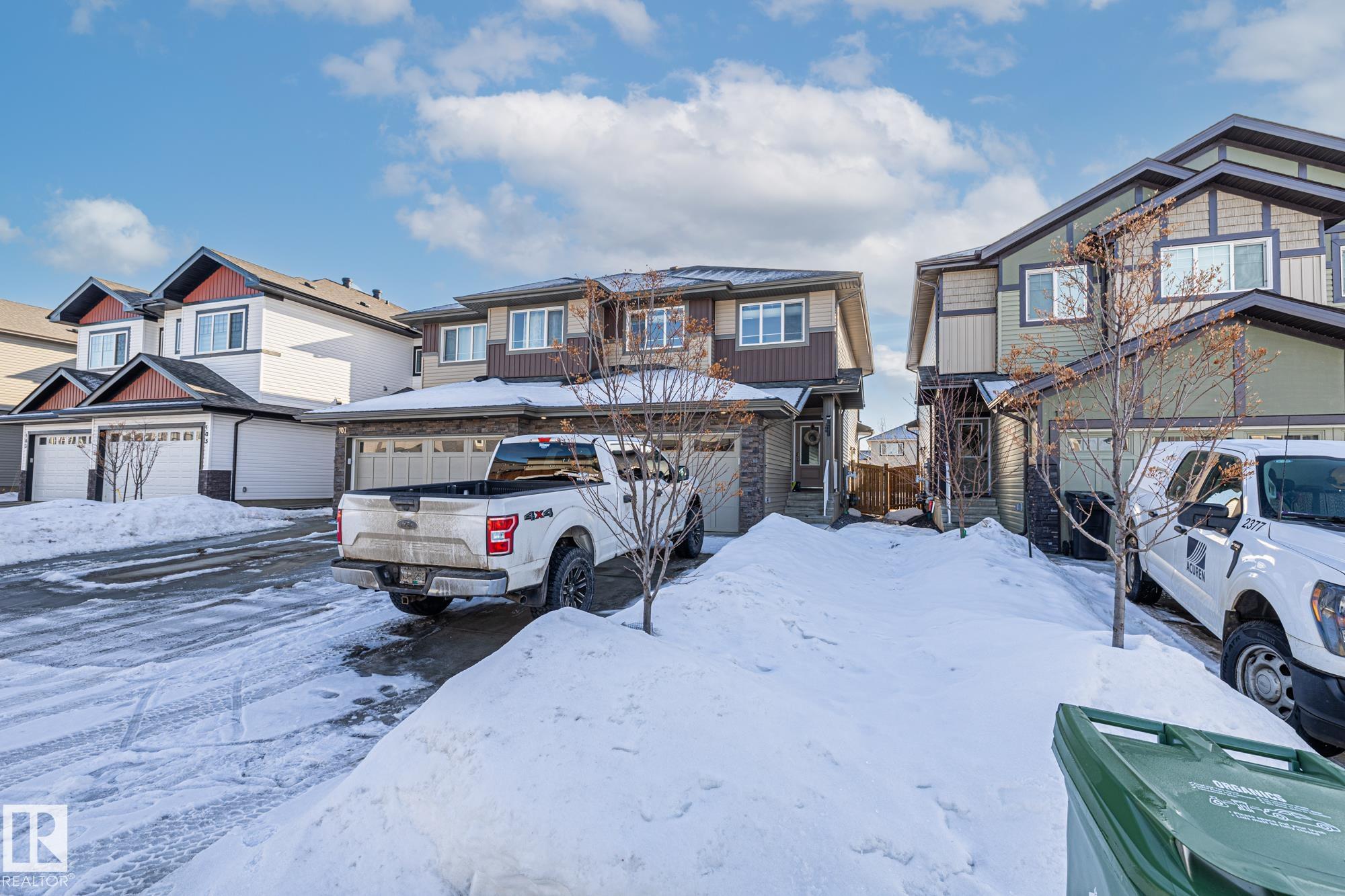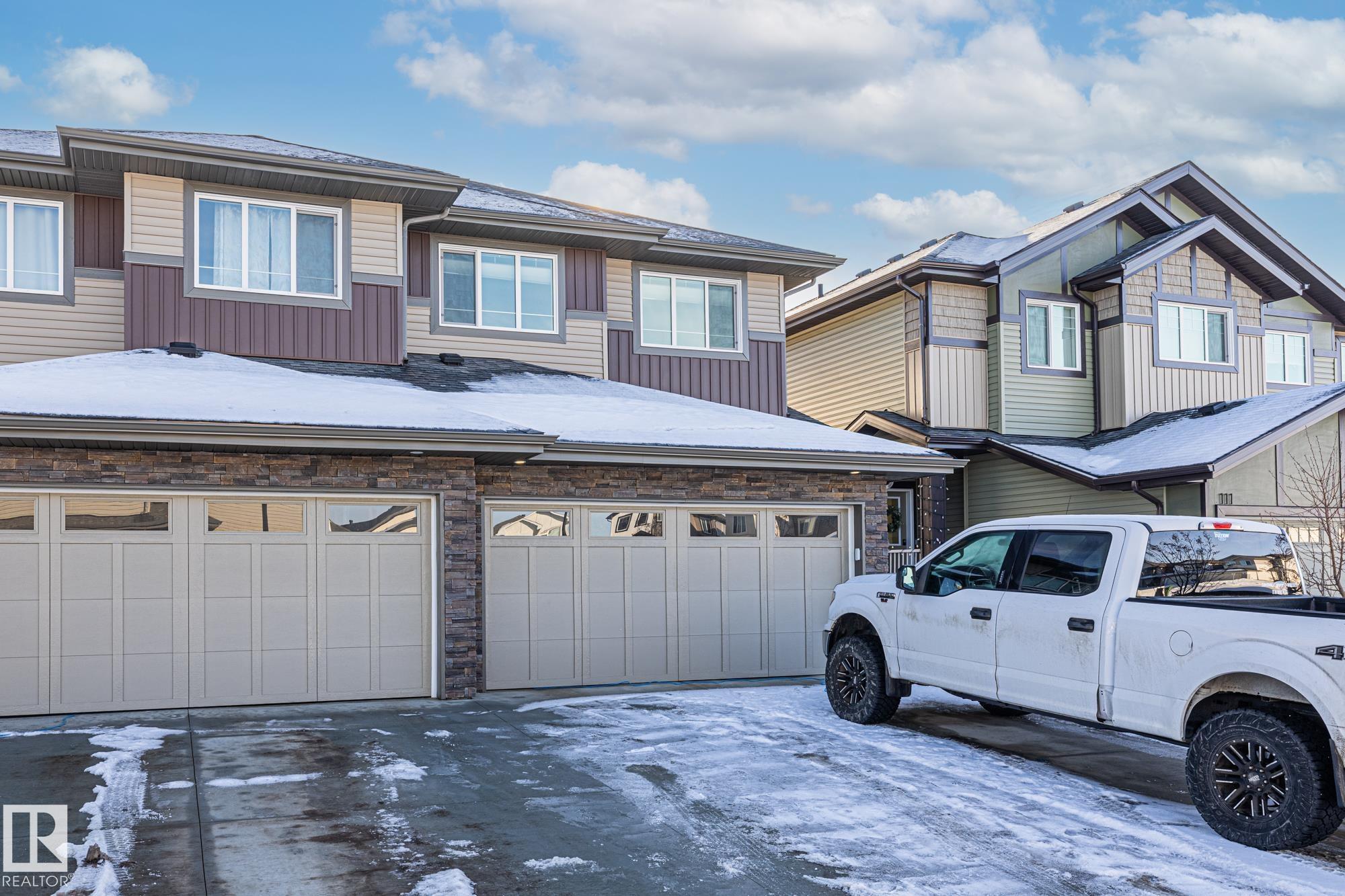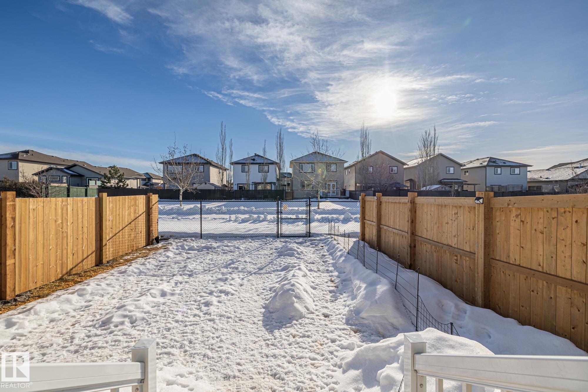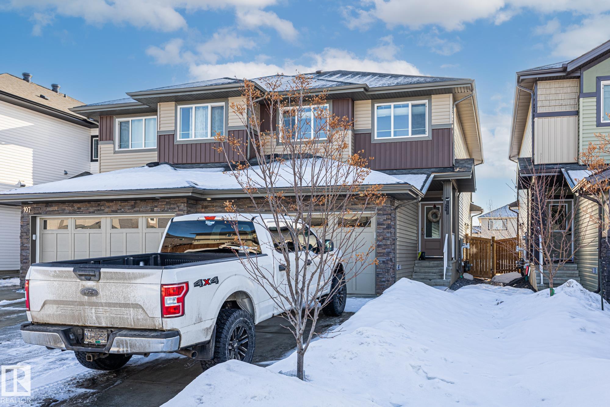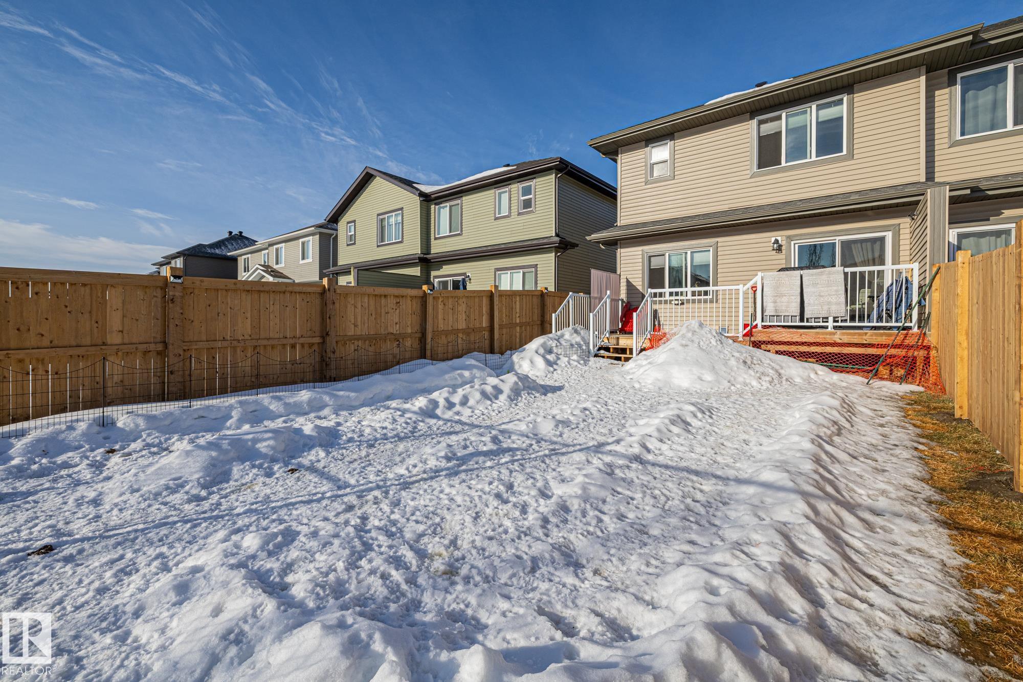Come take a look at this beautiful duplex! Upon entry, you?re welcomed by a hallway to the left featuring a convenient closet and a 2-piece powder room. The heart of the home showcases a modern kitchen with ample cabinetry and a walk-in pantry, seamlessly flowing into the dining and living areas. These spaces are filled with natural light and are perfect for both everyday living and entertaining. Off the dining room, step outside to a fully fenced backyard complete with a dec, ideal for summer evenings. Upstairs, you?ll find three generously sized bedrooms, including a spacious primary suite with a walk-in closet and a 3-piece ensuite. An additional 4-piece bathroom and upper-level laundry complete this well-designed home. Located in Westpark Fort Saskatchewan, this home is close to many amenities including schools, shopping center and more!