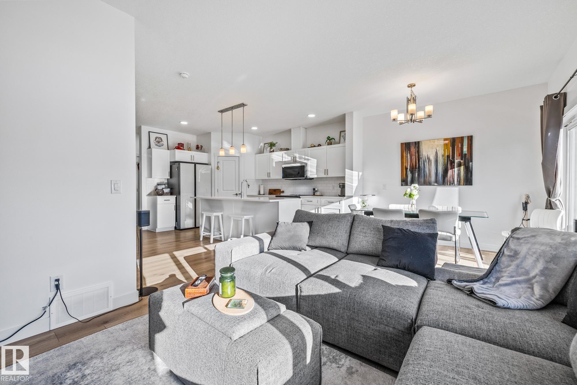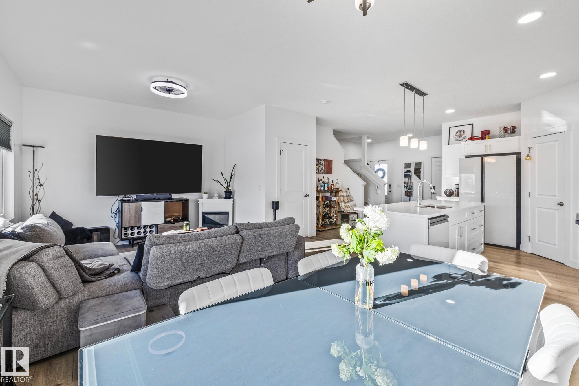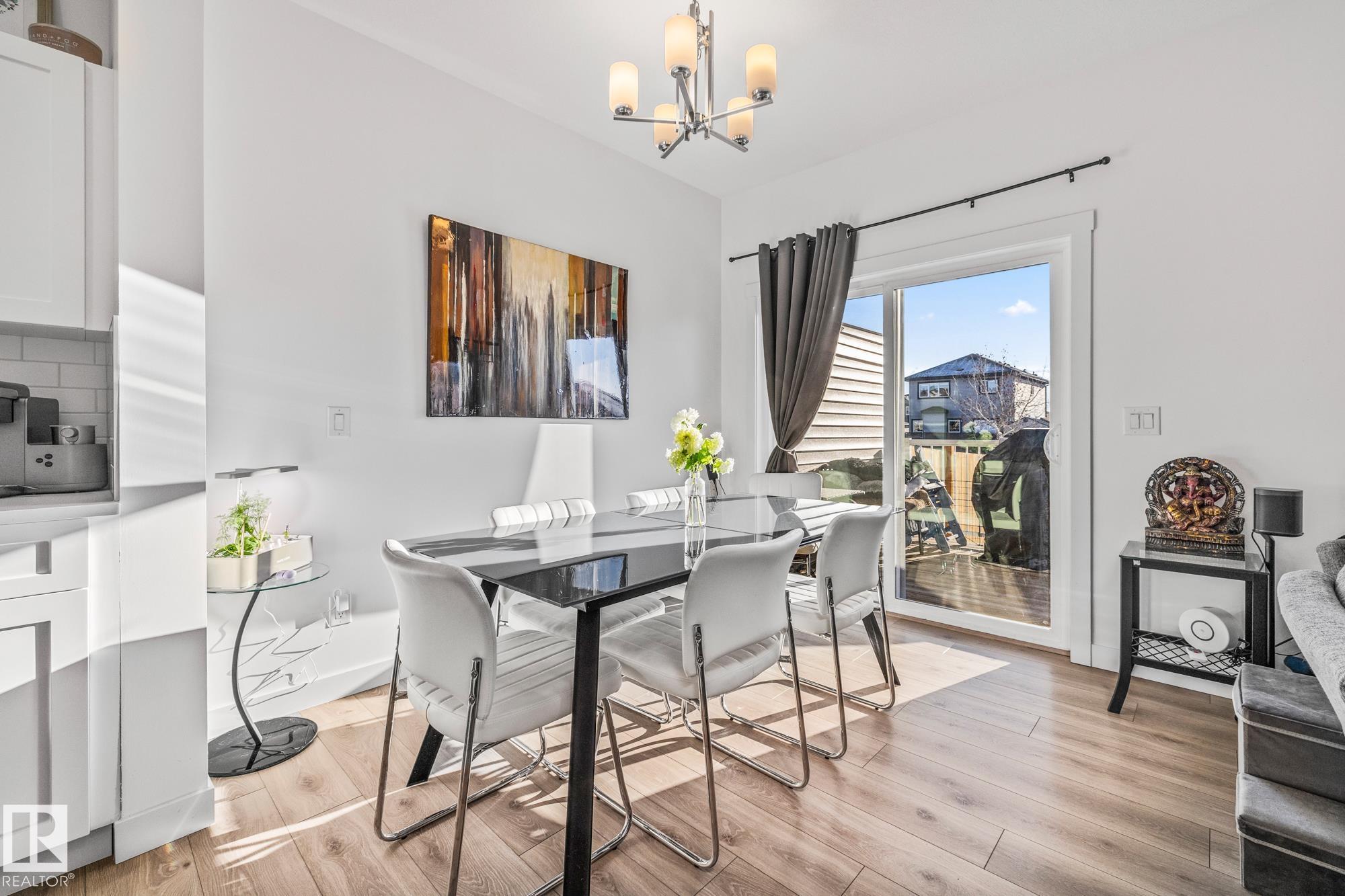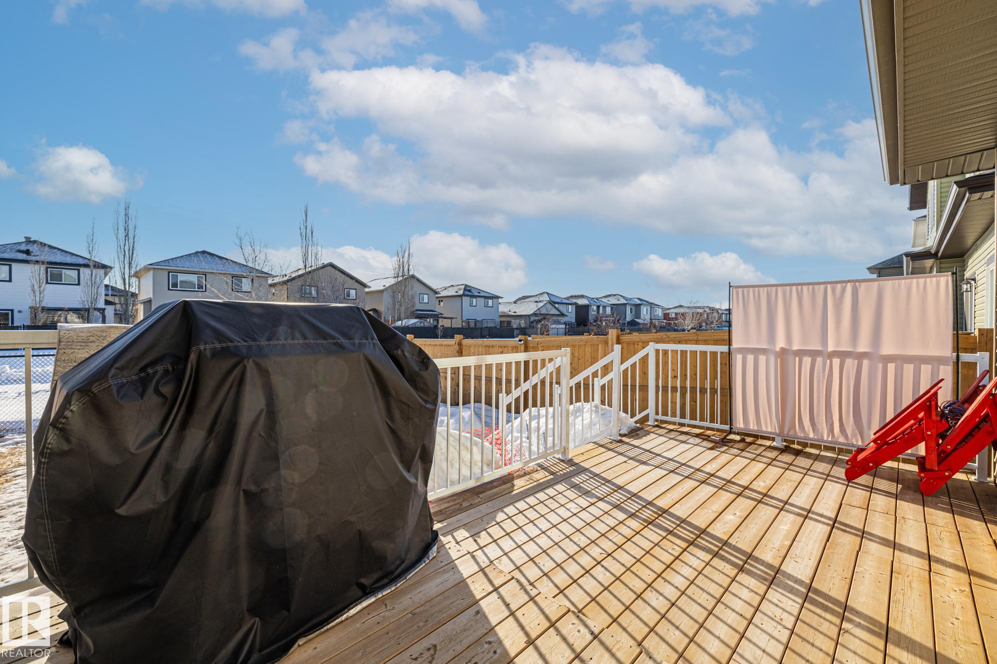Come take a look at this beautiful duplex! Upon entry, you?re welcomed by a hallway to the left featuring a convenient closet and a 2-piece powder room. The heart of the home showcases a modern kitchen with ample cabinetry and a walk-in pantry, seamlessly flowing into the dining and living areas. These spaces are filled with natural light and are perfect for both everyday living and entertaining. Off the dining room, step outside to a fully fenced backyard complete with a dec, ideal for summer evenings. Upstairs, you?ll find three generously sized bedrooms, including a spacious primary suite with a walk-in closet and a 3-piece ensuite. An additional 4-piece bathroom and upper-level laundry complete this well-designed home. Located in Westpark Fort Saskatchewan, this home is close to many amenities including schools, shopping center and more!