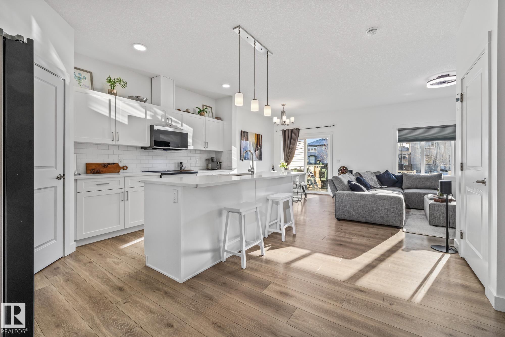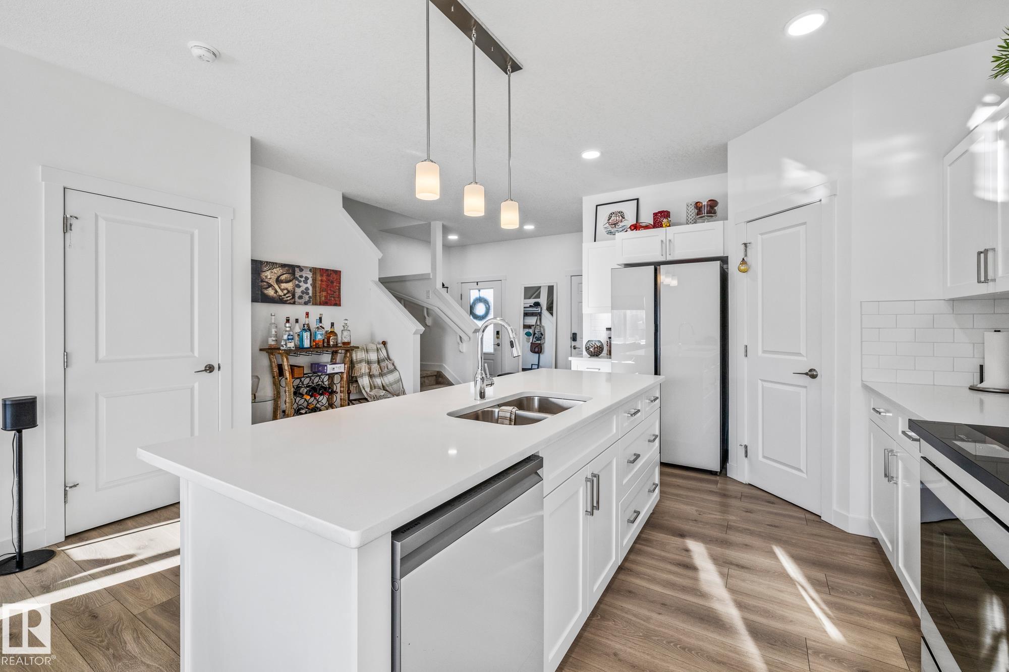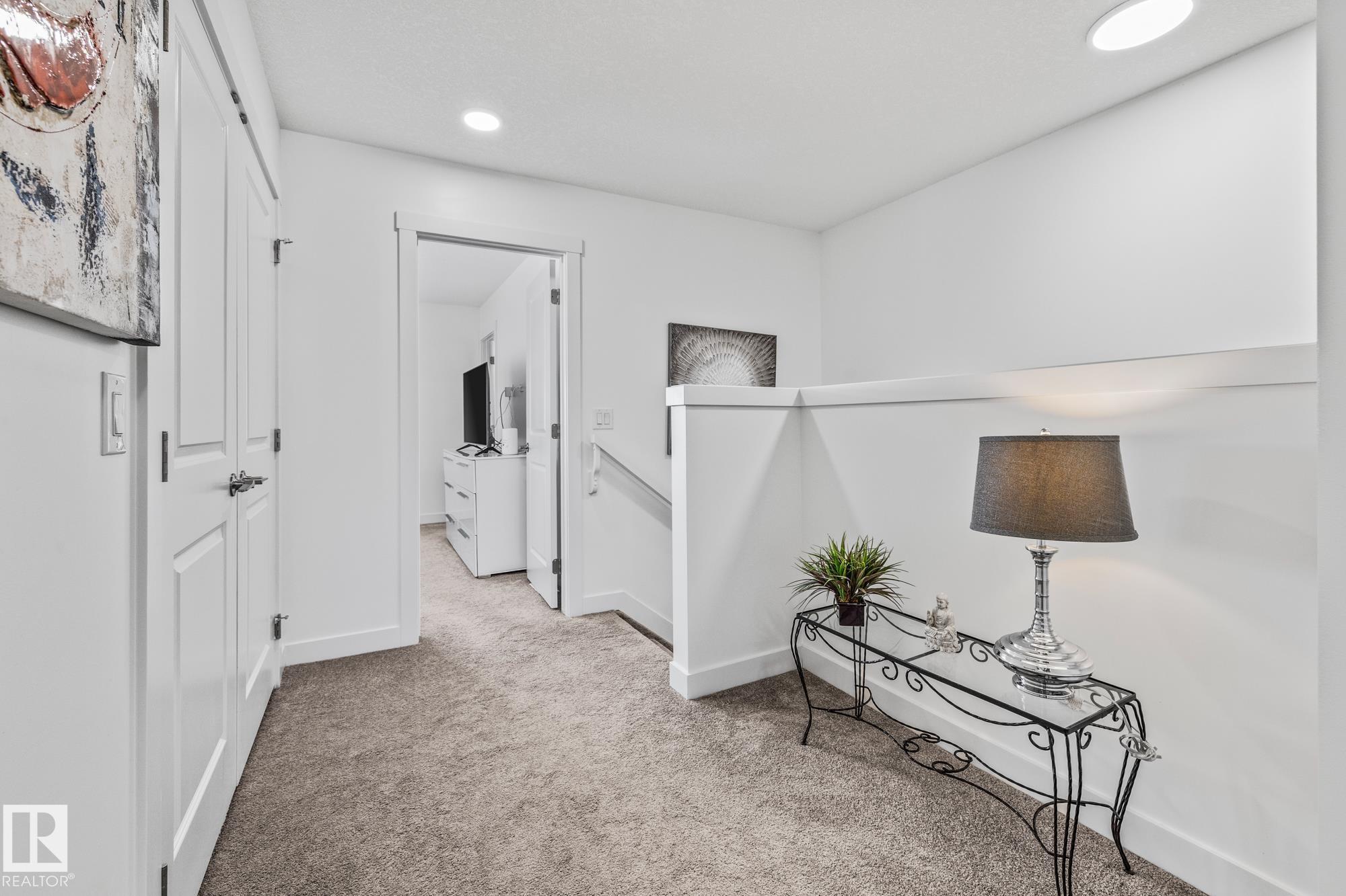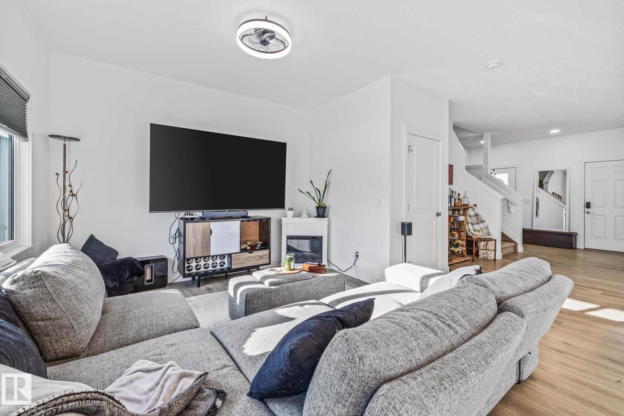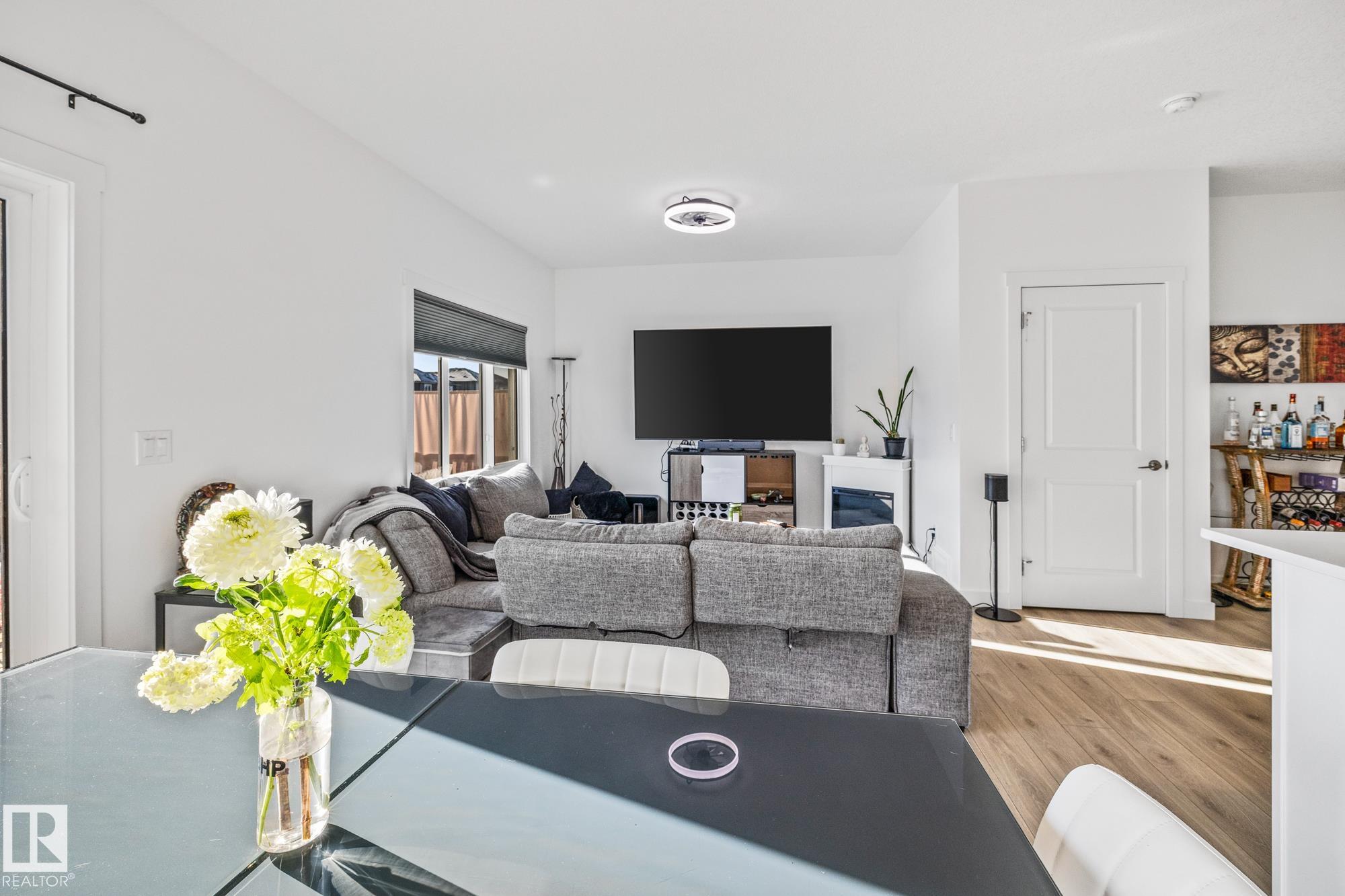 Come take a look at this beautiful duplex! Upon entry, you?re welcomed by a hallway to the left featuring a convenient closet and a 2-piece powder room. The heart of the home showcases a modern kitchen with ample cabinetry and a walk-in pantry, seamlessly flowing into the dining and living areas. These spaces are filled with natural light and are perfect for both everyday living and entertaining. Off the dining room, step outside to a fully fenced backyard complete with a dec, ideal for summer evenings. Upstairs, you?ll find three generously sized bedrooms, including a spacious primary suite with a walk-in closet and a 3-piece ensuite. An additional 4-piece bathroom and upper-level laundry complete this well-designed home. Located in Westpark Fort Saskatchewan, this home is close to many amenities including schools, shopping center and more!
