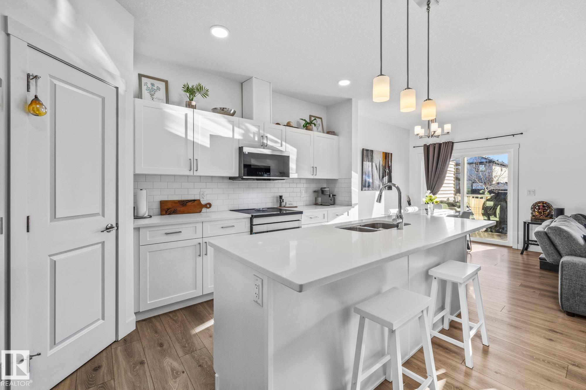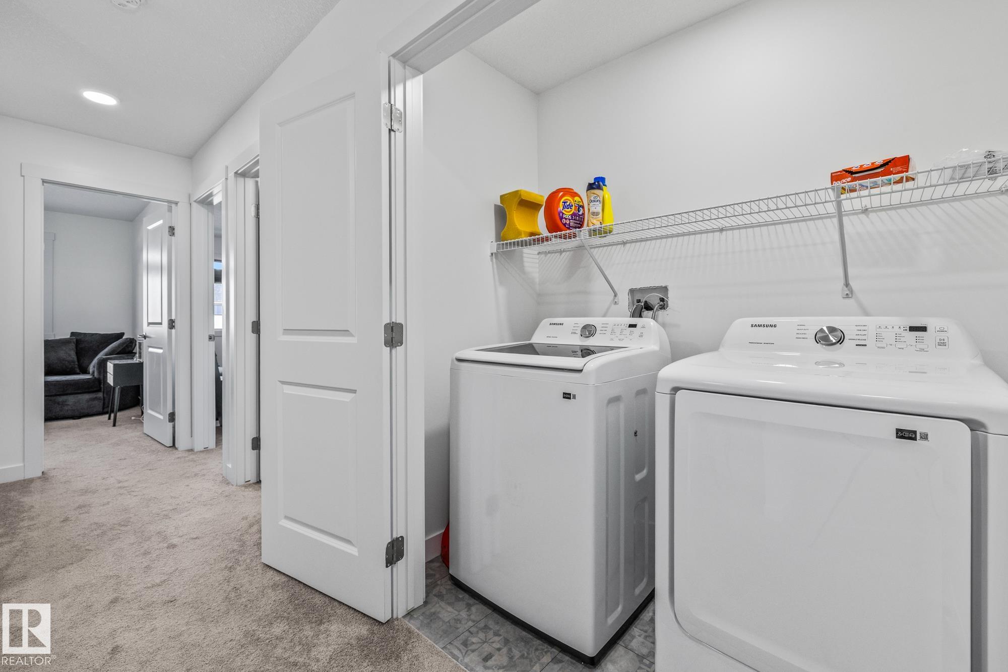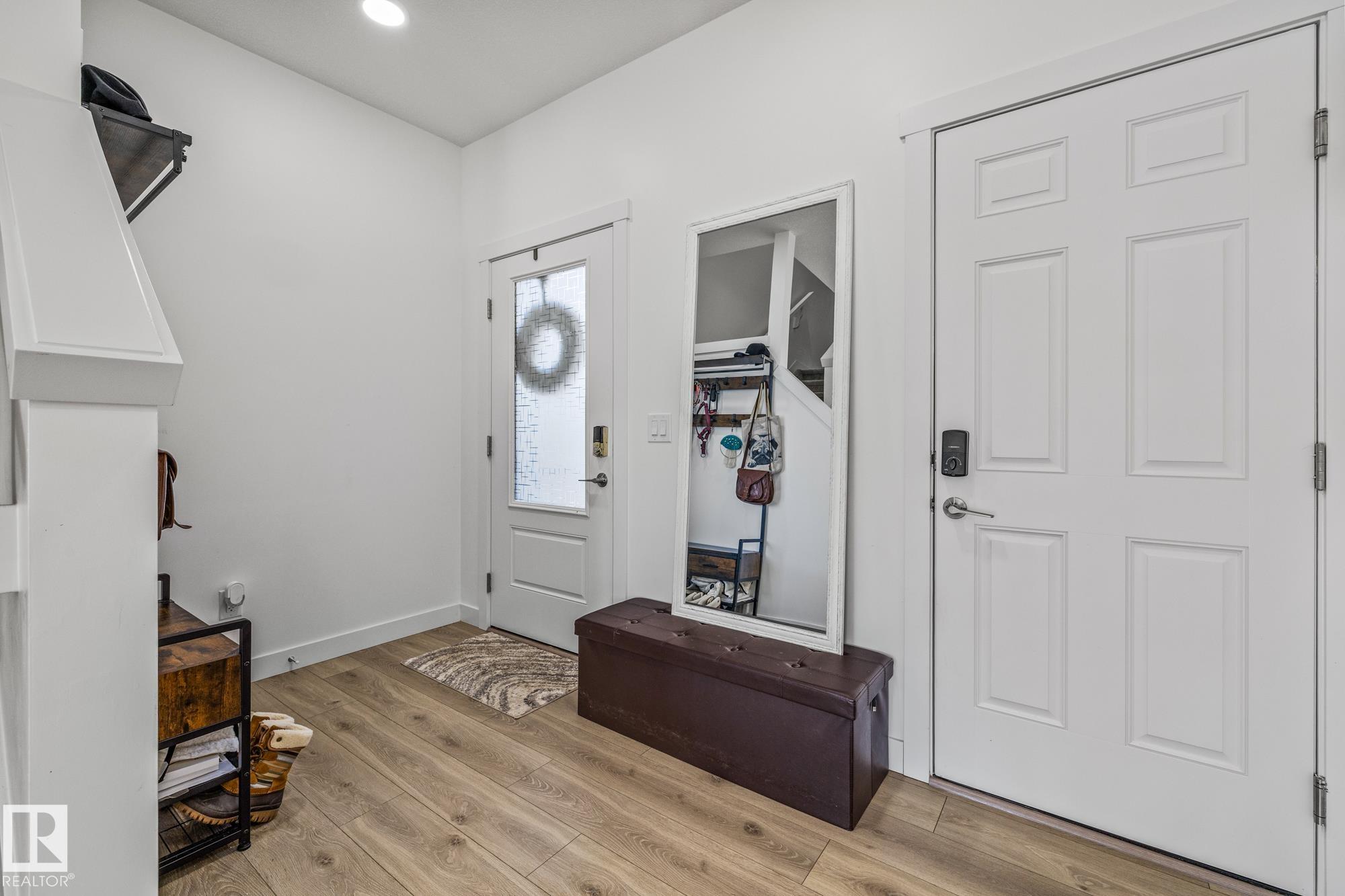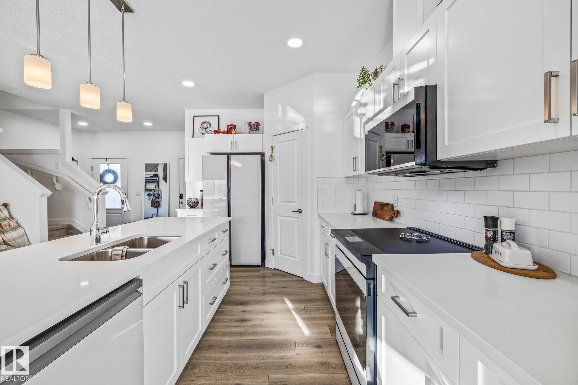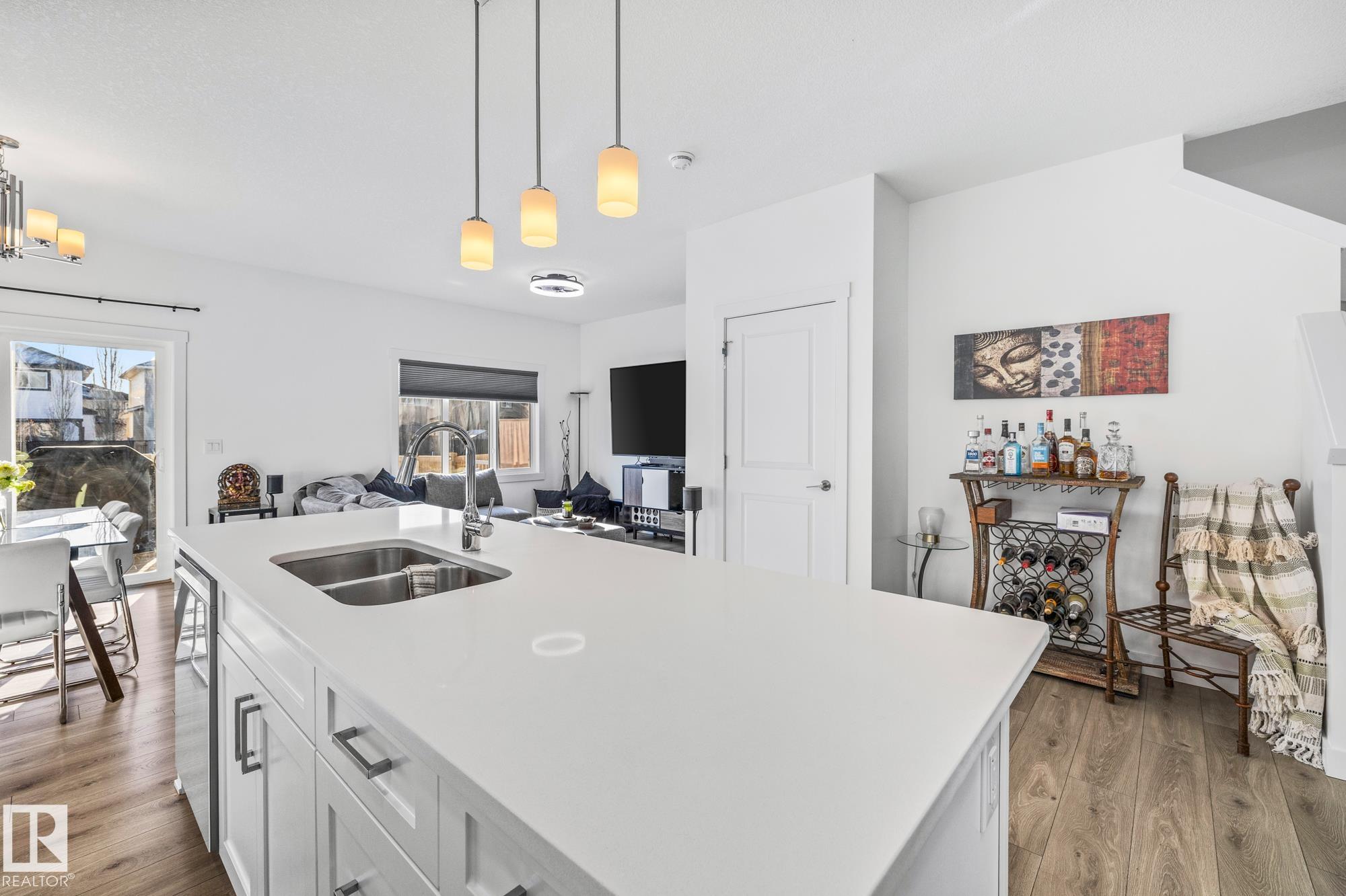 Come take a look at this beautiful duplex! Upon entry, you?re welcomed by a hallway to the left featuring a convenient closet and a 2-piece powder room. The heart of the home showcases a modern kitchen with ample cabinetry and a walk-in pantry, seamlessly flowing into the dining and living areas. These spaces are filled with natural light and are perfect for both everyday living and entertaining. Off the dining room, step outside to a fully fenced backyard complete with a dec, ideal for summer evenings. Upstairs, you?ll find three generously sized bedrooms, including a spacious primary suite with a walk-in closet and a 3-piece ensuite. An additional 4-piece bathroom and upper-level laundry complete this well-designed home. Located in Westpark Fort Saskatchewan, this home is close to many amenities including schools, shopping center and more!