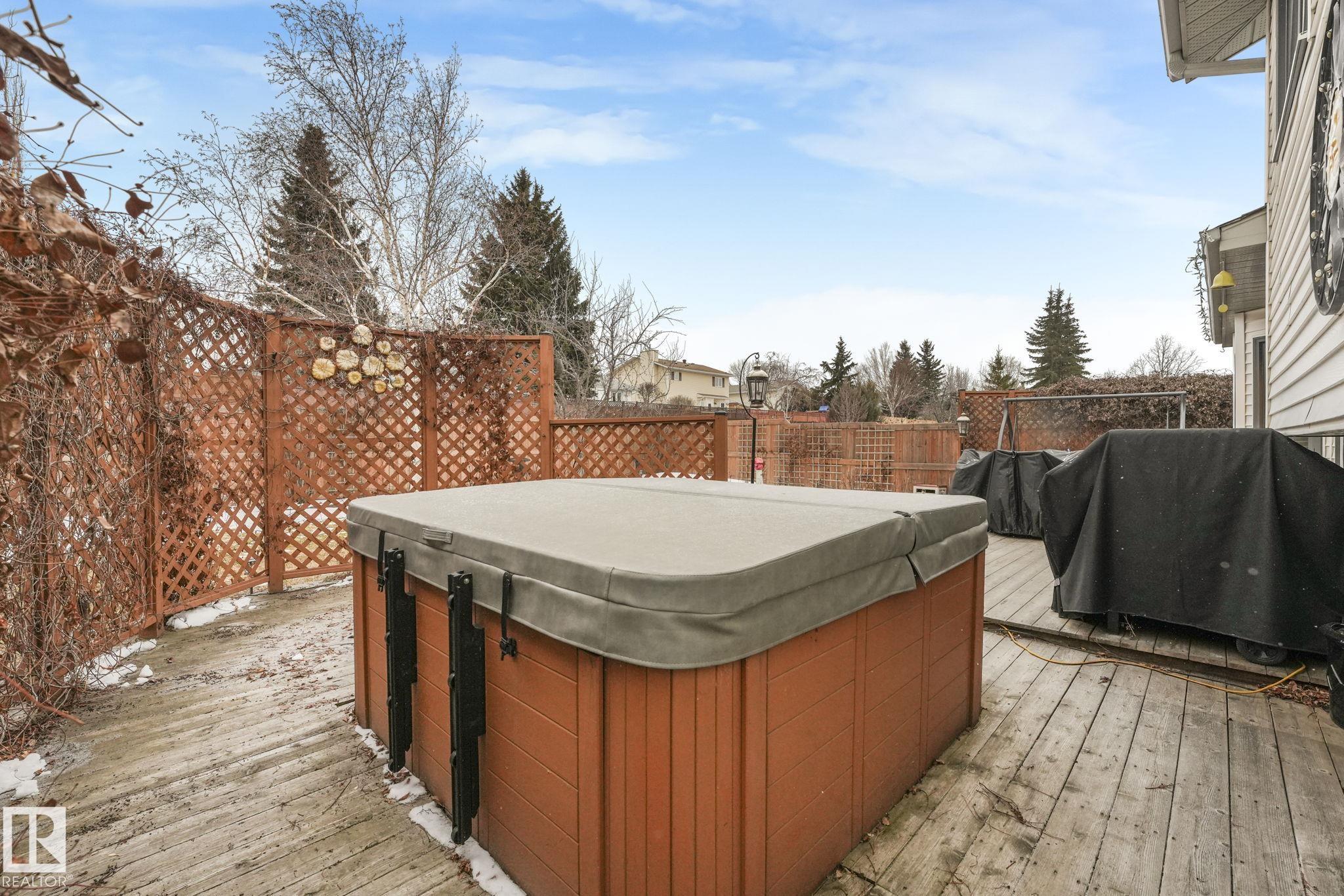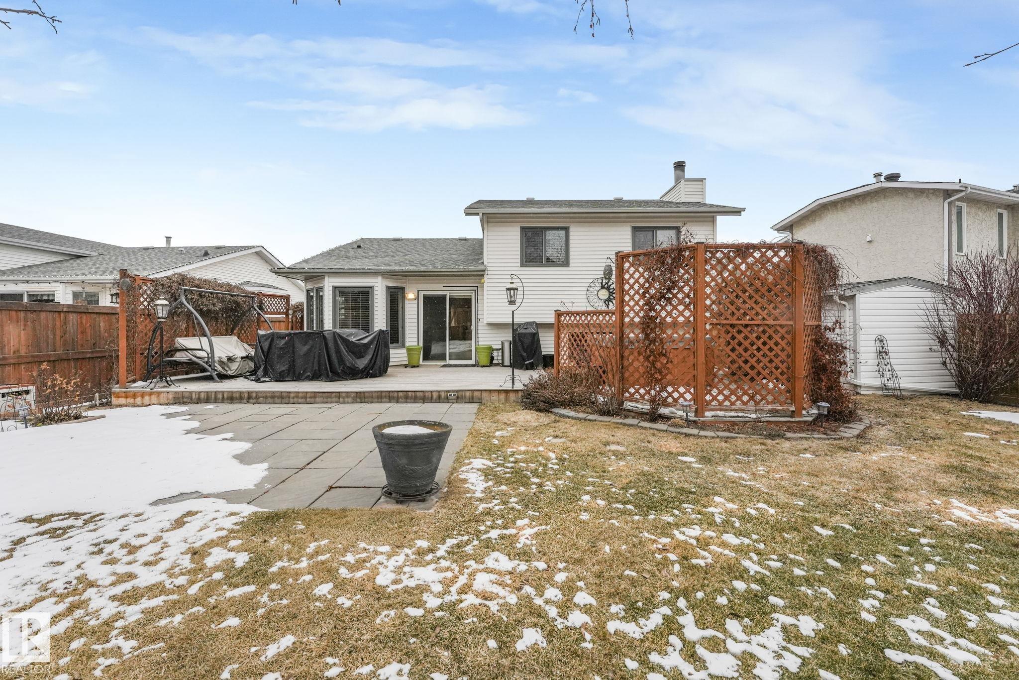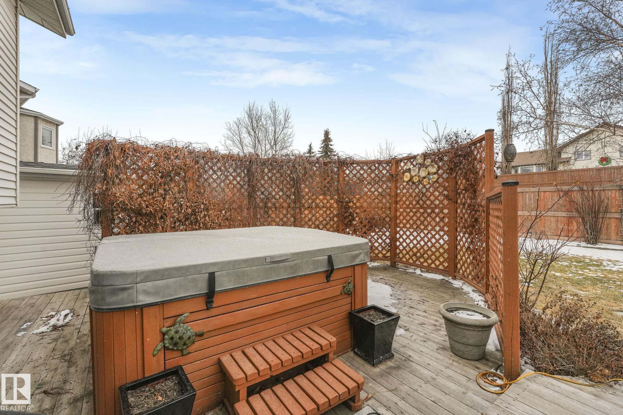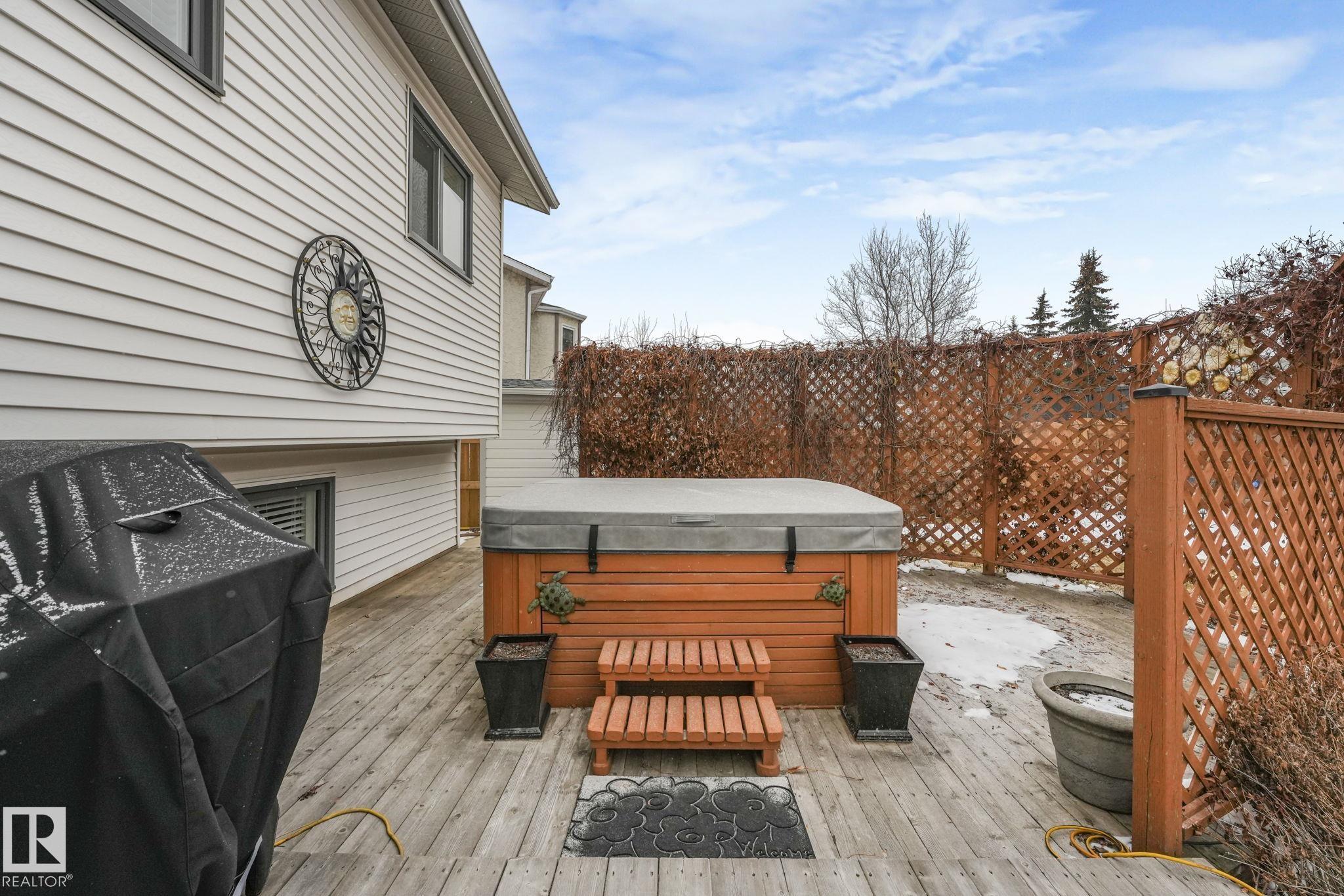 Beautifully renovated family home in desirable Davidson Creek! Ideally located on a quiet dead-end street backing onto walking trails and just steps from parks and schools, this move-in ready home features A/C, 4 bedrooms & 3 baths. A welcoming entry leads you into the bright main living areas flooded with natural light. The fully equipped kitchen offers loads of cabinetry and a peninsula island overlooking the family room, dining room and backyard. Upstairs, retreat to the king-sized primary suite with 3pc ensuite, plus 2 additional generous bedrooms and a 4pc main bath. The lower level boasts bright family room with wood-burning fireplace, 4th bedroom (or office) and spacious laundry room. Enjoy even more space in the basement with a rec room, office area, snack station/bar and a 3pc bath. Outside, relax in the fenced and landscaped yard with deck, patio, Hot Tub or enjoy a stroll on the walking trails with access right out your back fence. Nothing to do but move in!