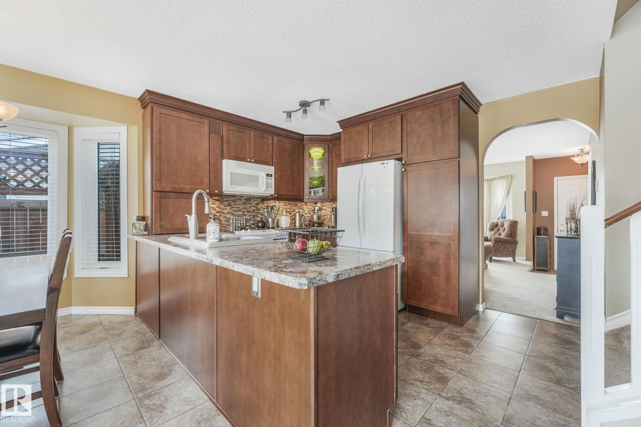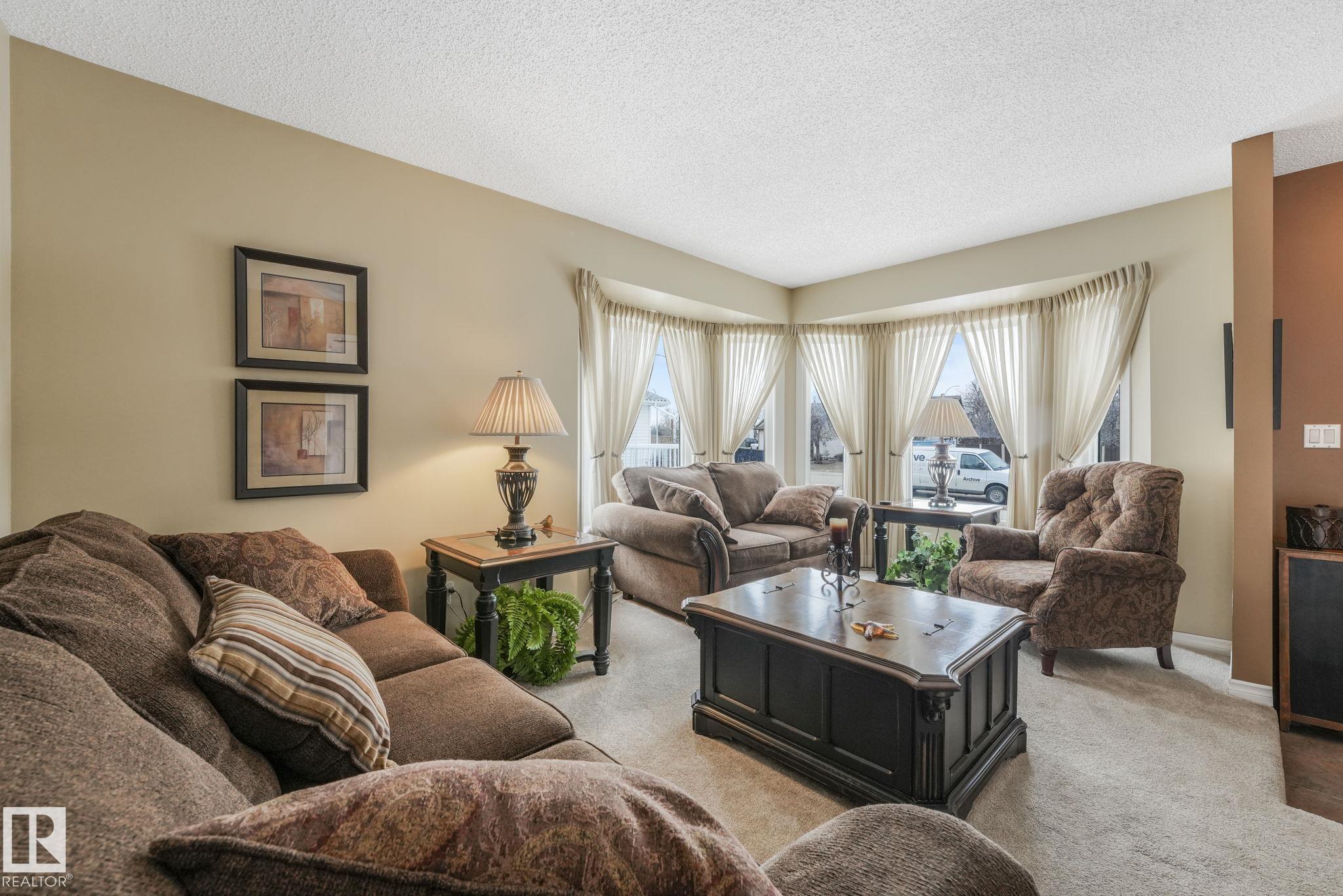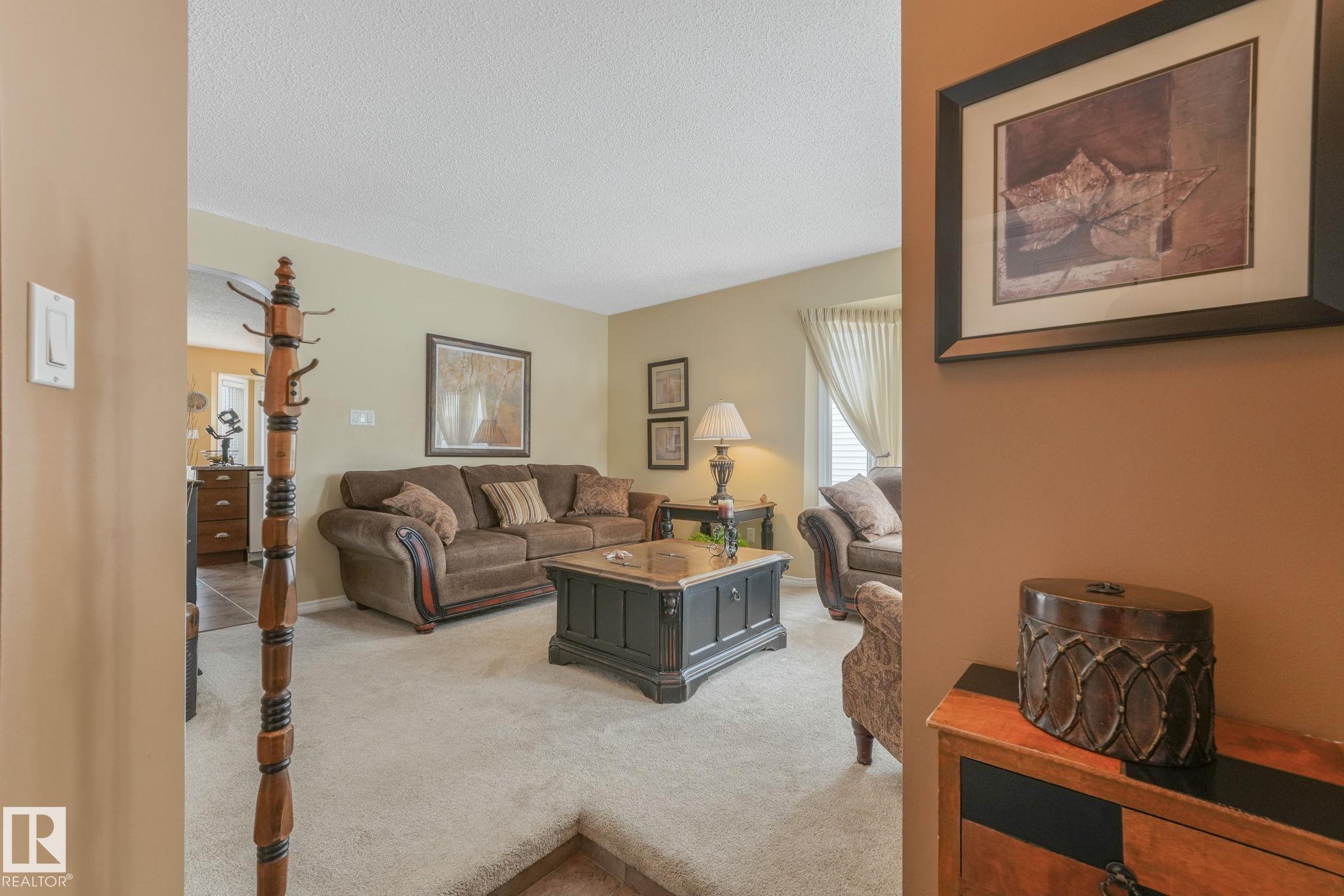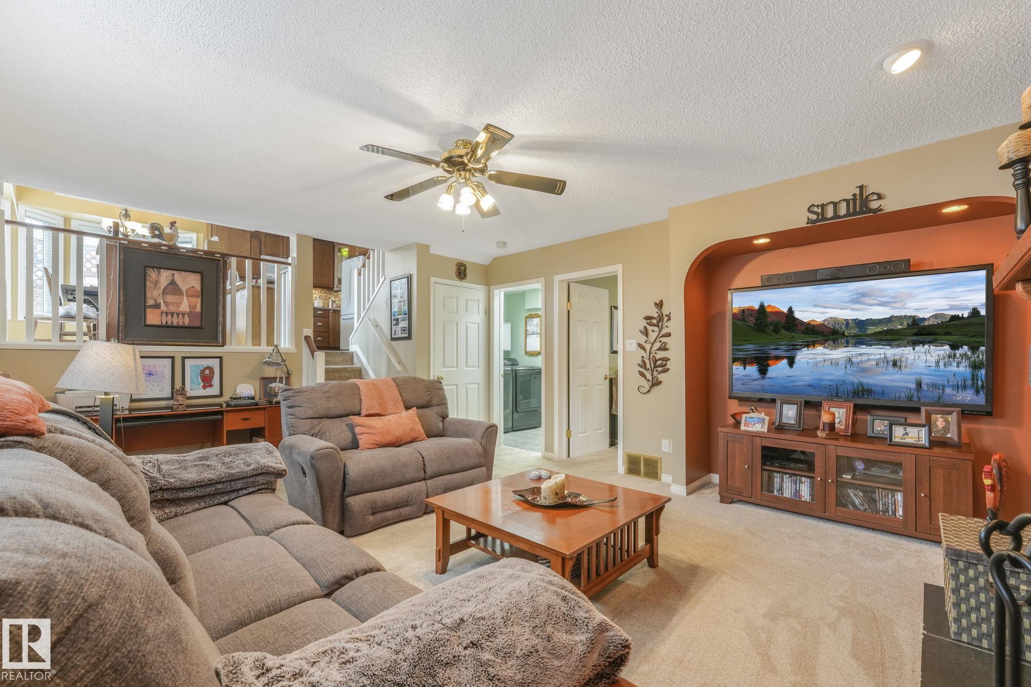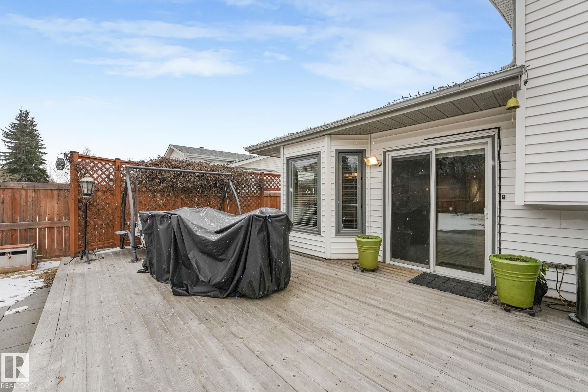 Beautifully renovated family home in desirable Davidson Creek! Ideally located on a quiet dead-end street backing onto walking trails and just steps from parks and schools, this move-in ready home features A/C, 4 bedrooms & 3 baths. A welcoming entry leads you into the bright main living areas flooded with natural light. The fully equipped kitchen offers loads of cabinetry and a peninsula island overlooking the family room, dining room and backyard. Upstairs, retreat to the king-sized primary suite with 3pc ensuite, plus 2 additional generous bedrooms and a 4pc main bath. The lower level boasts bright family room with wood-burning fireplace, 4th bedroom (or office) and spacious laundry room. Enjoy even more space in the basement with a rec room, office area, snack station/bar and a 3pc bath. Outside, relax in the fenced and landscaped yard with deck, patio, Hot Tub or enjoy a stroll on the walking trails with access right out your back fence. Nothing to do but move in!
