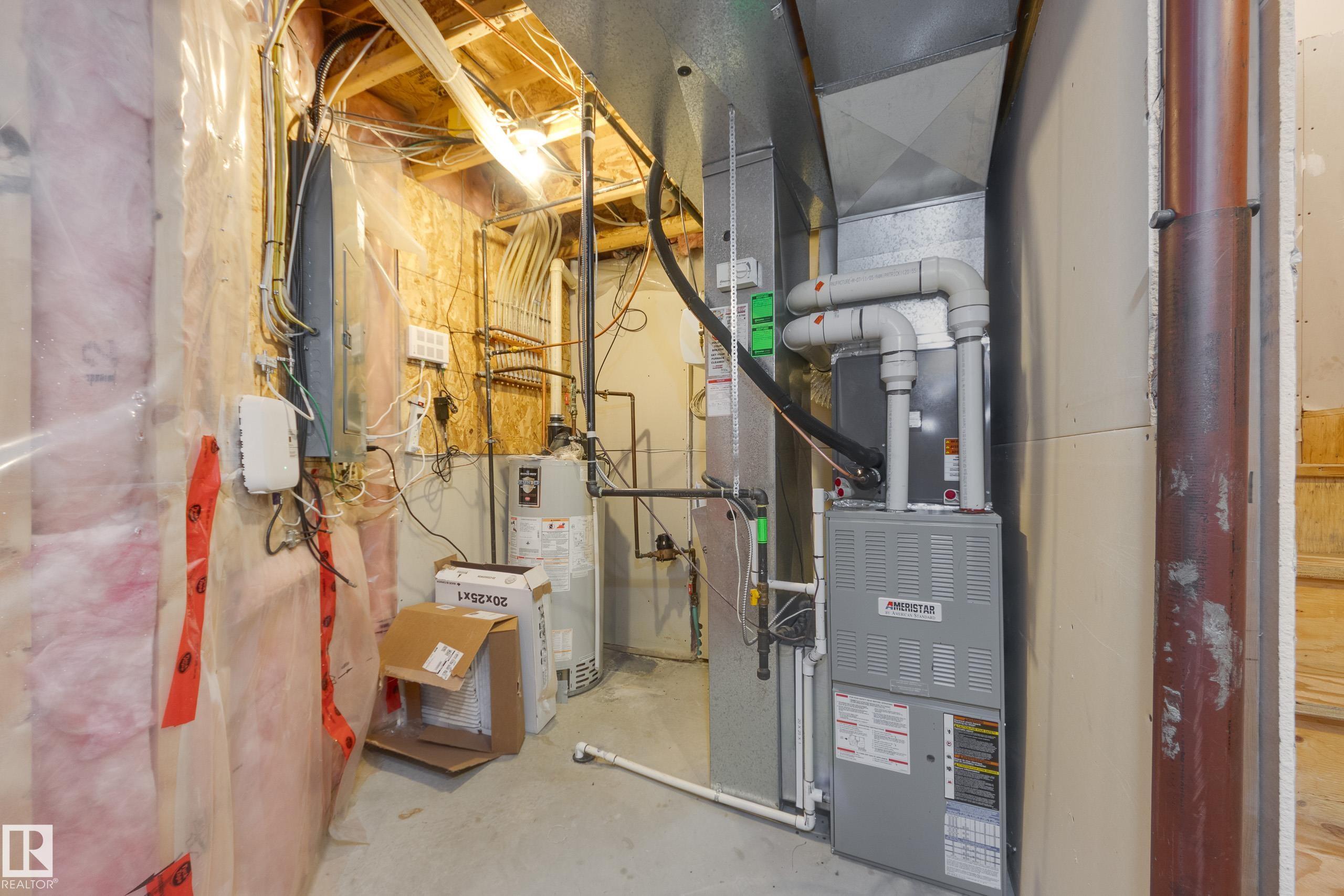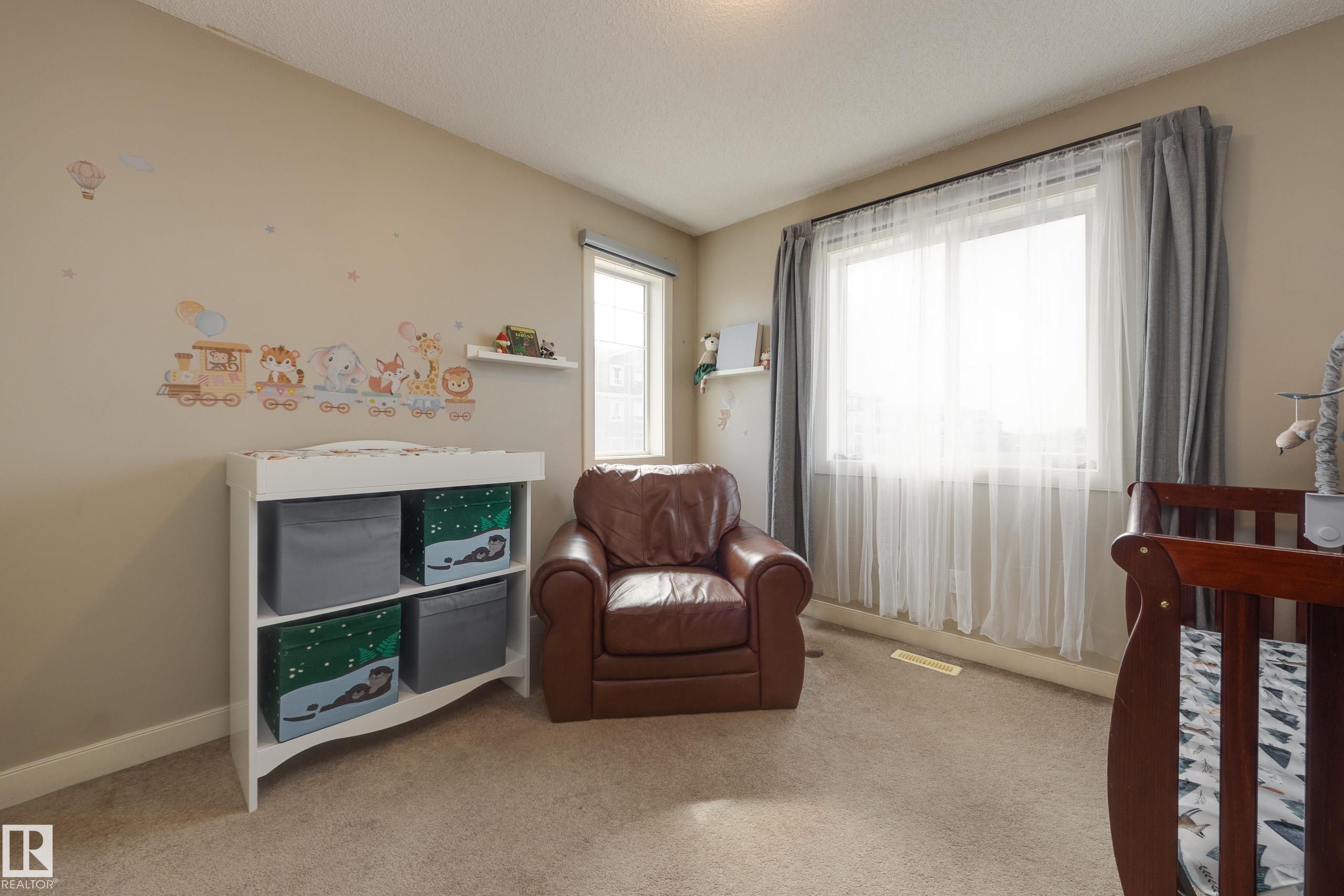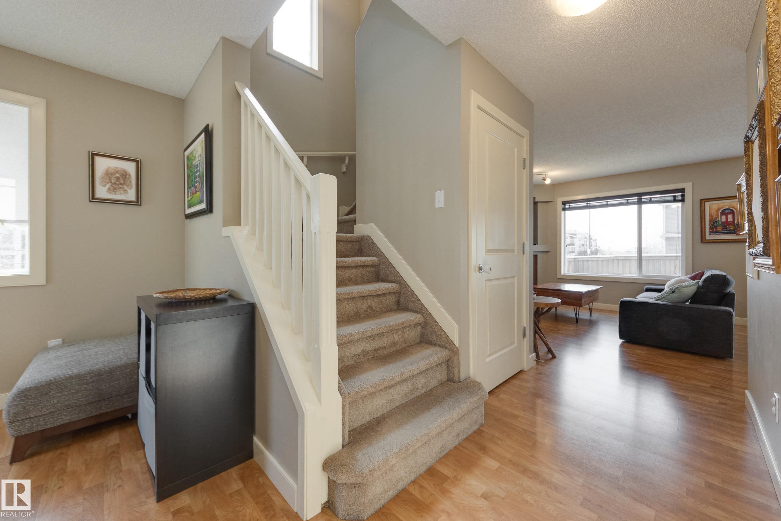 Welcome to this fantastic 2 storey half duplex in South Terwillegar, complete with a double attached garage and a bright, open concept main floor. Sunlight fills the spacious living area from the living room with a gas fireplace into a generous kitchen with ample counter space and corner pantry to a dining area that opens onto your outdoor entertaining space. A convenient 2 piece bath completes the main level. Upstairs, you?ll find a versatile flex space?perfect for a home office, play area, or creative nook?along with a 4 piece main bath and three bedrooms, including a large primary suite with a 4 piece ensuite and custom-built closet. The partially finished basement offers room to grow and personalize. Enjoy the west-facing, fully fenced yard, featuring a deck with low maintenance metal railings. Recent updates: AC (2023), dishwasher (2025), shower hardware in both bathrooms (2026), fridge (2026). Top-rated schools, public transit, quick access to the Henday, and every major amenity nearby!