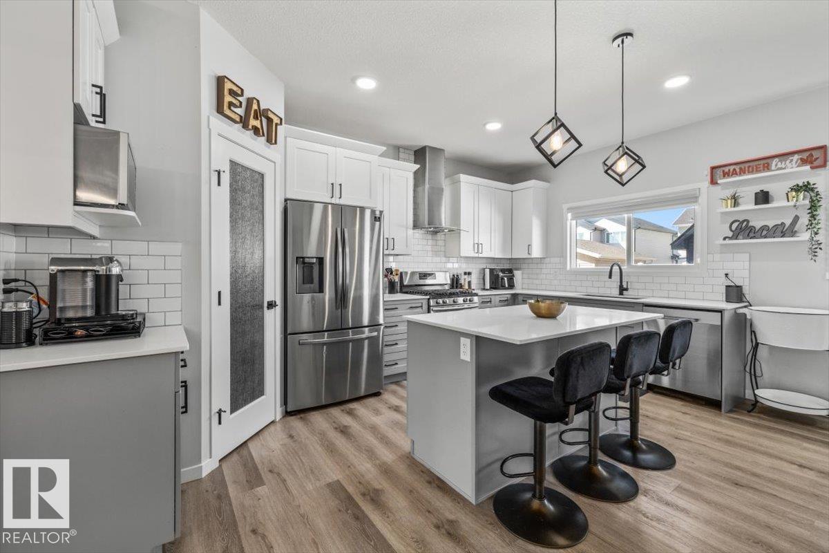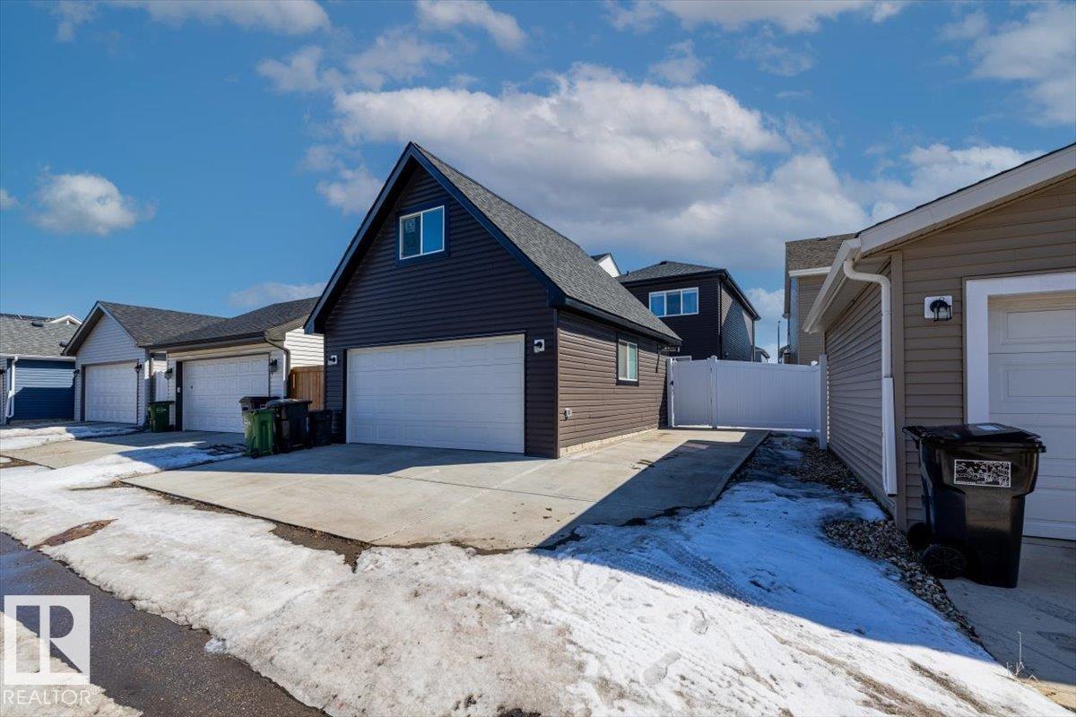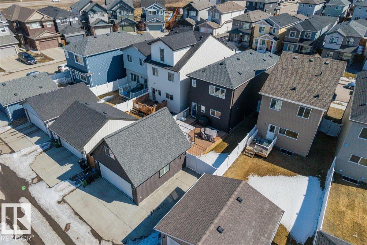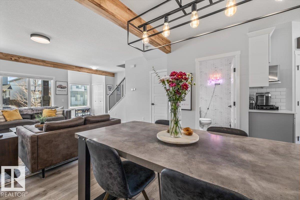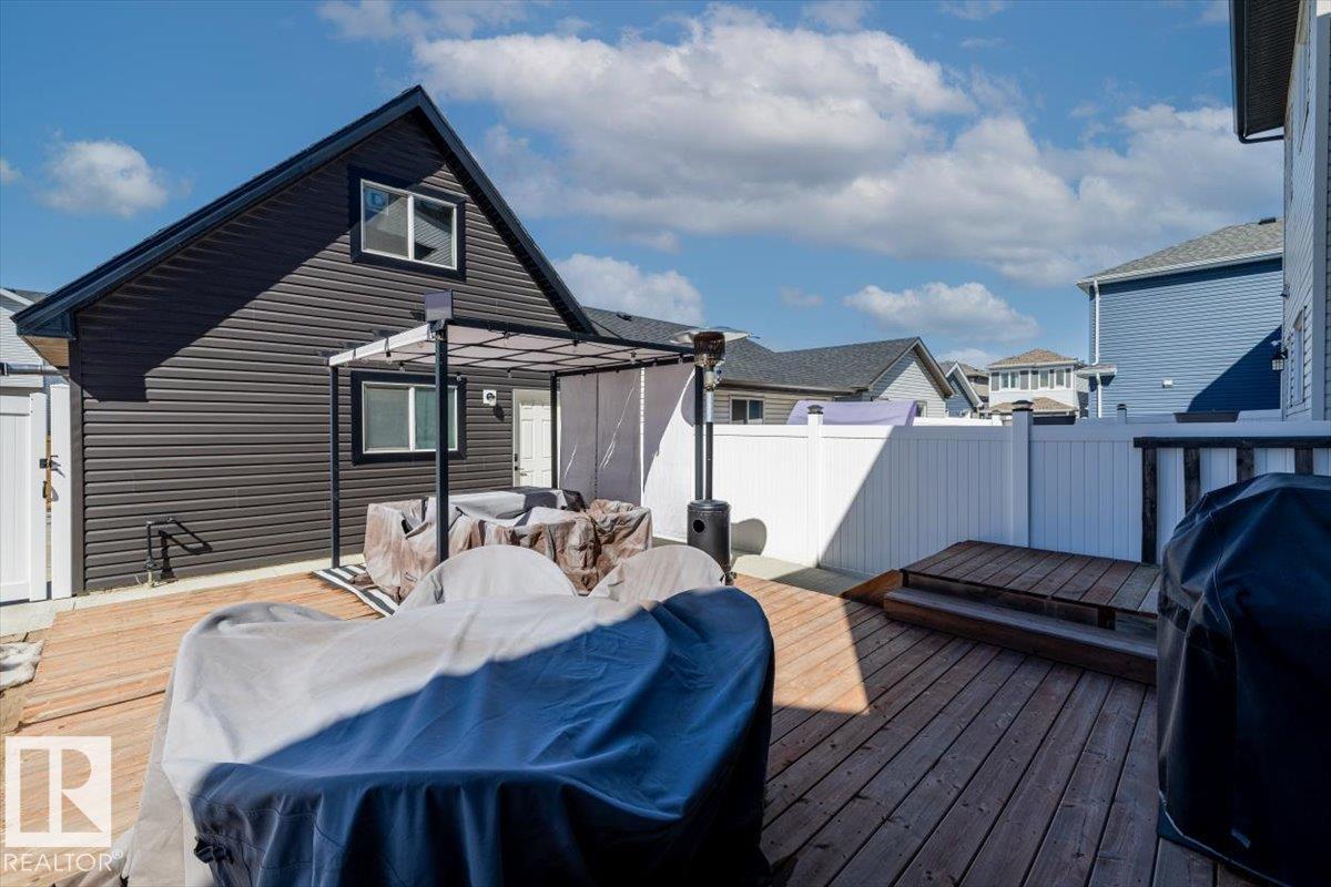 Welcome to this meticulously maintained, turnkey two-storey home in the vibrant community of McConachie. Offering 1,763 sq. ft. of upper living space plus a fully finished 767 sq. ft. LEGAL SUITE, this property is ideal for families or investors alike. The main floor features 9' ceilings, exposed wood beams, and a bright, open-concept layout that flows seamlessly from the living room into the dining area and kitchen. The modern kitchen is complete with stainless steel appliances, a sleek range hood, and an eat-at island, viewing a sunny, WEST-FACING BACKYARD. Upstairs, you will find three spacious bedrooms, two full bathrooms, and a versatile bonus room, with the primary suite featuring a private ensuite. The lower level houses a legal one-bedroom suite with 9' ceilings, stainless steel appliances, and private laundry. Outside, enjoy a large low-profile deck and a newer detached garage WITH A LOFT an adjacent PARKING PAD. This well-cared-for home is the perfect functional retreat for modern living.