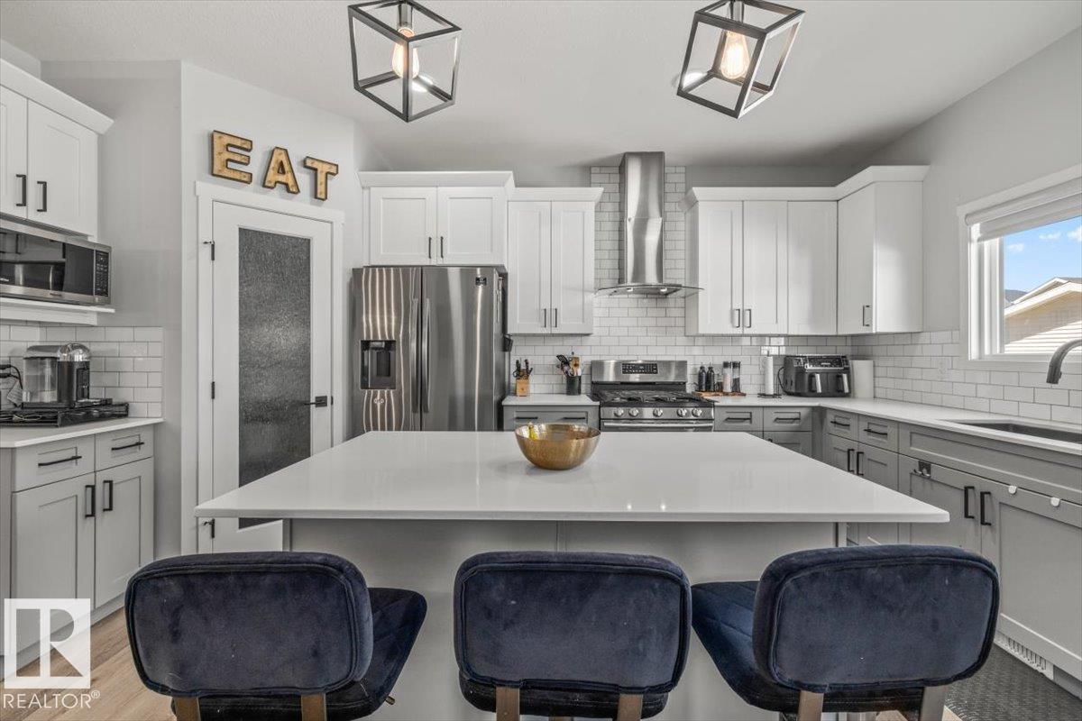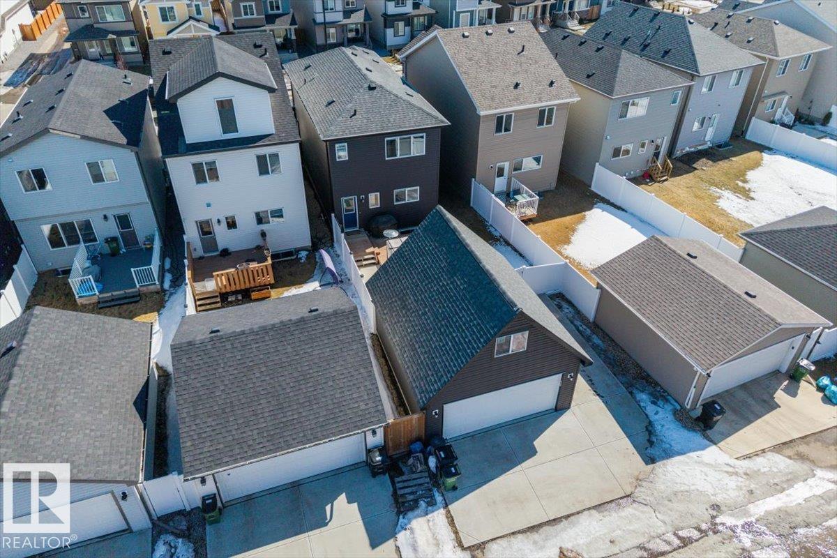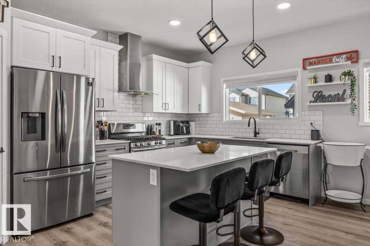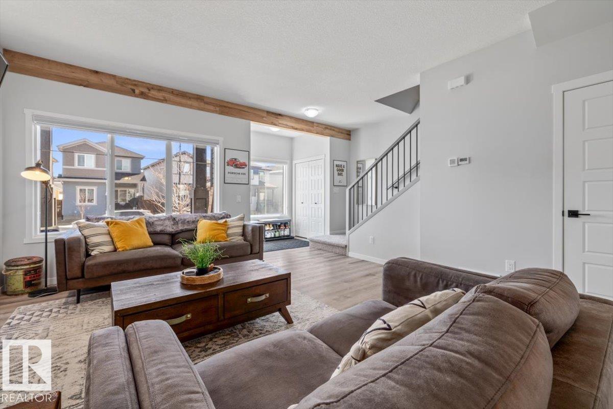 Welcome to this meticulously maintained, turnkey two-storey home in the vibrant community of McConachie. Offering 1,763 sq. ft. of upper living space plus a fully finished 767 sq. ft. LEGAL SUITE, this property is ideal for families or investors alike. The main floor features 9' ceilings, exposed wood beams, and a bright, open-concept layout that flows seamlessly from the living room into the dining area and kitchen. The modern kitchen is complete with stainless steel appliances, a sleek range hood, and an eat-at island, viewing a sunny, WEST-FACING BACKYARD. Upstairs, you will find three spacious bedrooms, two full bathrooms, and a versatile bonus room, with the primary suite featuring a private ensuite. The lower level houses a legal one-bedroom suite with 9' ceilings, stainless steel appliances, and private laundry. Outside, enjoy a large low-profile deck and a newer detached garage WITH A LOFT an adjacent PARKING PAD. This well-cared-for home is the perfect functional retreat for modern living.