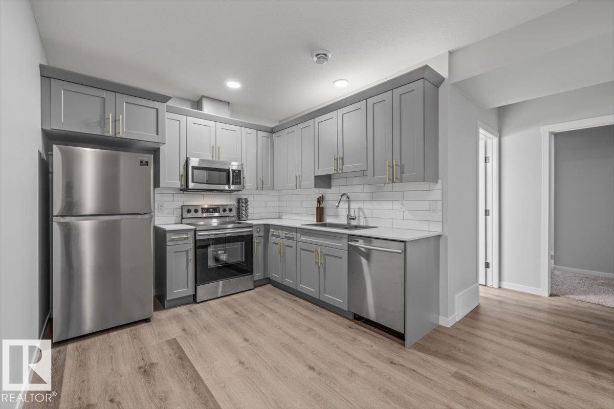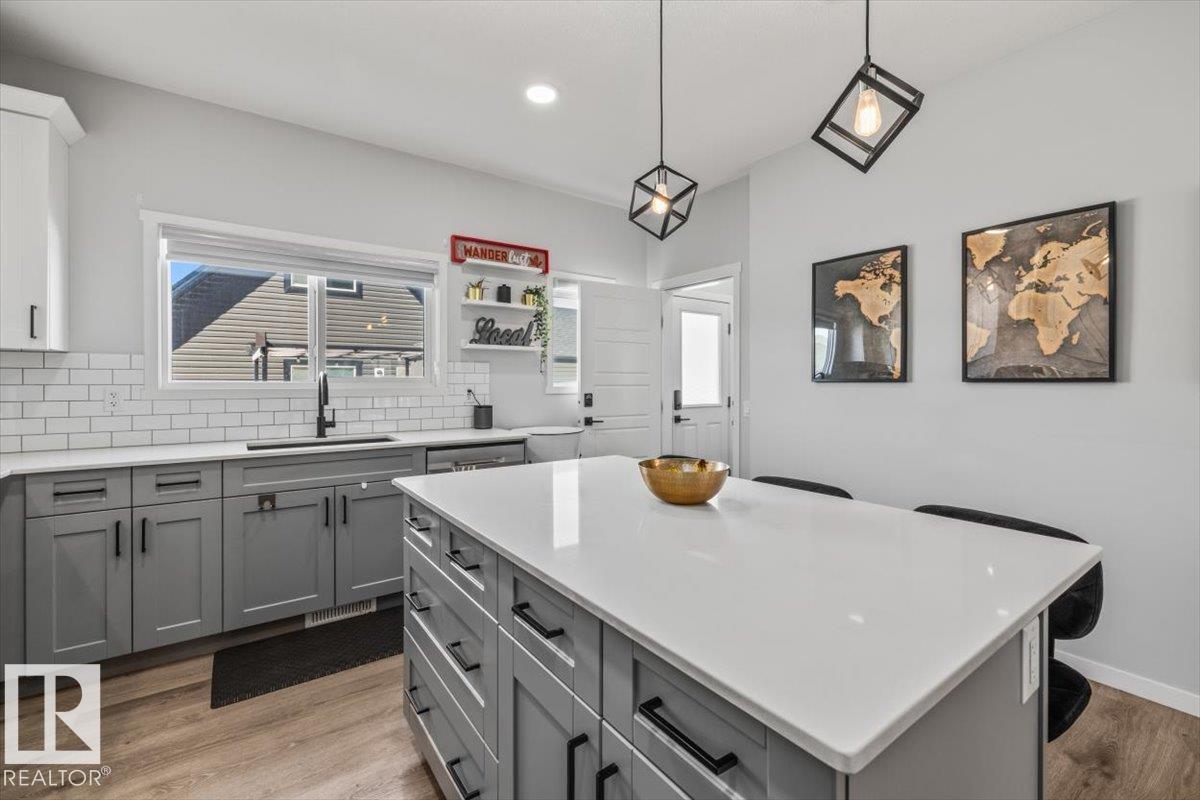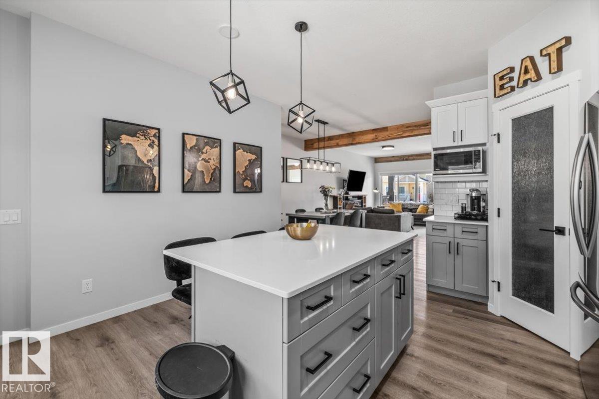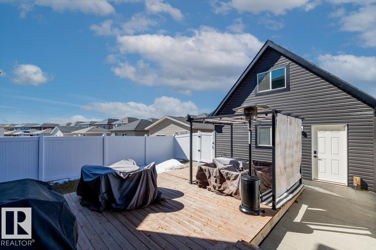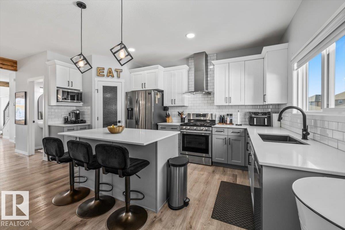 Welcome to this meticulously maintained, turnkey two-storey home in the vibrant community of McConachie. Offering 1,763 sq. ft. of upper living space plus a fully finished 767 sq. ft. LEGAL SUITE, this property is ideal for families or investors alike. The main floor features 9' ceilings, exposed wood beams, and a bright, open-concept layout that flows seamlessly from the living room into the dining area and kitchen. The modern kitchen is complete with stainless steel appliances, a sleek range hood, and an eat-at island, viewing a sunny, WEST-FACING BACKYARD. Upstairs, you will find three spacious bedrooms, two full bathrooms, and a versatile bonus room, with the primary suite featuring a private ensuite. The lower level houses a legal one-bedroom suite with 9' ceilings, stainless steel appliances, and private laundry. Outside, enjoy a large low-profile deck and a newer detached garage WITH A LOFT an adjacent PARKING PAD. This well-cared-for home is the perfect functional retreat for modern living.